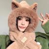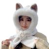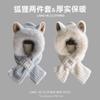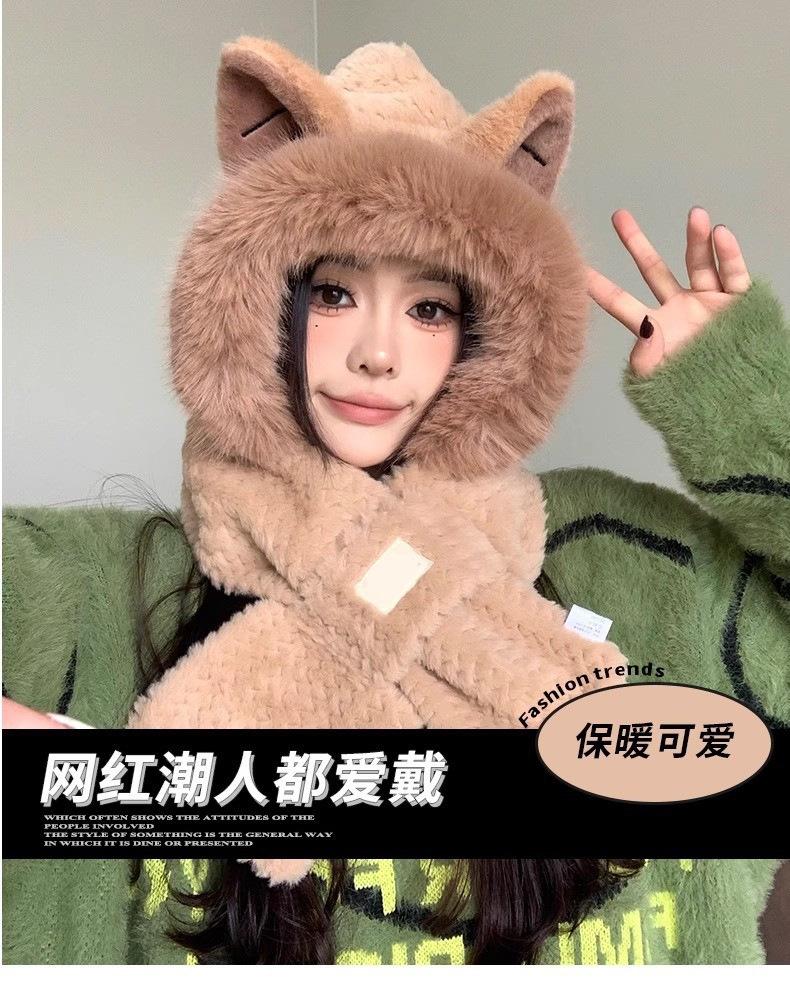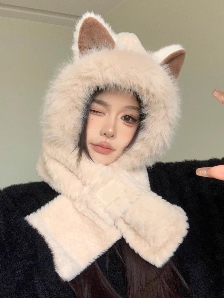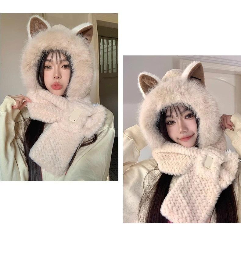 Set de Gorro con Orejas de Zorro y Bufanda para Mujer, Invierno Bordado Grueso Doble Capa Calentador de Cuello, Felpa de Estilo Coreano de Dos Piezas