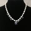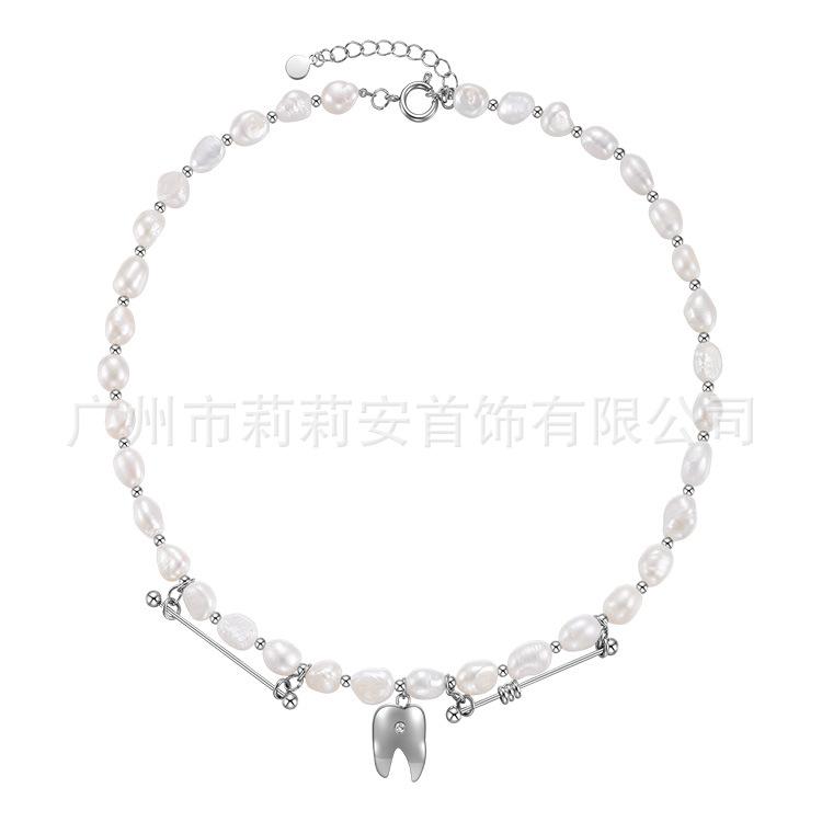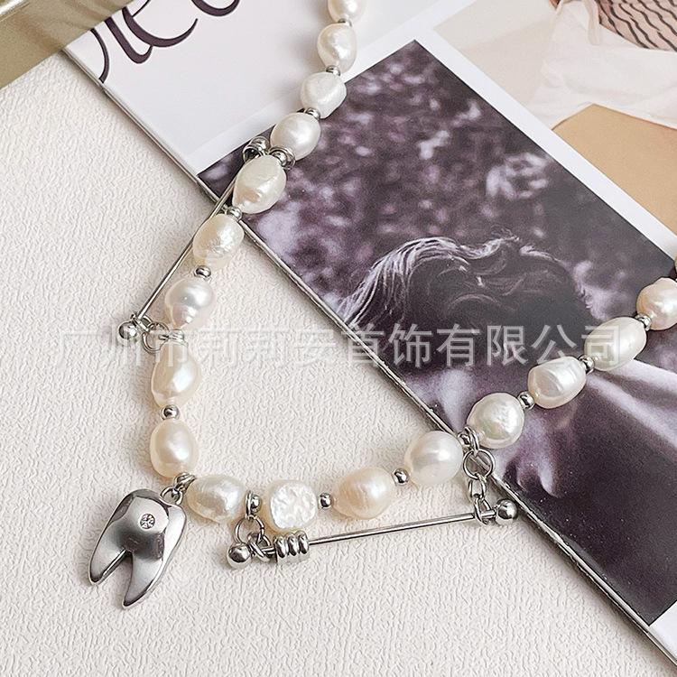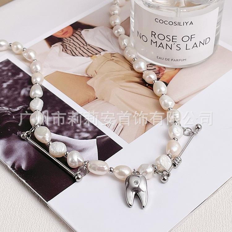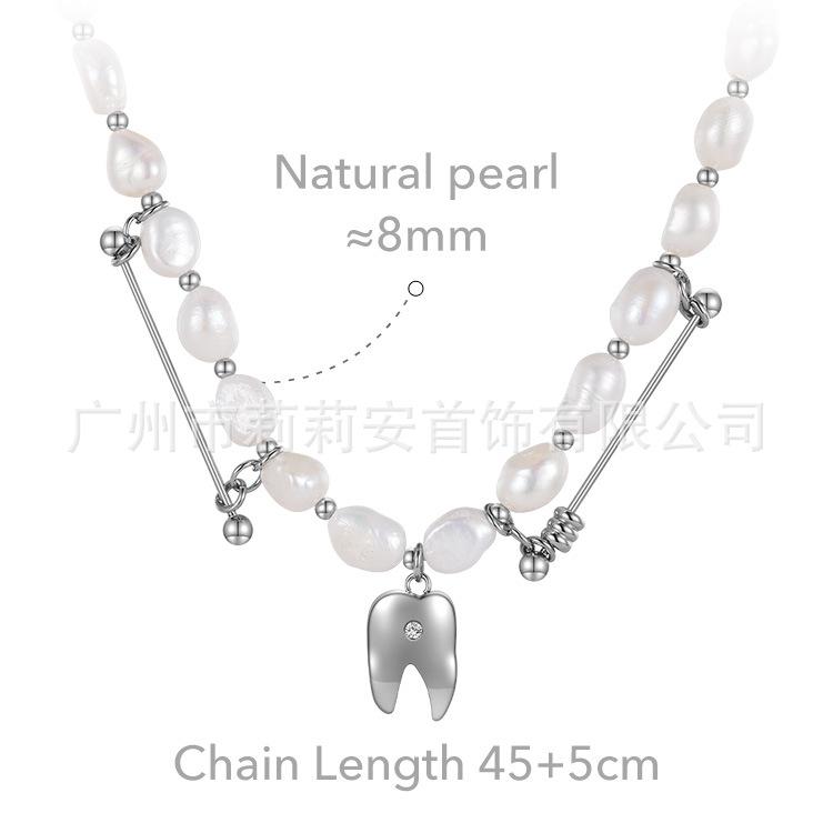 Colgante de dientes de perla natural estilo retro nicho de acero y titanio, estilo europeo y americano, con el mismo collar P213273