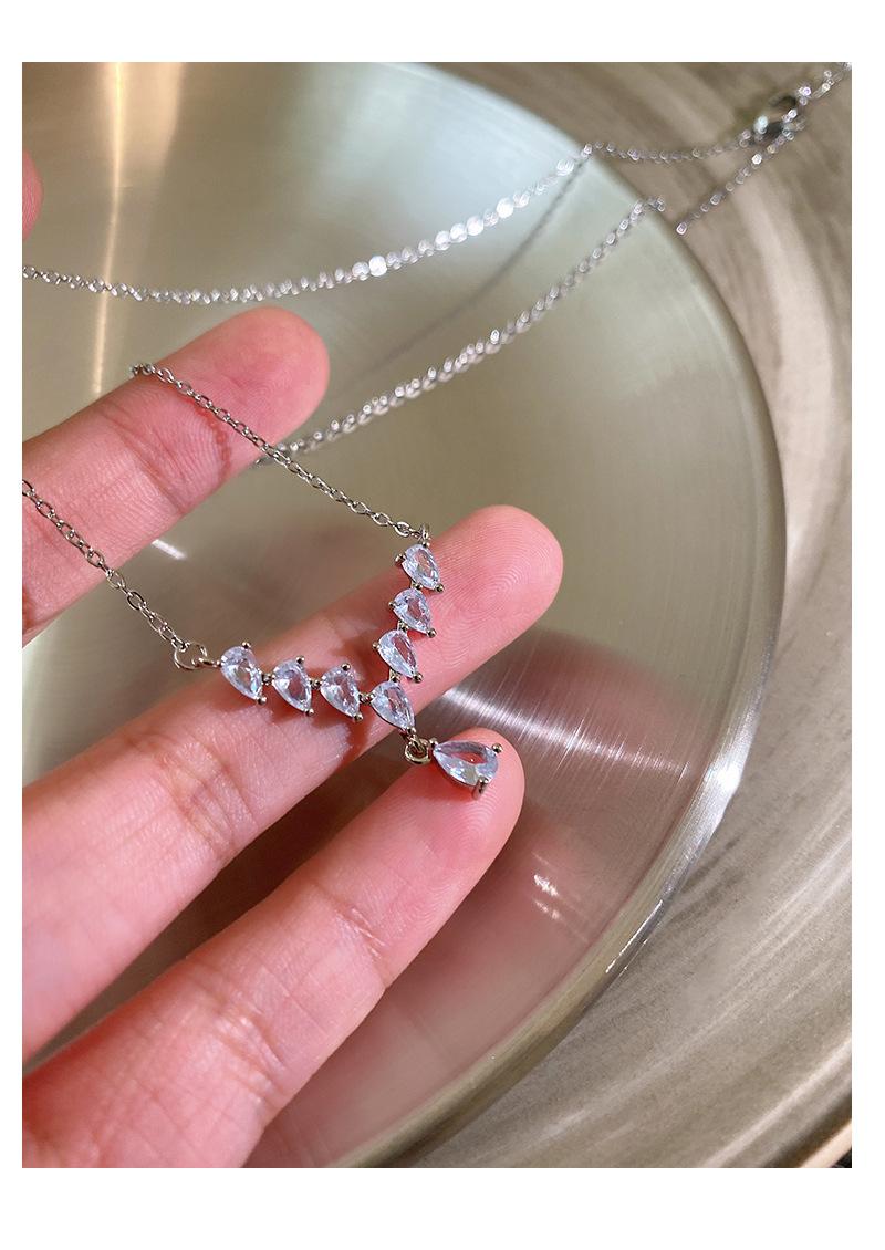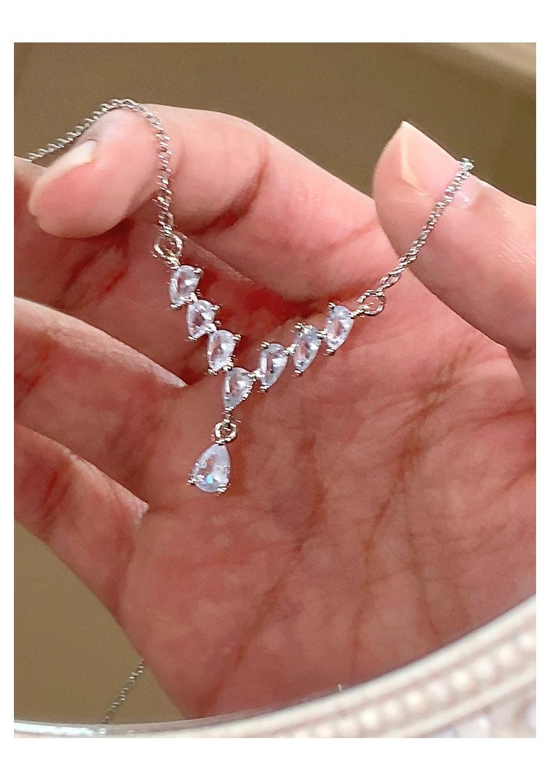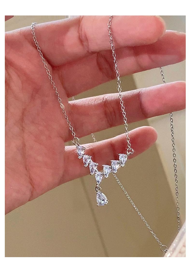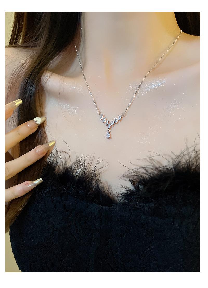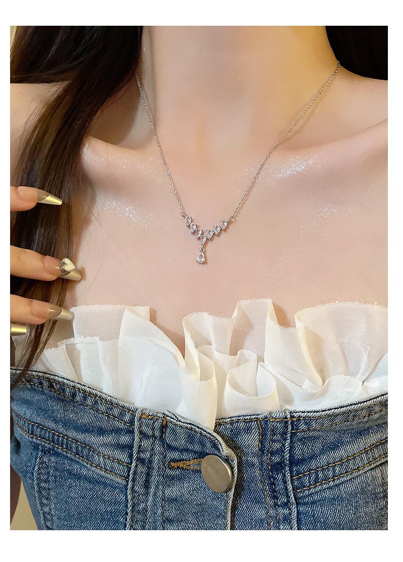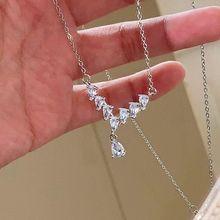 Collar de gota de agua en forma de V con circón para mujer, cadena de clavícula de lujo ligera y de alta calidad para chica atractiva, accesorios de hadas súper incrustados con diamantes.