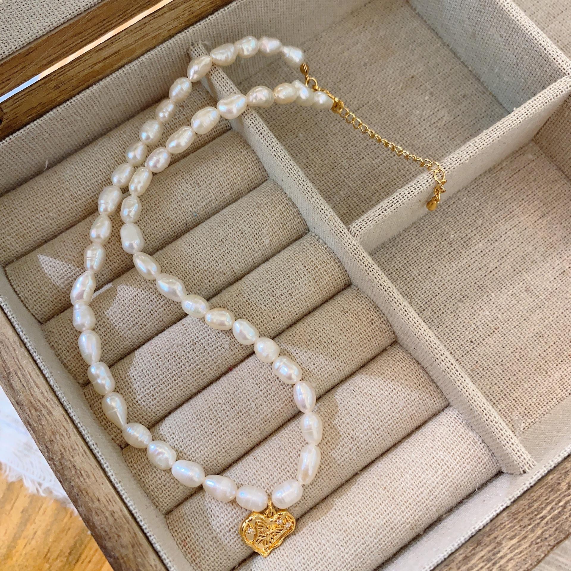 Collar de Perlas de Agua Dulce Retro de Lujo de Entrada Francés Hecho a Mano con Cuentas Simple Combinable Elegante Cadena para Clavícula Fría