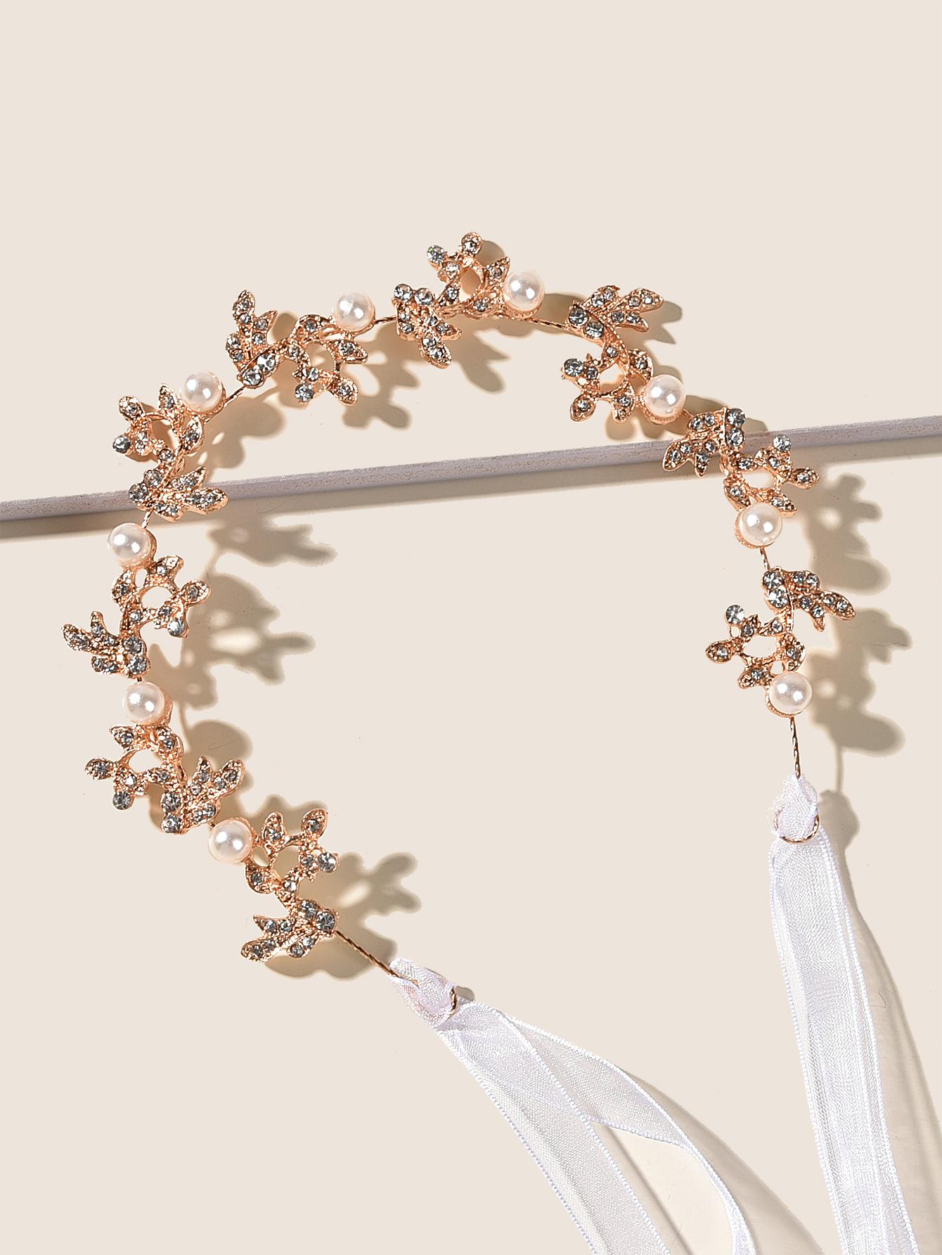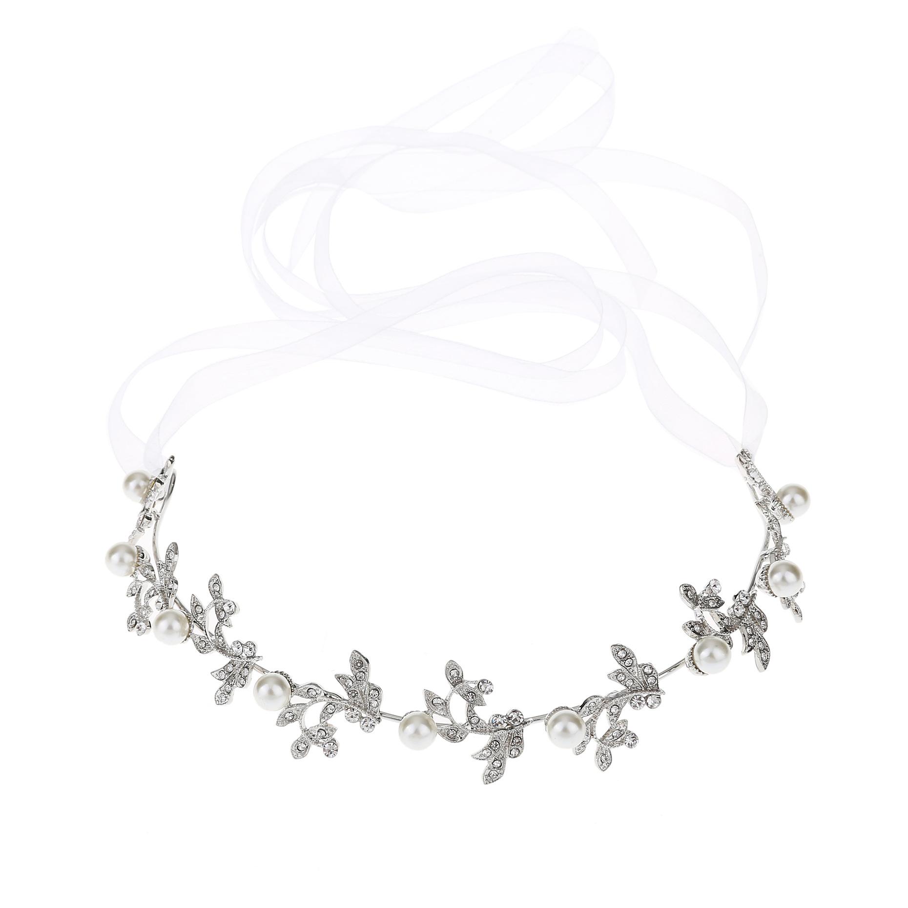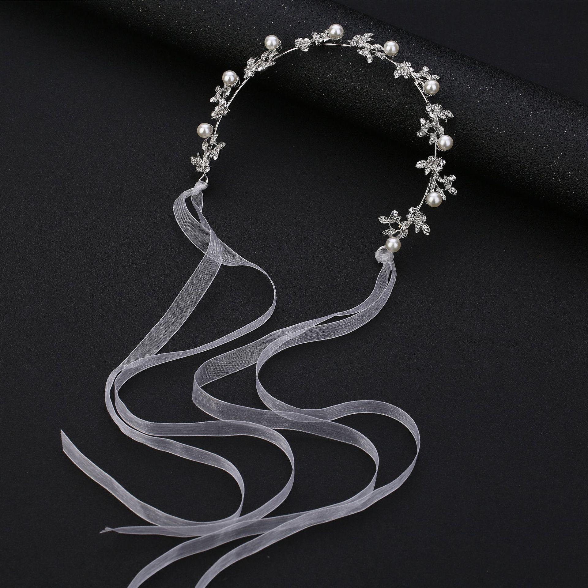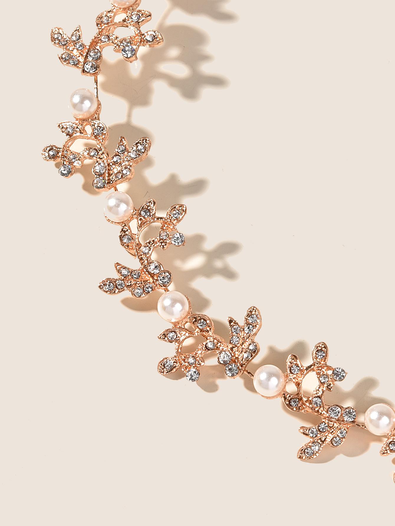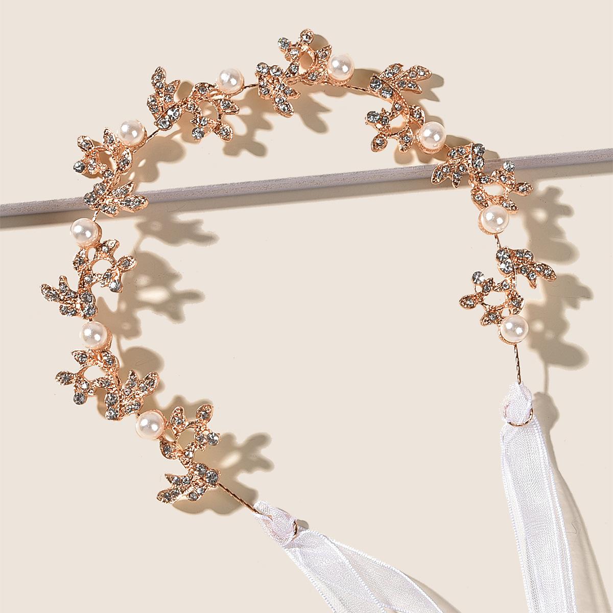 Compra Tocado de novia sencillo europeo y americano, banda para el pelo con cadena suave de aleación de hojas, diadema de perlas hecha a mano, joyería de boda al por mayor al por mayor en Joom.pro