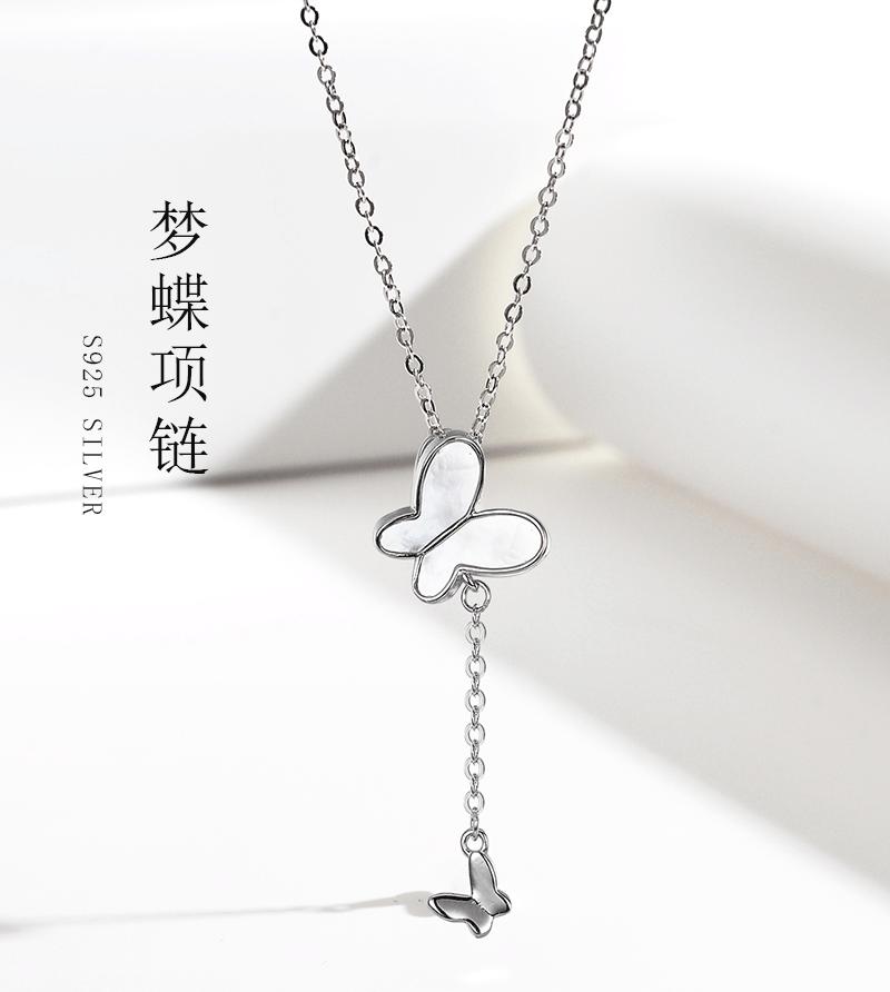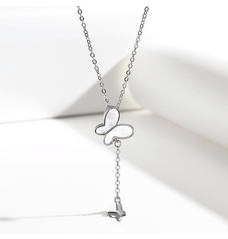 Collar de mariposa original para mujer plata de ley S925 concha mariposa borla colgante de ensueño diseño de nicho fantasía cadena clavícula joyería