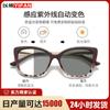 Nuevas gafas de moda europeas y americanas con montura de ojo de gato para mujer, montura decorativa con incrustaciones de diamantes, gafas con protección contra la luz azul que cambian de color transfronterizos.