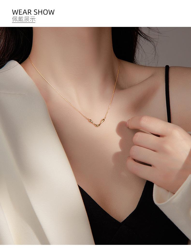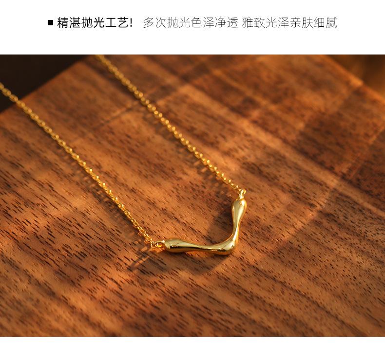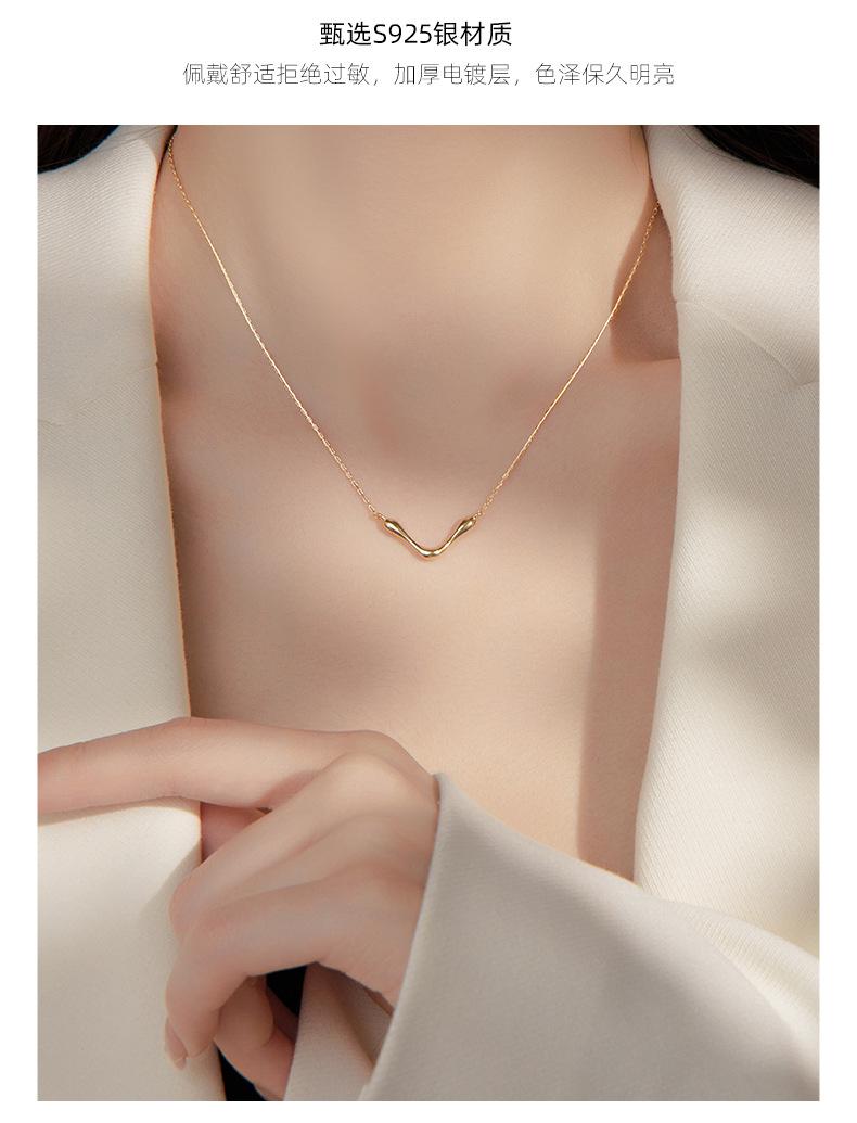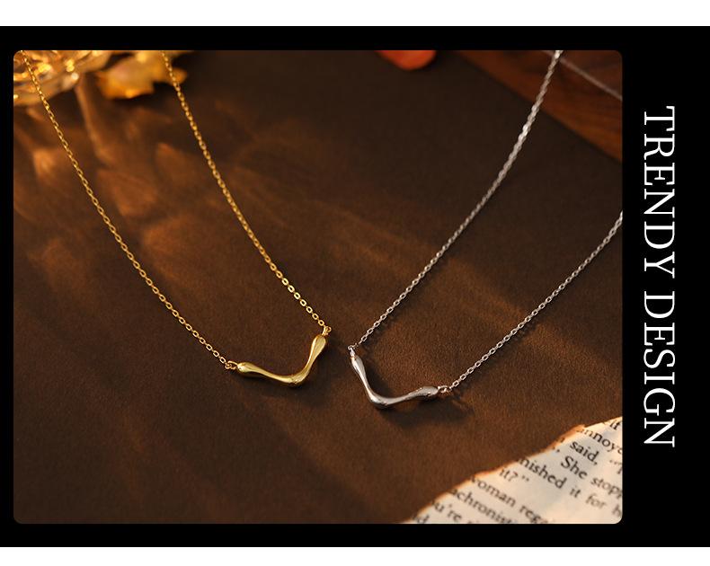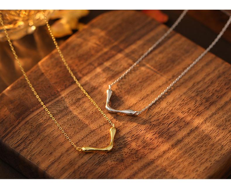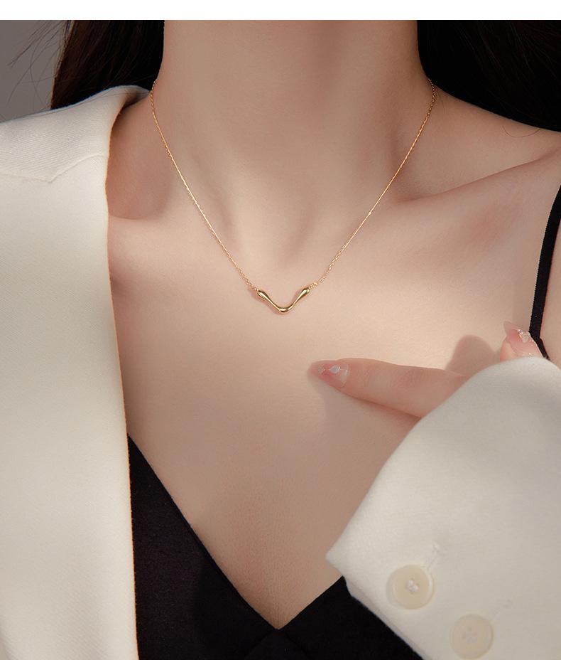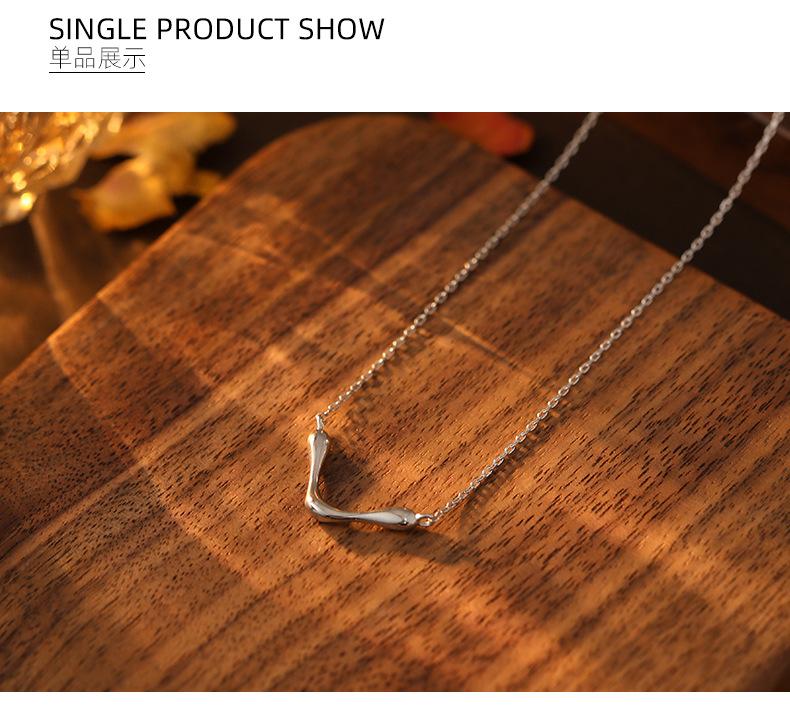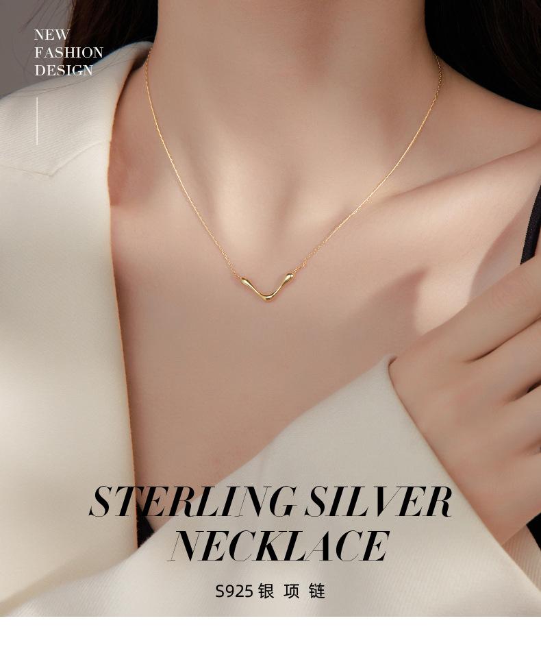 Collar sencillo y liso en forma de V bajo el árbol baniano S925 de plata para mujer, estilo frío de nicho, cadena de clavícula con marea geométrica europea y americana.