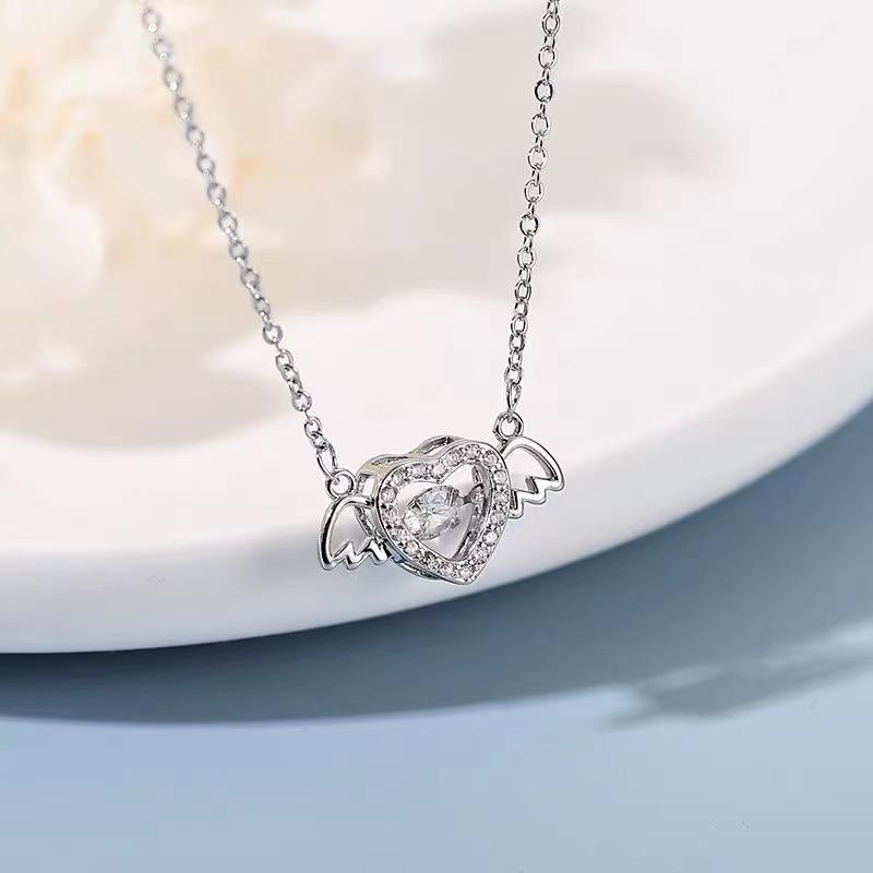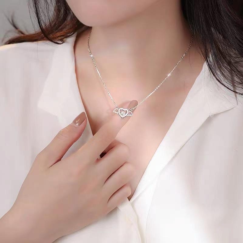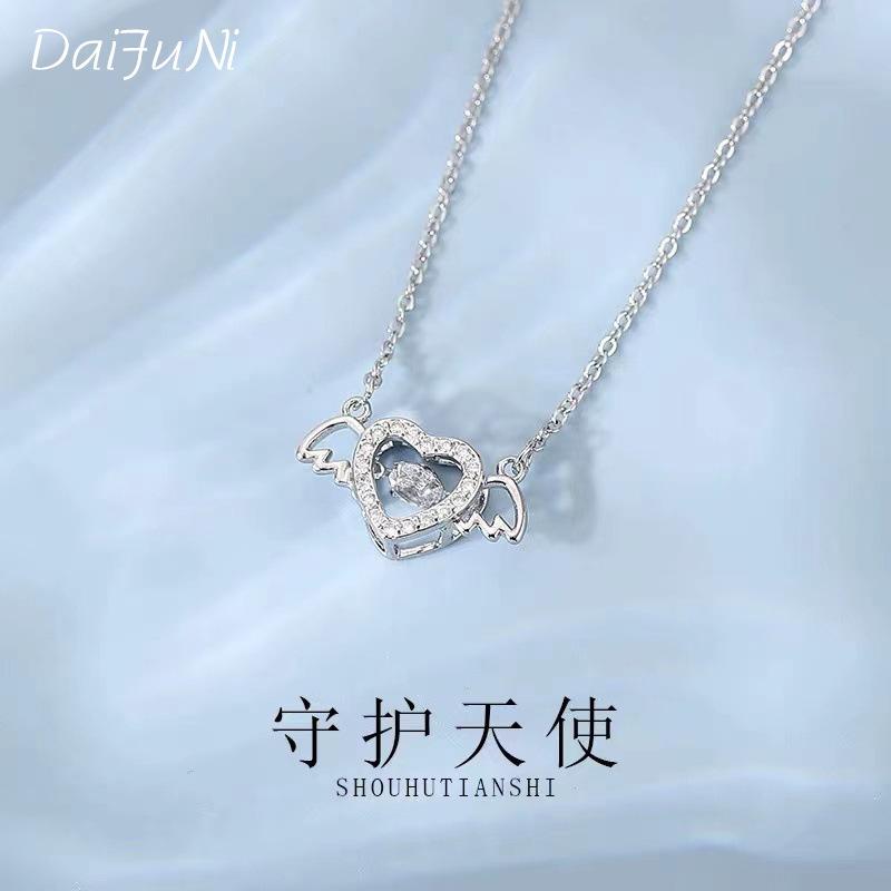 Collar de Alas de Ángel Guardián Chapado en Plata para Mujer, Cadena para Clavícula Estilo Ins con Diseño Único, Colgante en Forma de Corazón, Estilo Ins