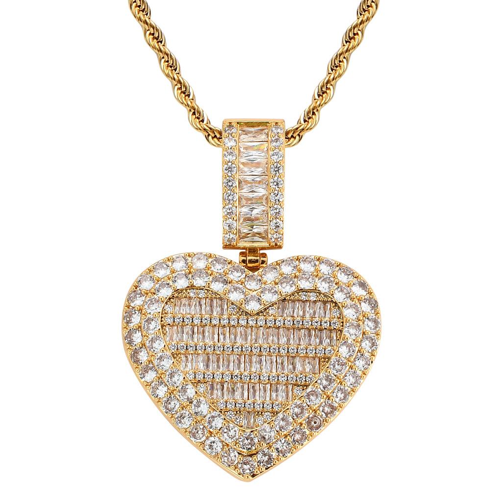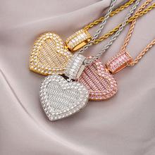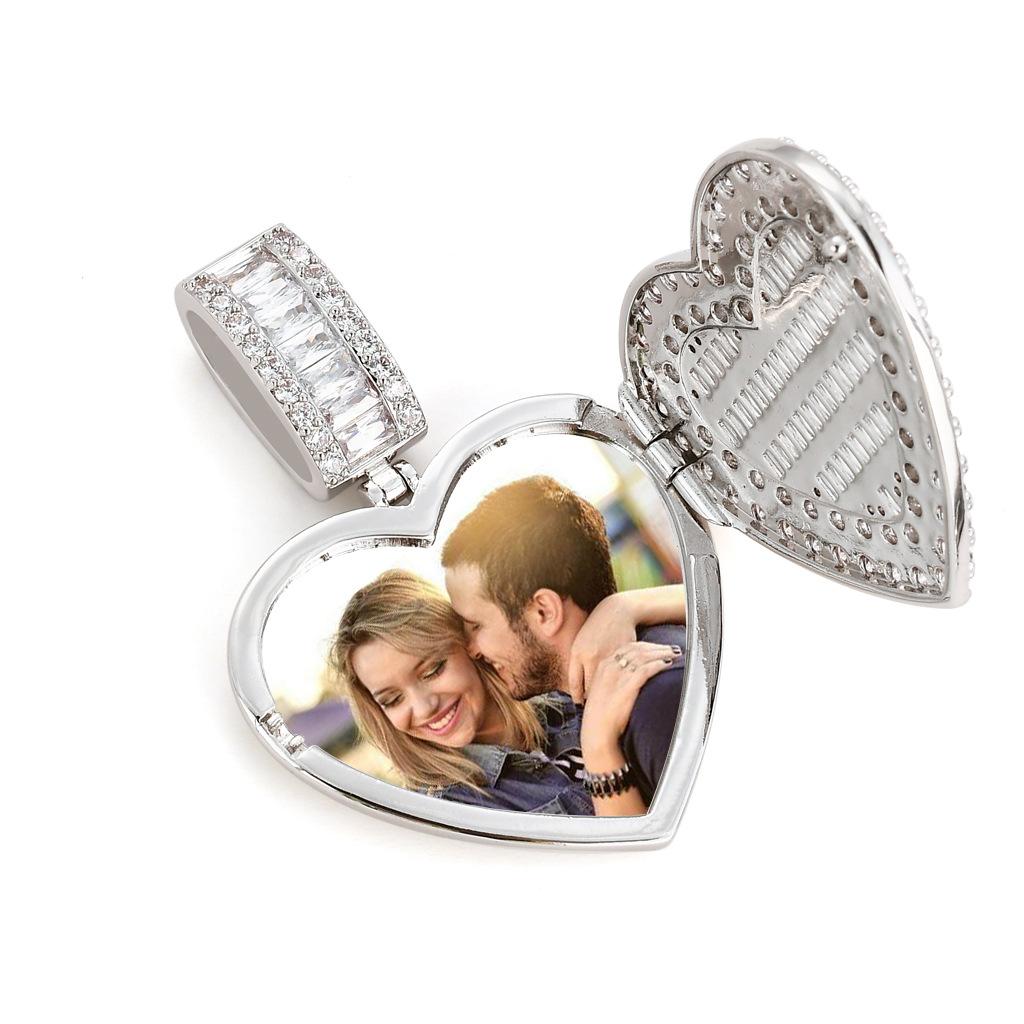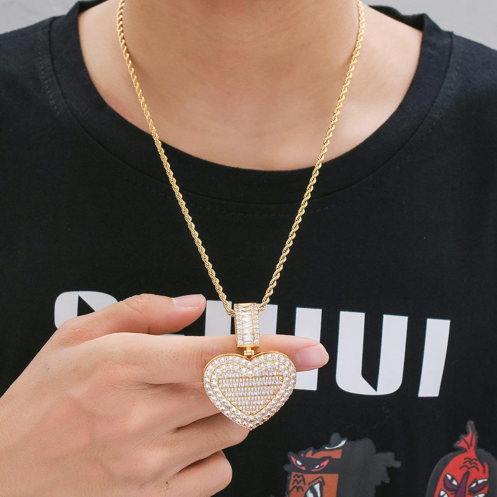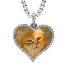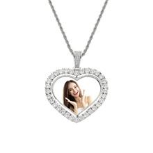 Collar europeo y americano con foto de hip-hop en forma de corazón, marco de fotos de pareja masculina y femenina, colgante conmemorativo, collar sólido de circonita microengarzado