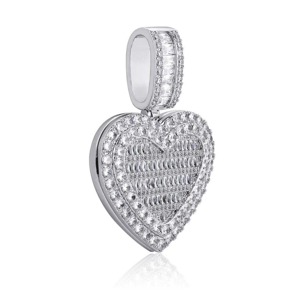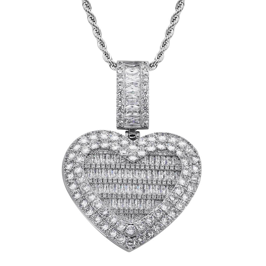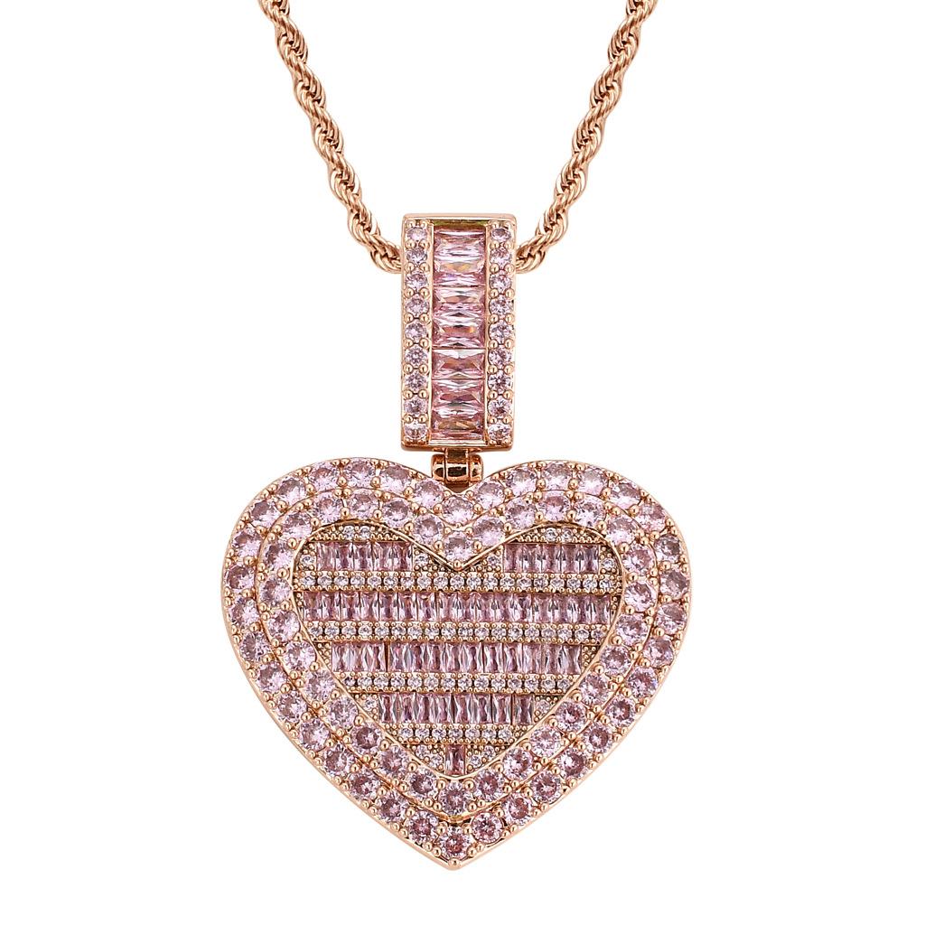 Collar europeo y americano con foto de hip-hop en forma de corazón, marco de fotos de pareja masculina y femenina, colgante conmemorativo, collar sólido de circonita microengarzado