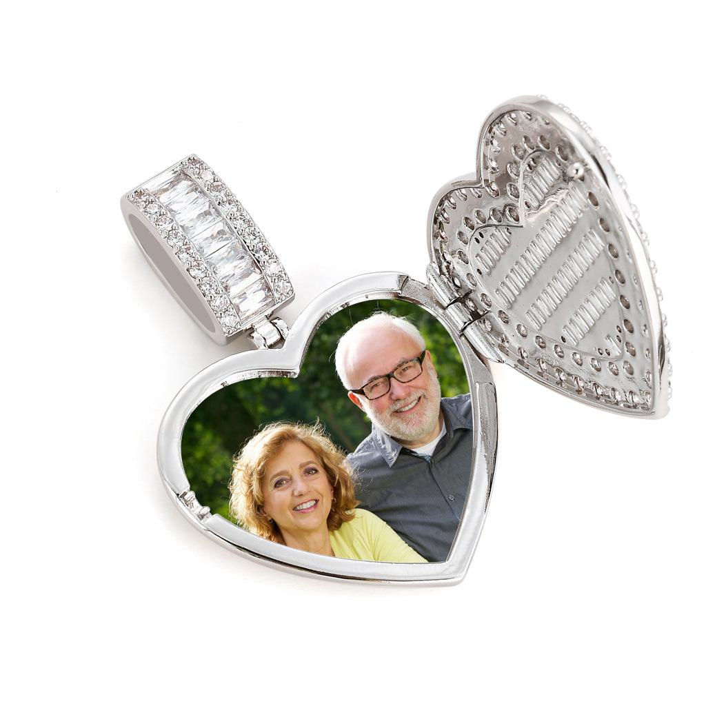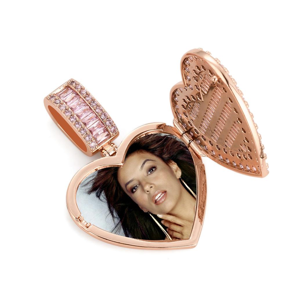 Colgante de foto conmemorativa de amor transfronterizo europeo y americano, personalizado, creativo, bricolaje, con incrustaciones de cobre, circonita, colgante de hip-hop