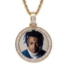 Colgante de marco de fotos redondo de hip-hop europeo y americano transfronterizo, foto personalizada, circonita cuadrada en T, collar de moda de hip-hop creativo DIY