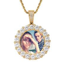 Colgante de marco de fotos de hip-hop europeo y americano, bricolaje, foto de pareja privada, recuerdo, collar de hip-hop sólido de circonita grande redondo