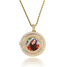Collar europeo y americano para hombre, colgante con marco de fotos redondo, colgante de foto giratorio de doble cara, colección conmemorativa, joyería de hip-hop personalizada