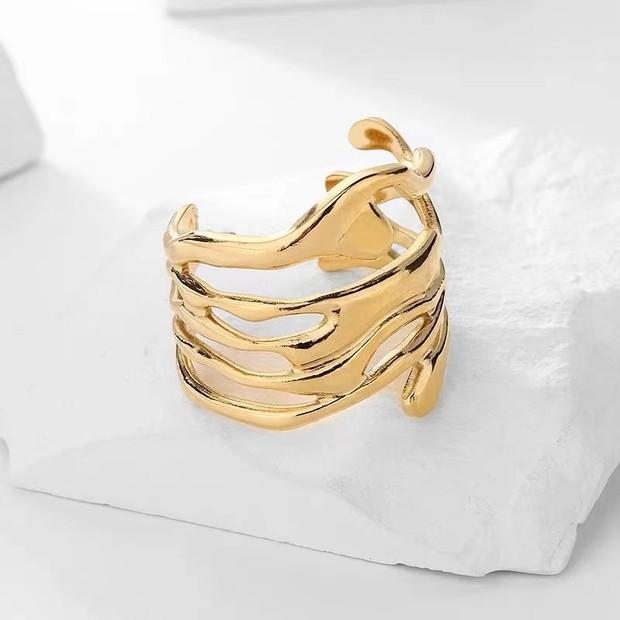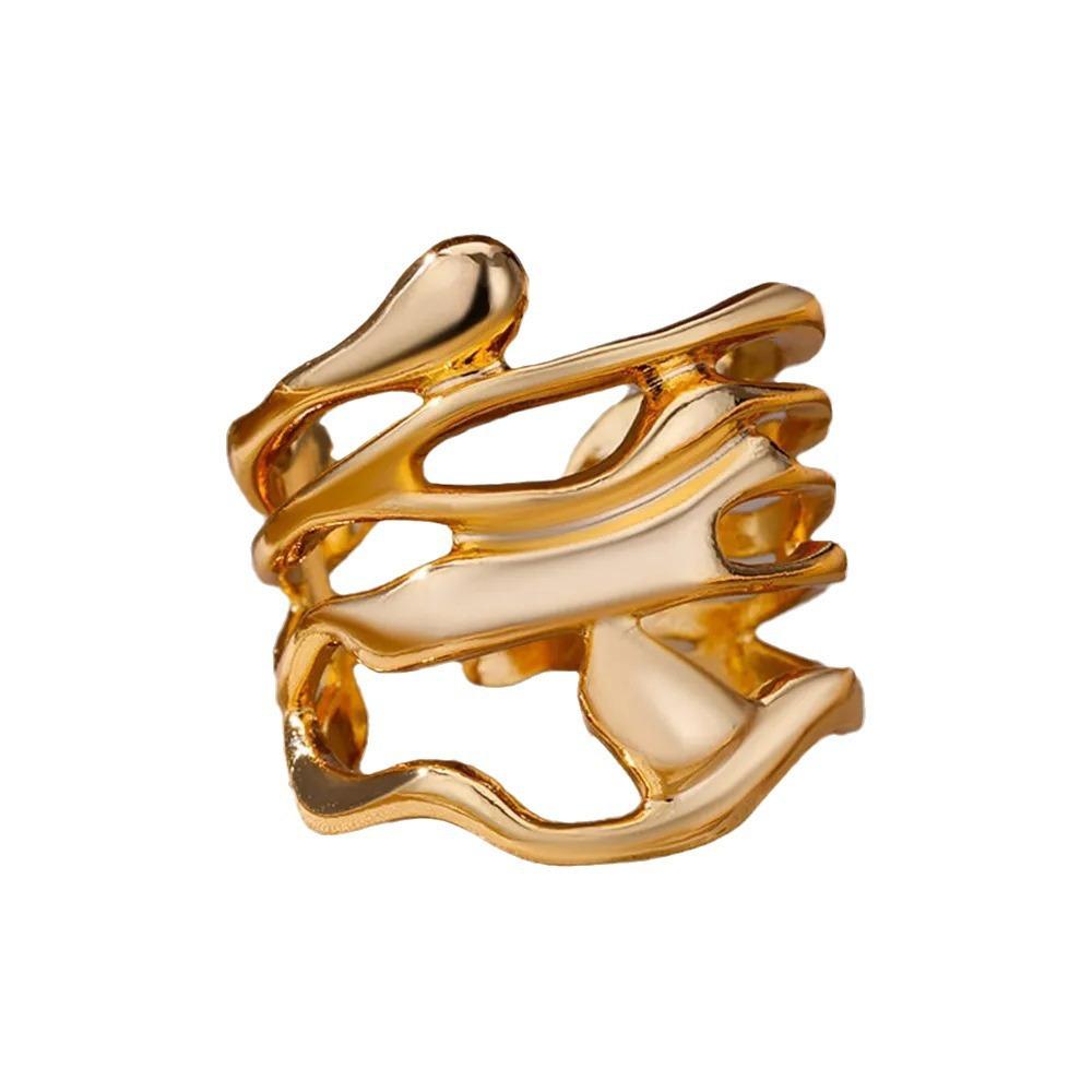 Anillo popular europeo y americano para mujer retro industria pesada irregular goteo anillo abierto personalidad moderno cool anillo de dedo índice nicho