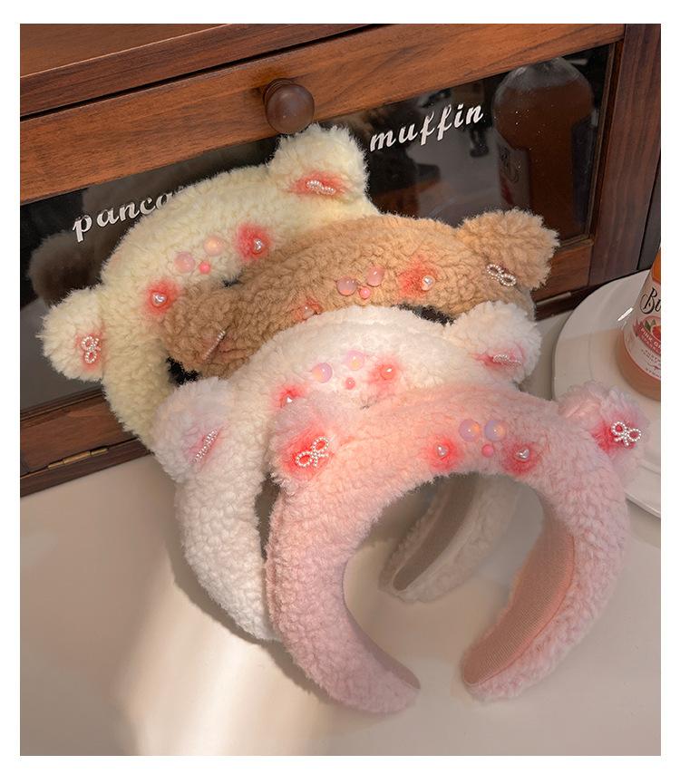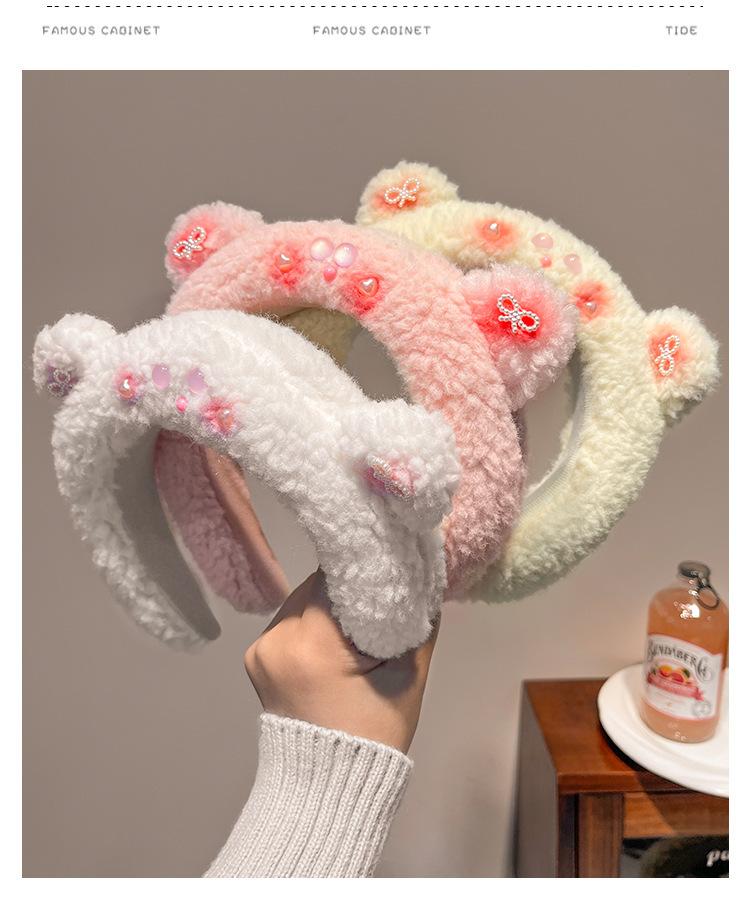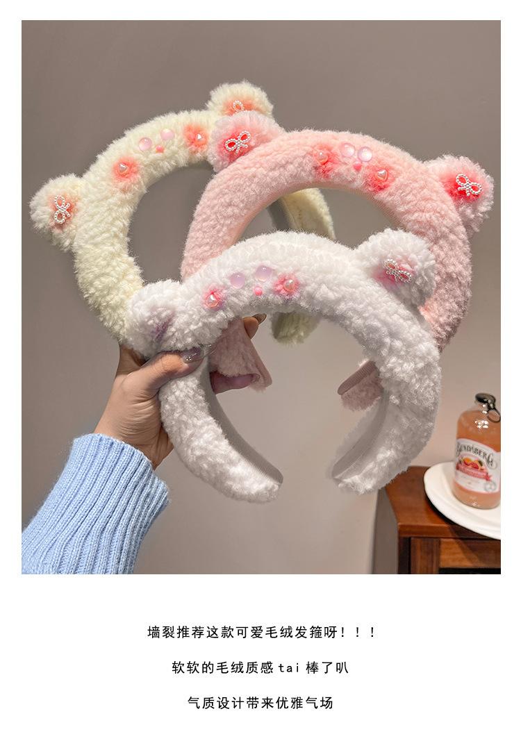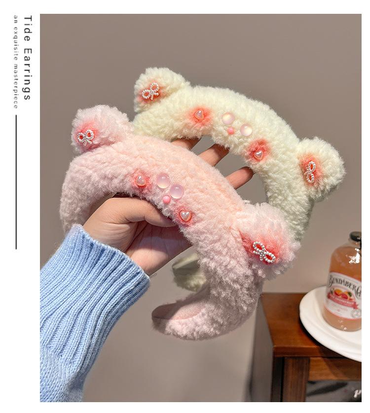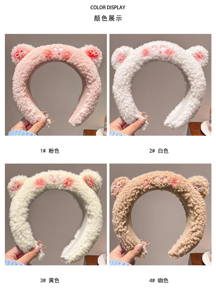 Bonita banda para el pelo de oso de peluche, banda para el pelo lavable a presión, horquilla para niña, paquete de accesorios antideslizantes para el pelo, tocado para otoño e invierno.