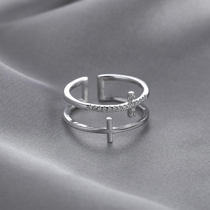 Anillo Cruzado de Doble Capa Japonés y Coreano para Mujer con Apertura Simple Moda Coreana Diamante Flash Anillo de Dedo Cobre Zircón Anillo ins
