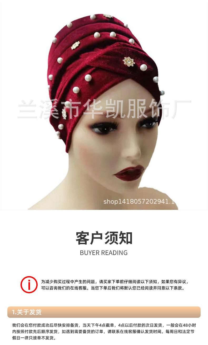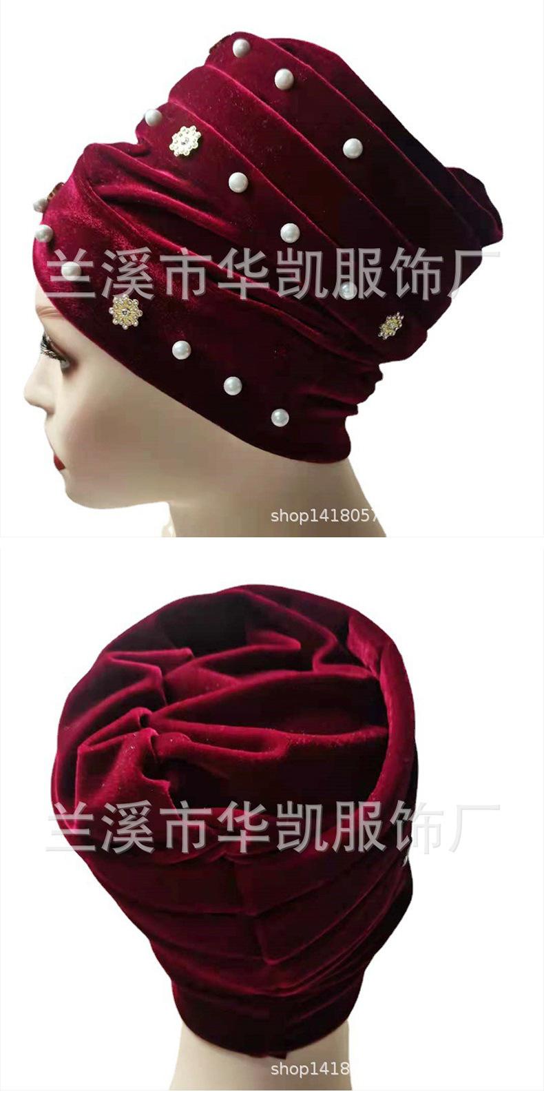 Nuevo Sombrero de Pañuelo para la Cabeza Musulmán Transfronterizo con Capa Espacial, Sombrero Étnico con Cuentas de Pedrería a la Moda, Elegante Sombrero Pequeño Africano en Stock