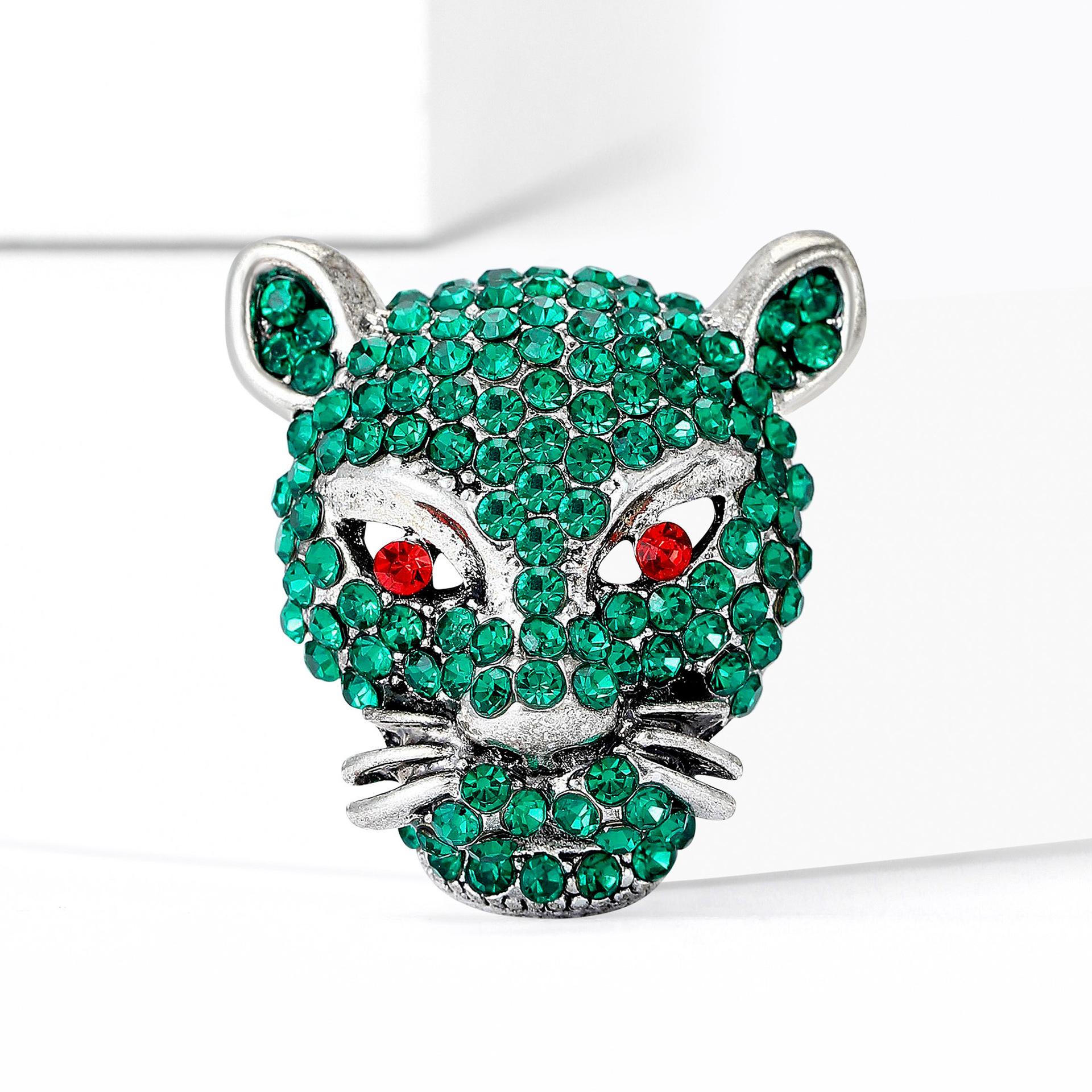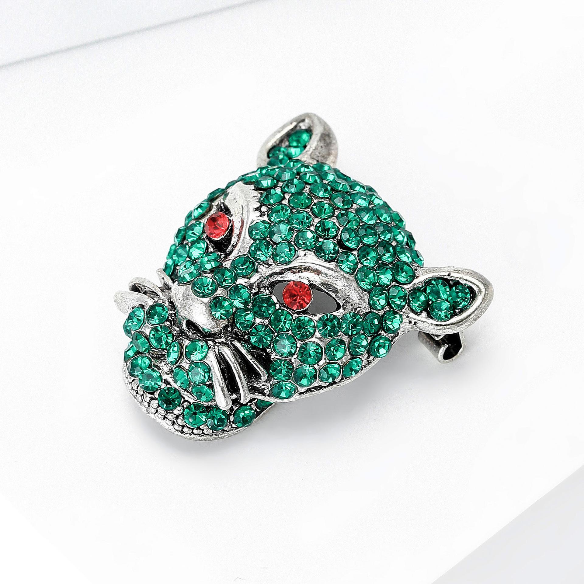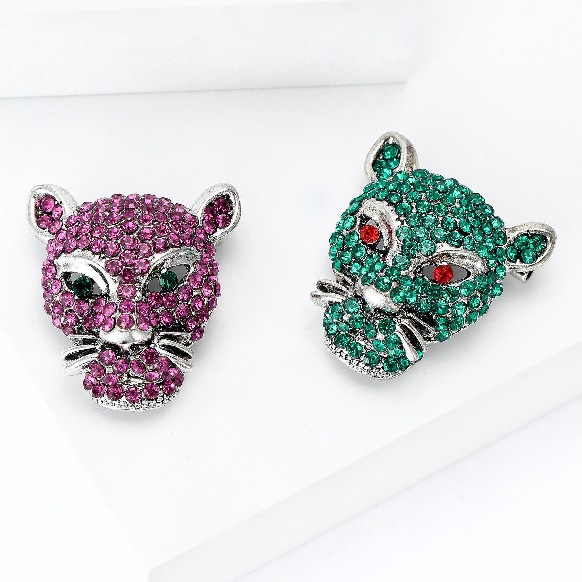 Broche de cabeza de leopardo con diamantes de imitación hechos a mano de alta gama, accesorios de moda, alfiler de animal, alfiler de cuello, venta al por mayor