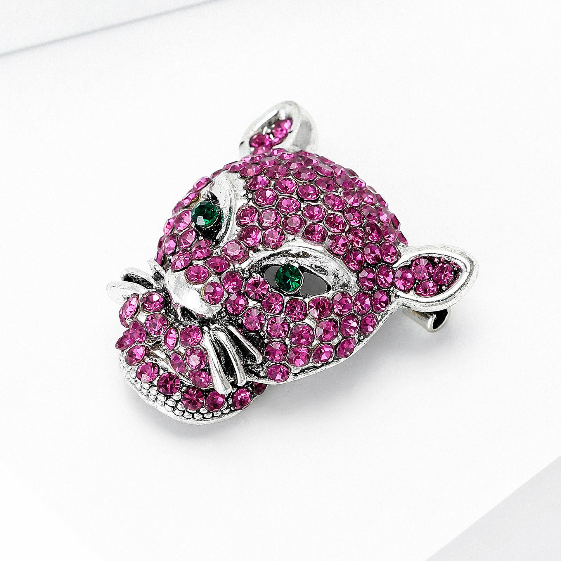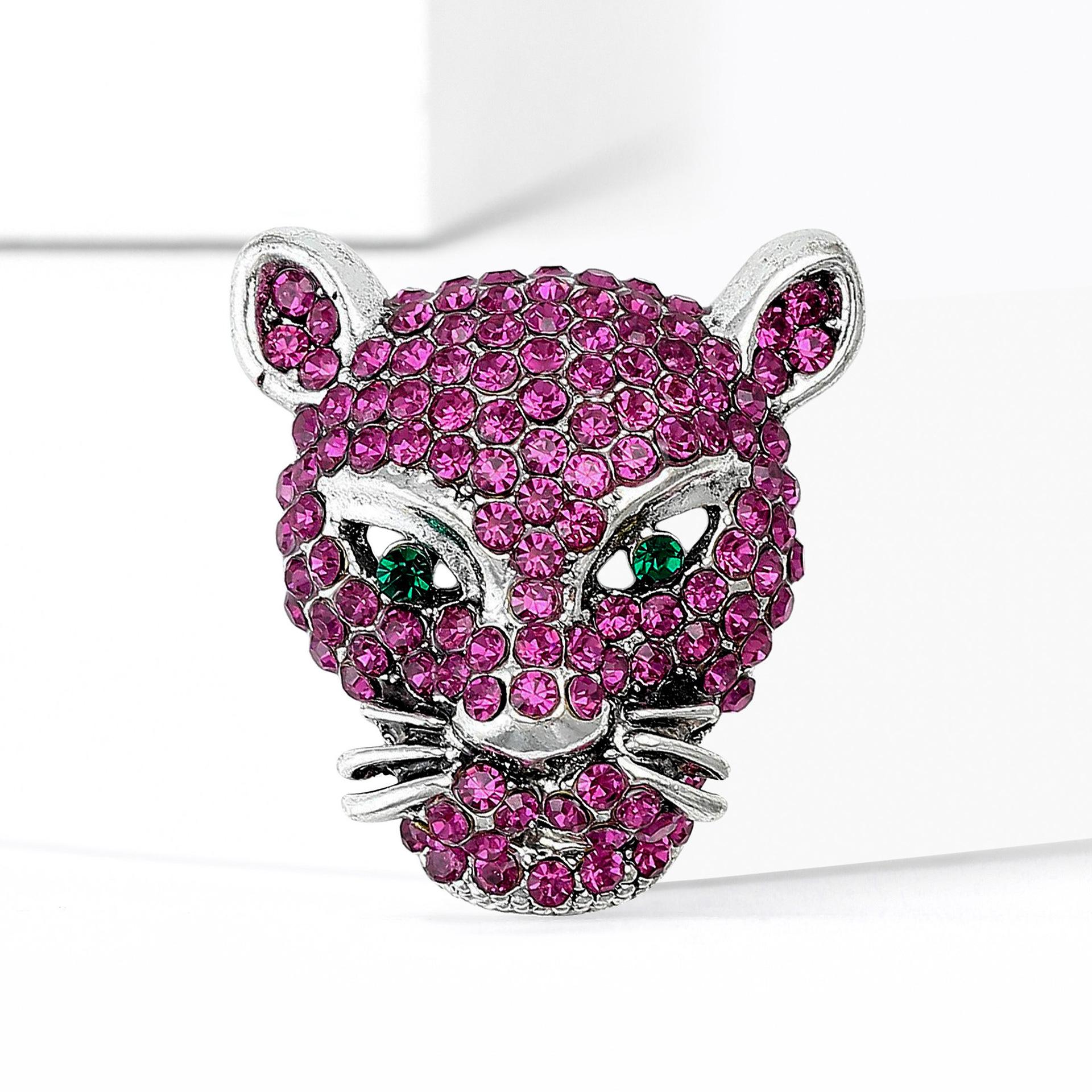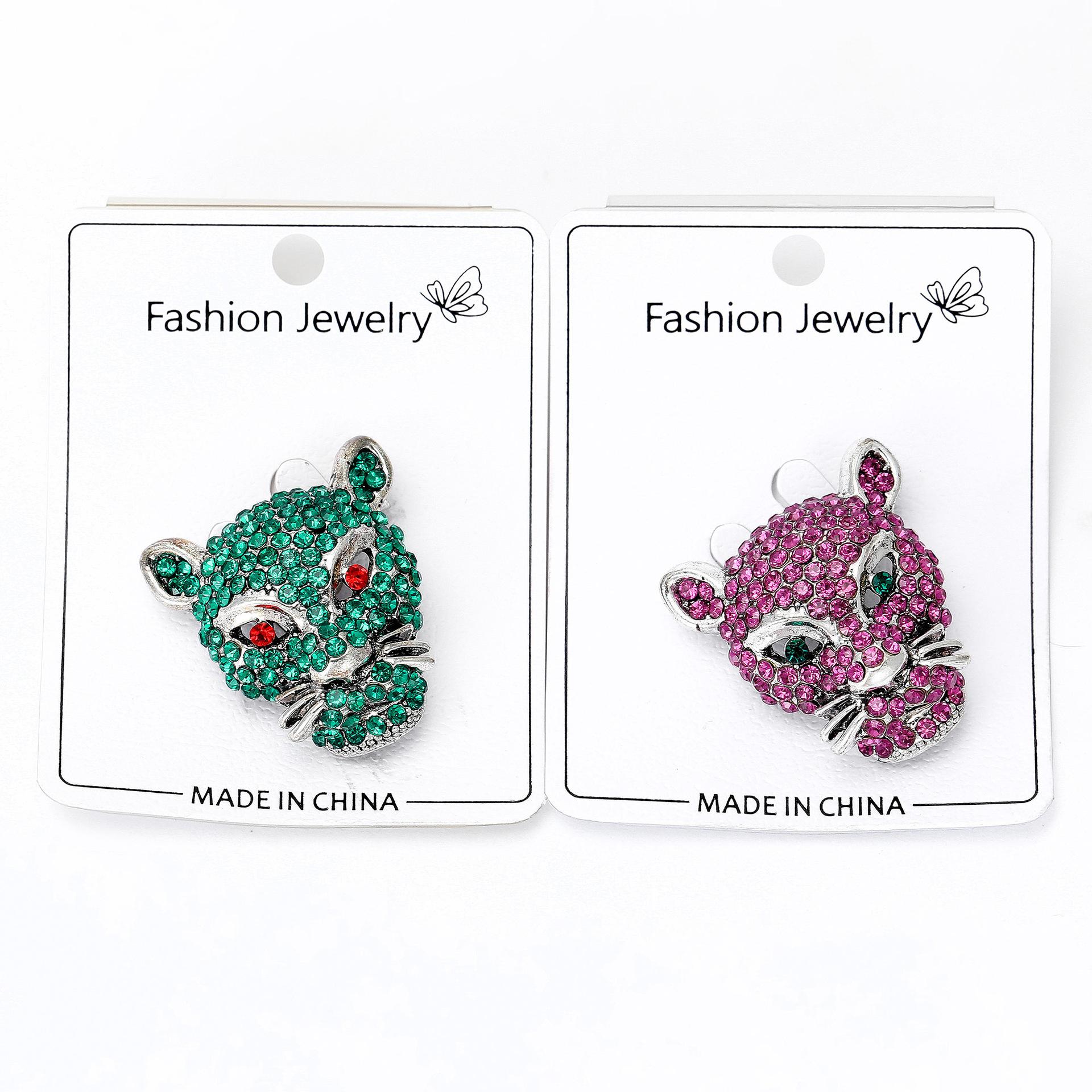 Broche de cabeza de leopardo con diamantes de imitación hechos a mano de alta gama, accesorios de moda, alfiler de animal, alfiler de cuello, venta al por mayor
