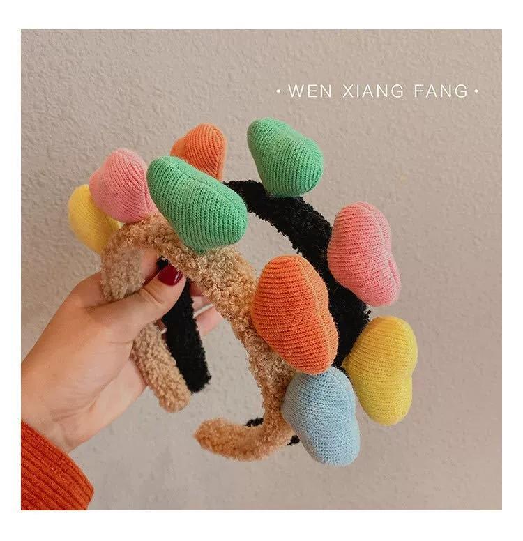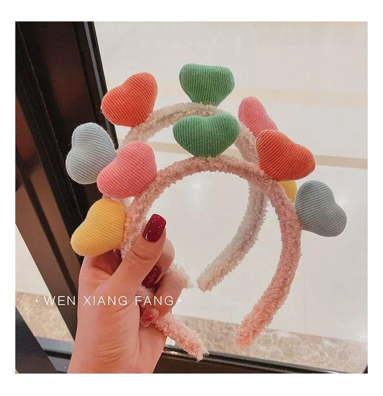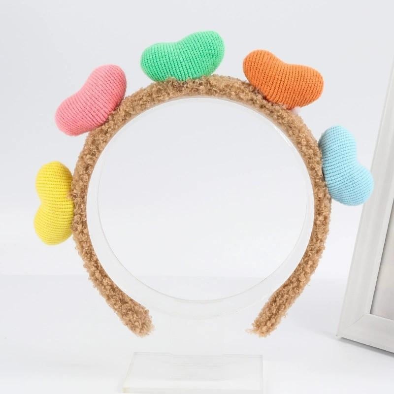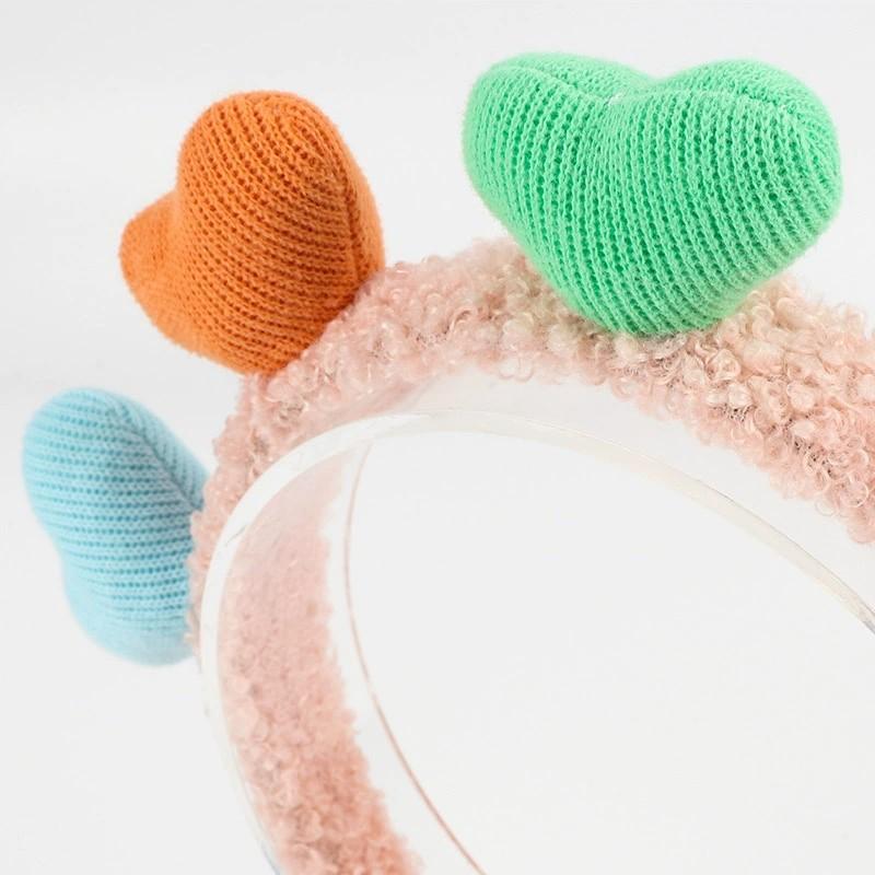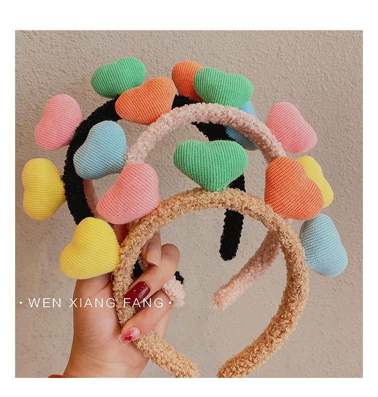 Versión coreana de diadema de onda de luz de amor dulce, maquillaje facial, color caramelo, amor, accesorios para el cabello, tocado, otoño e invierno, accesorios para el cabello de felpa