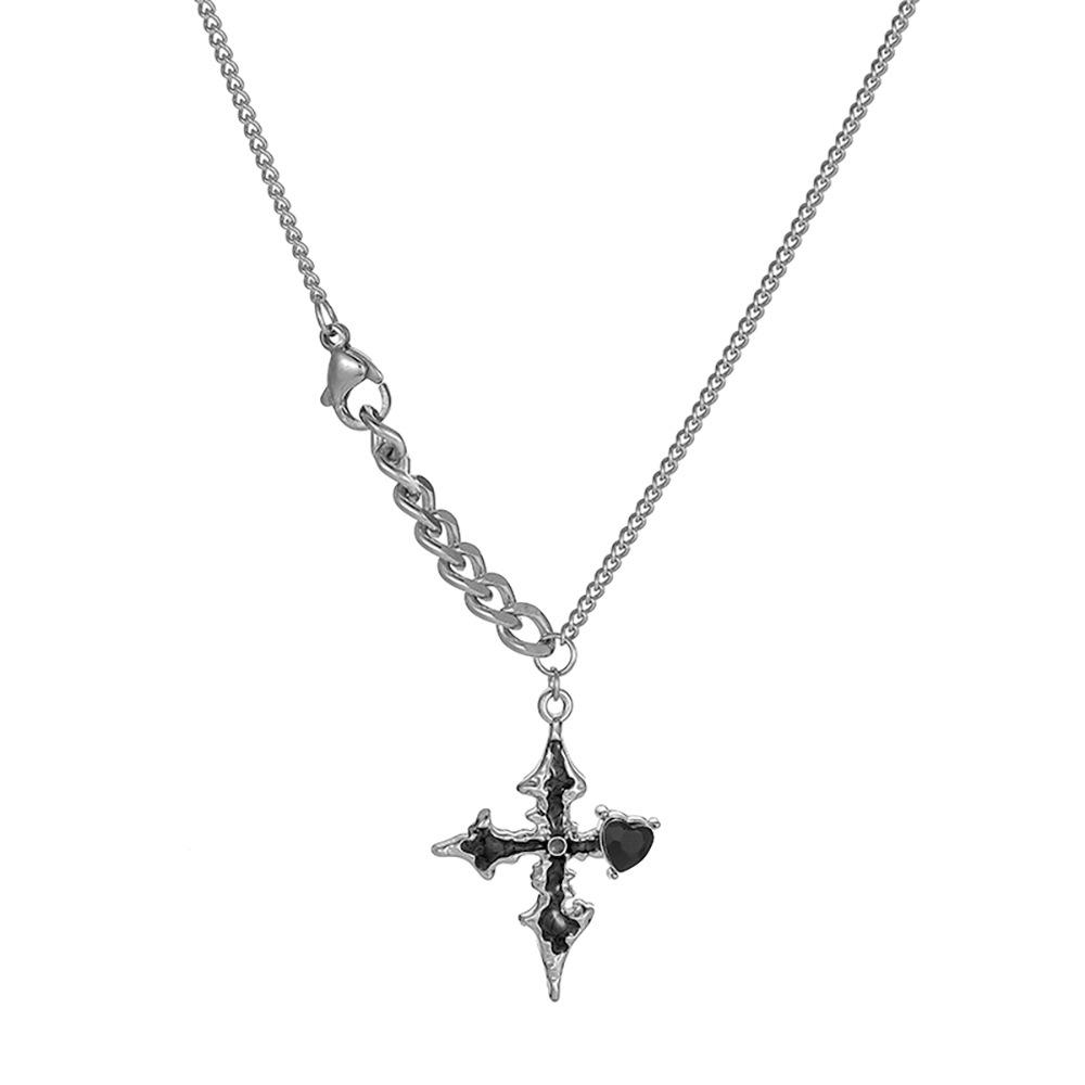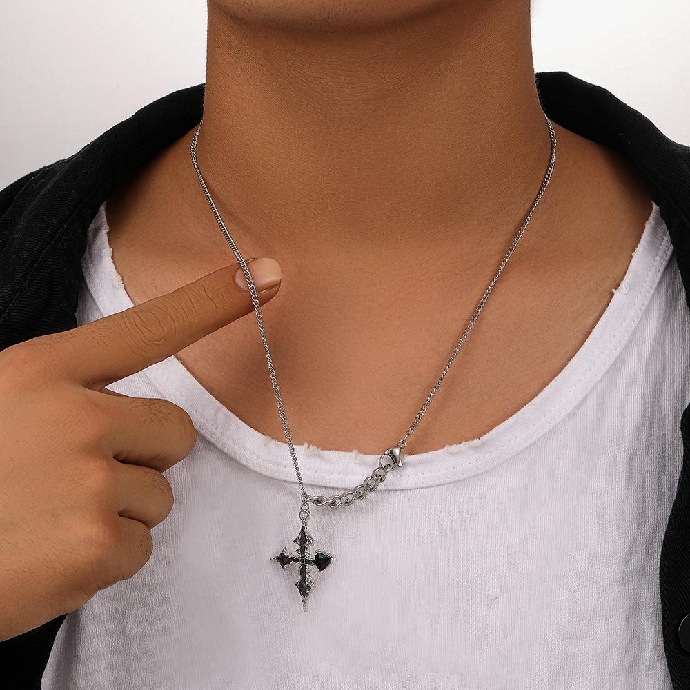 Nuevo collar de cadena de acero inoxidable con diseño de cruz de amor simple y aceite negro para hombre, combinable con todo, de Amazon.