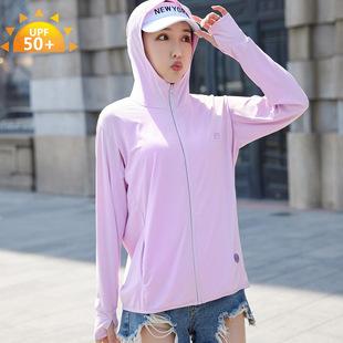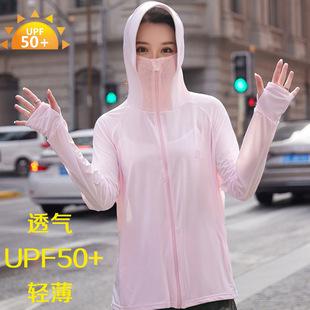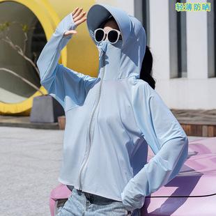 Ropa de protección solar para mujer en verano, de longitud media, con capucha, ligera, transpirable, de seda helada, de piel, con logotipo personalizado. |