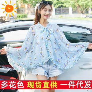 Chal protector solar de verano para conducir y andar en bicicleta, bufanda parasol, chal de chifón estampado, moda femenina, torre exterior de celebridad de internet, mangas tipo capa |