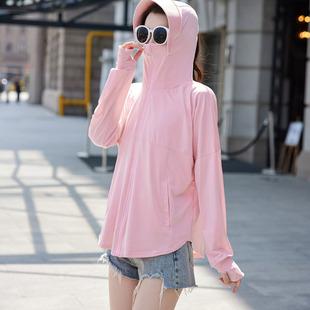 Ropa fina de verano con protección solar, malla transpirable, protección solar, seda de hielo con capucha para mujer, color sólido, para viajes al aire libre, ropa de manga larga con aire acondicionado |