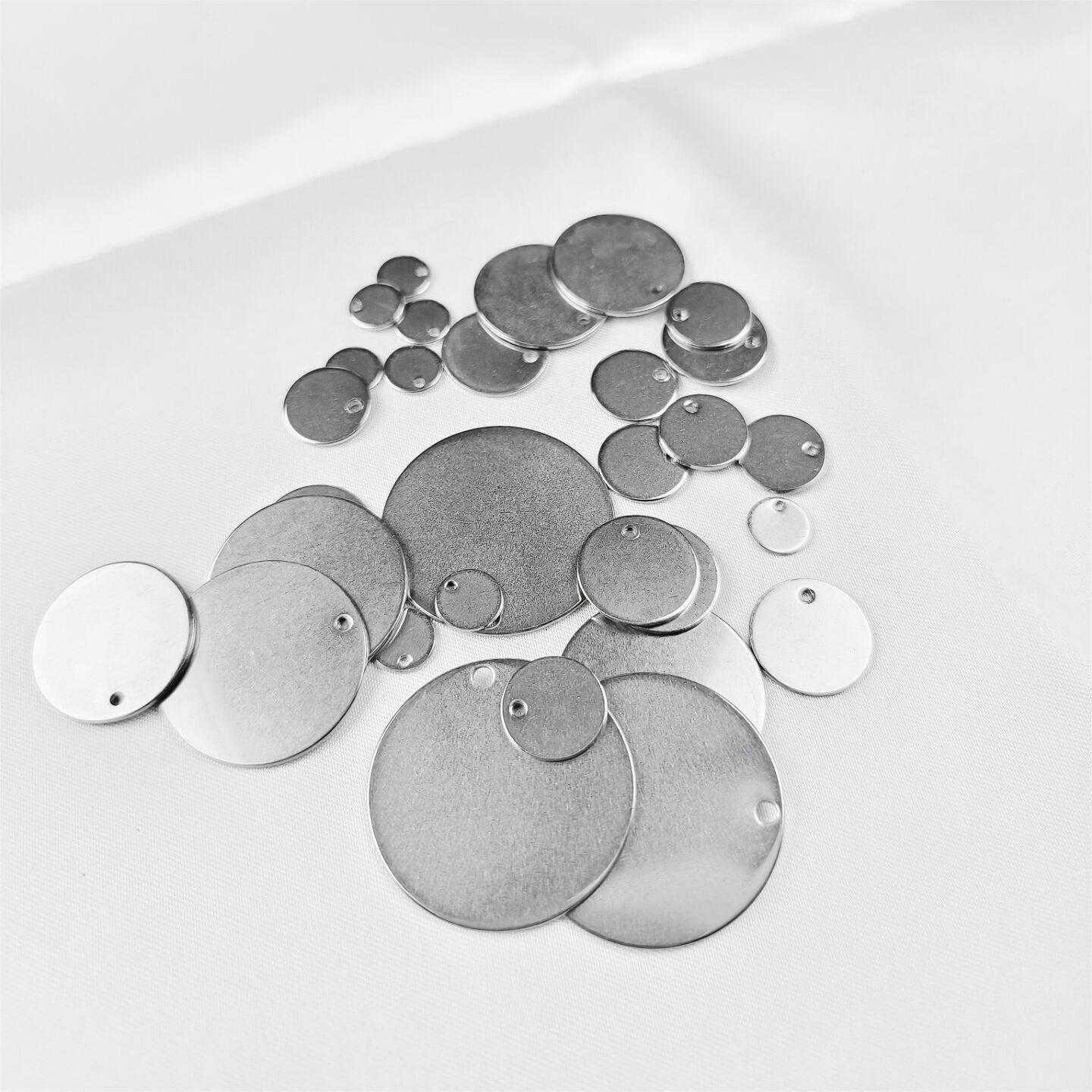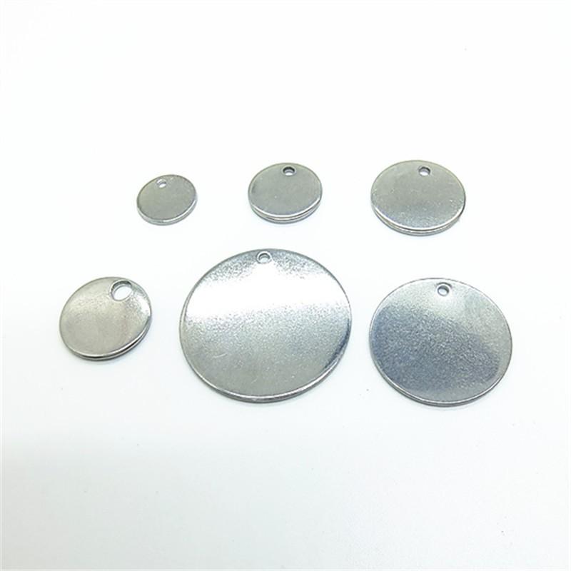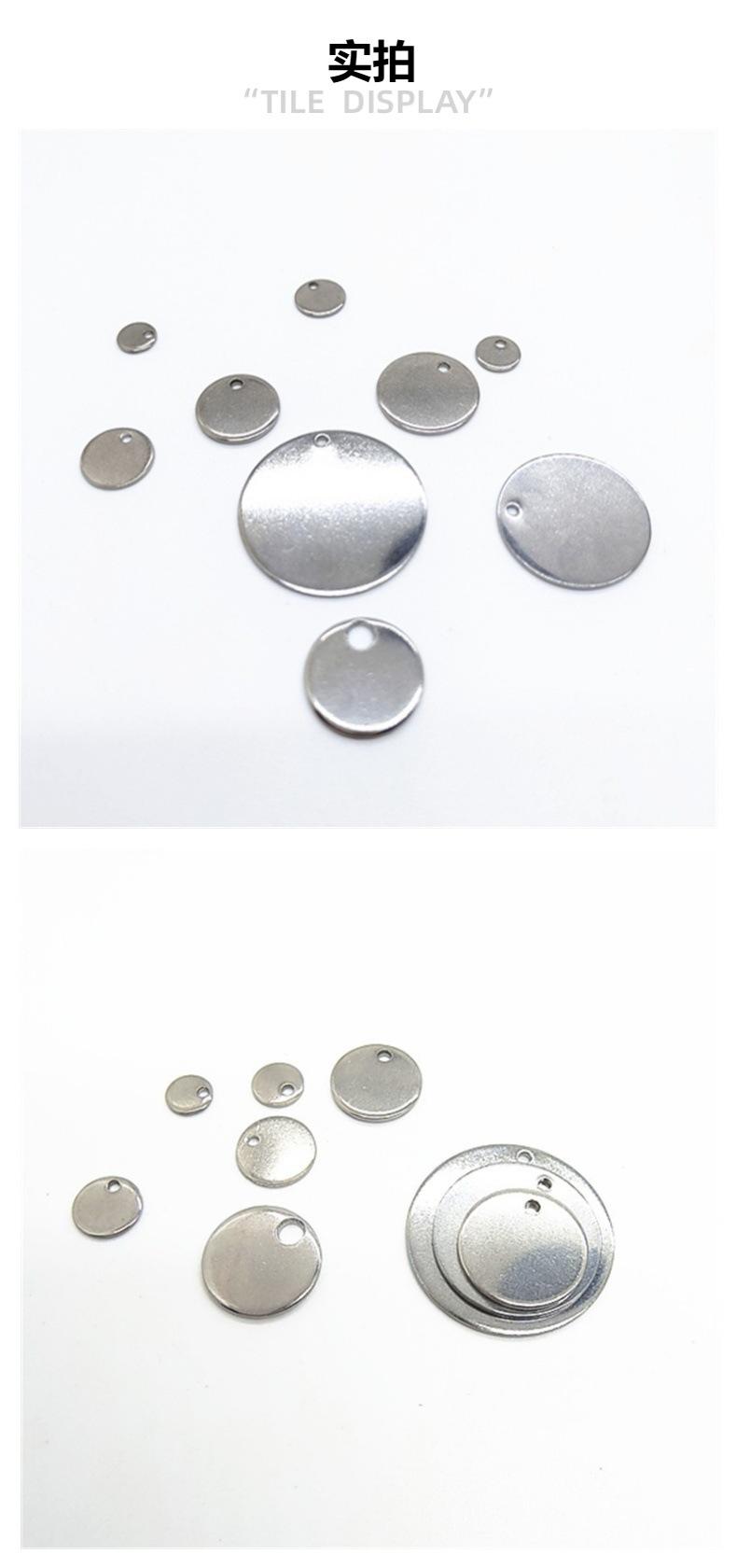 Colgante de acero inoxidable con letras DIY, se puede pulir, chapado, etiqueta redonda de 6-30 mm, etiqueta trasera, colgante con logotipo