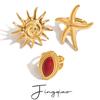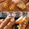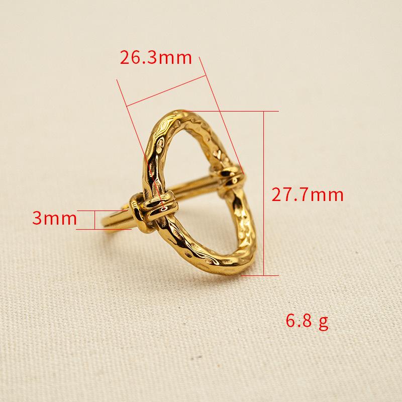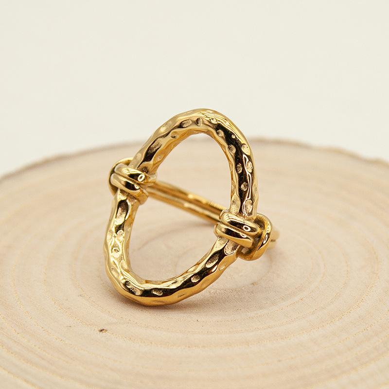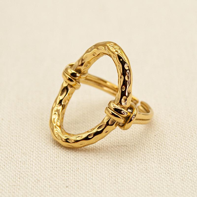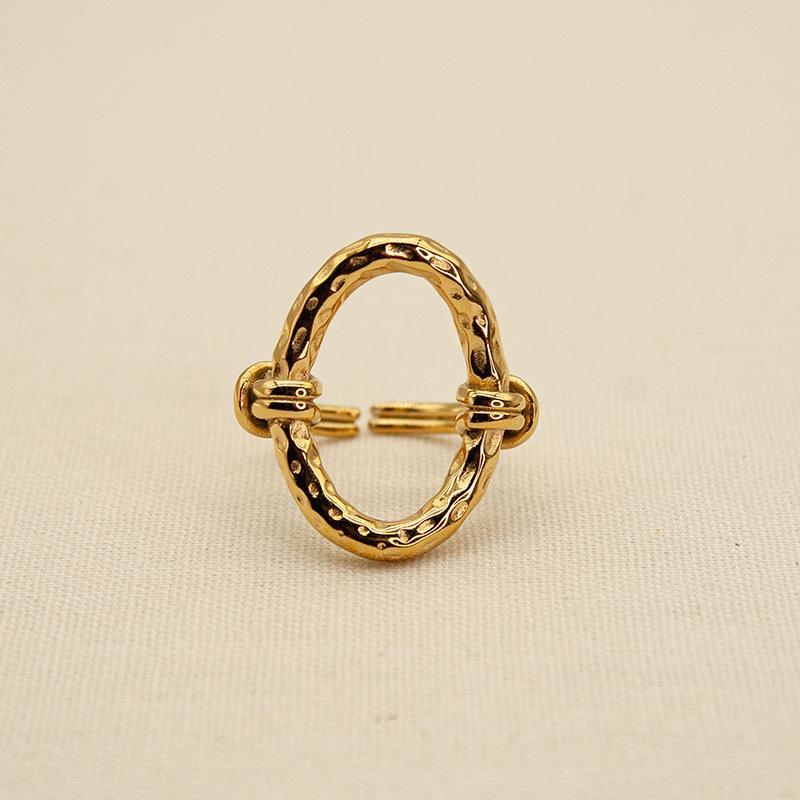 Anillo Abierto Ovalado Transfronterizo Europeo y Americano con Patrón de Martillo Hueco Acero Titanio Chapado al Vacío Color Libre Retro Lujo Ligero Anillo para la Vida