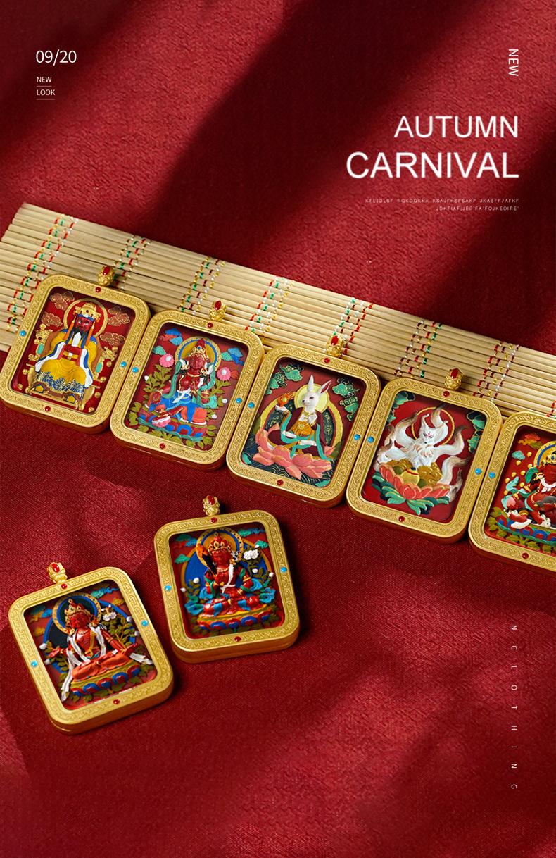 Cinabrio Xizang Pintado a mano Limpiar Thangka Quinto Maestro Huang Cai Zaji Ramwen Accesorios para jugar Colgante Thangka Colgante único Cinabrio