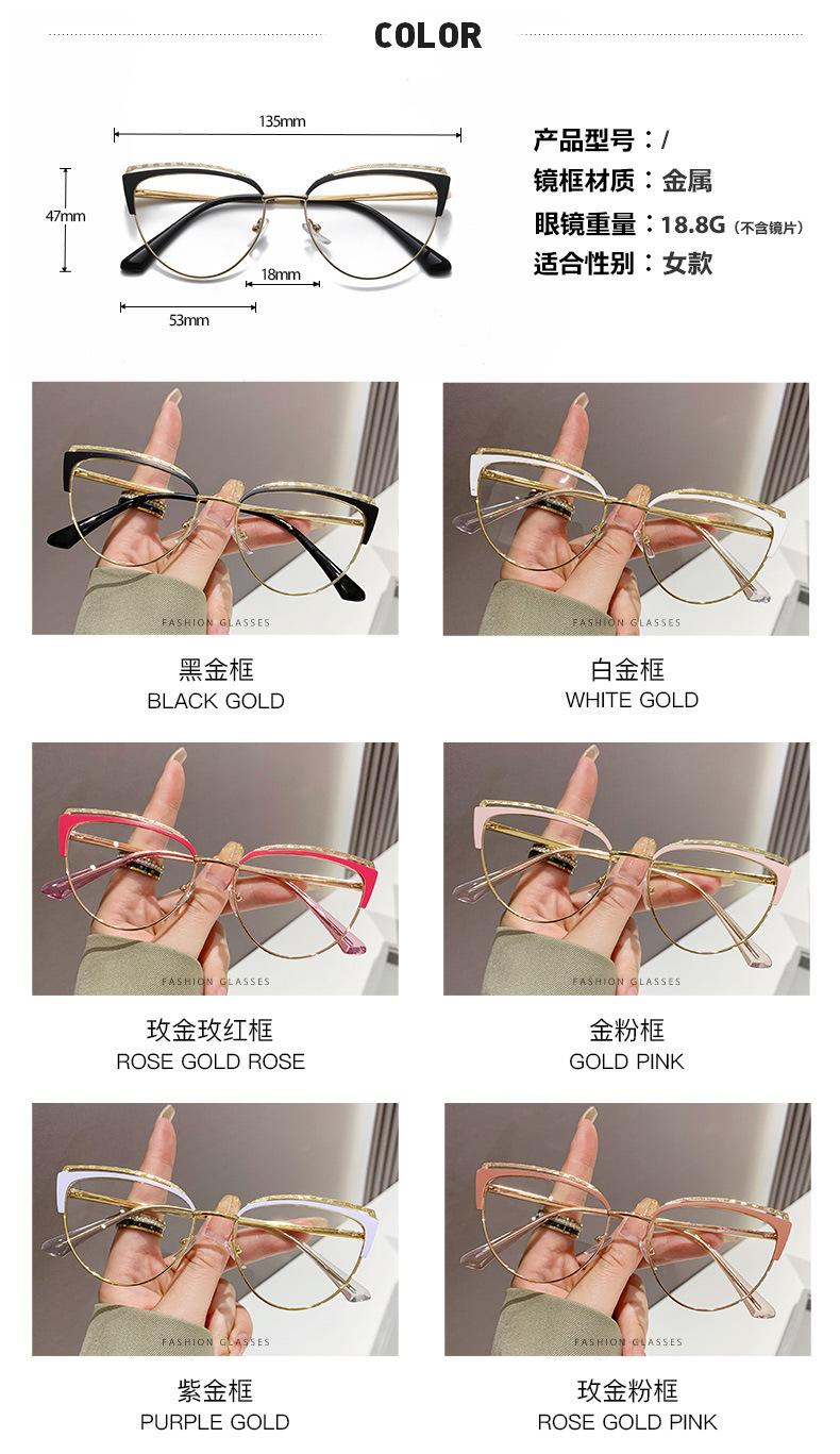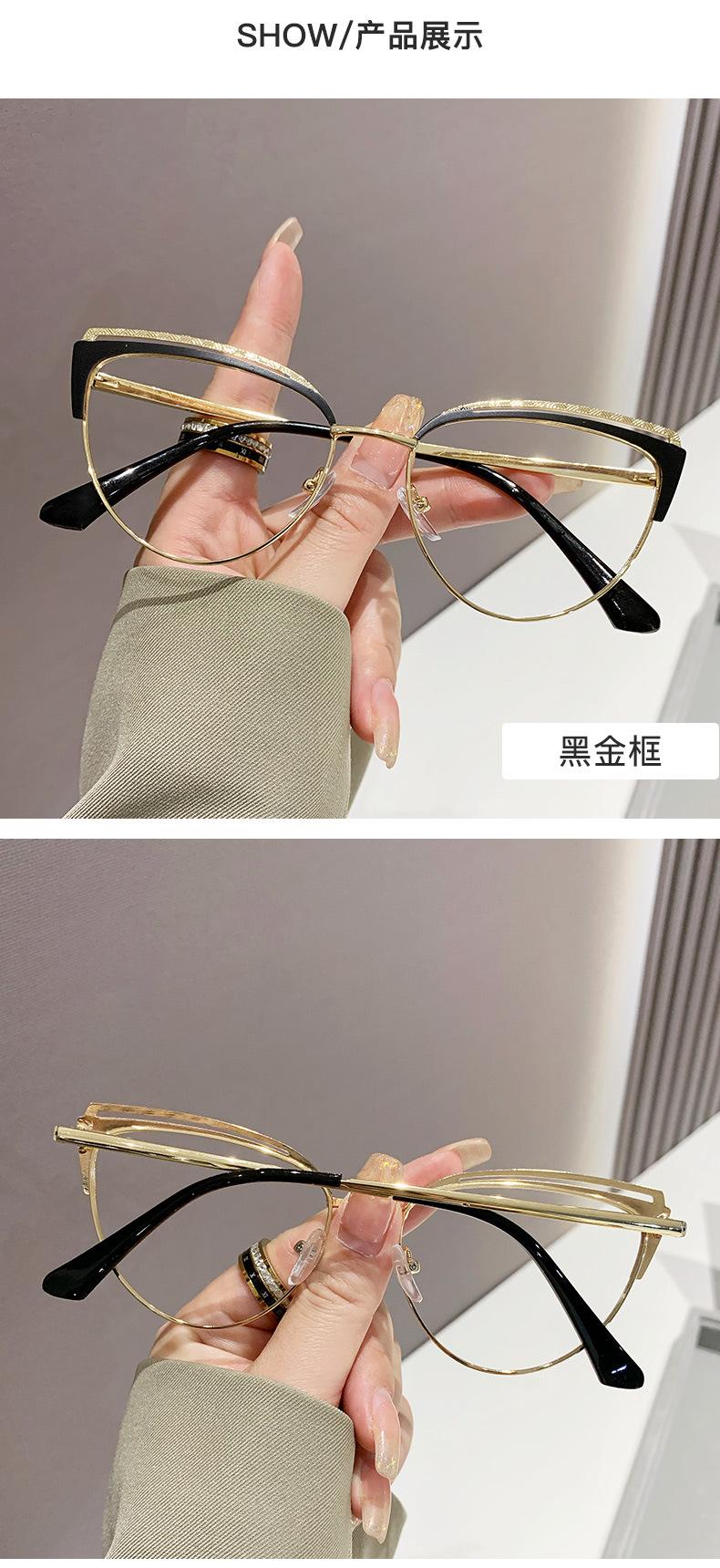 Montura de Gafas Ojo de Gato Nueva y a la Moda para Mujer Metal Calado Montura de Gafas Europea y Americana Popular Transfronteriza Gafas Anti Luz Azul