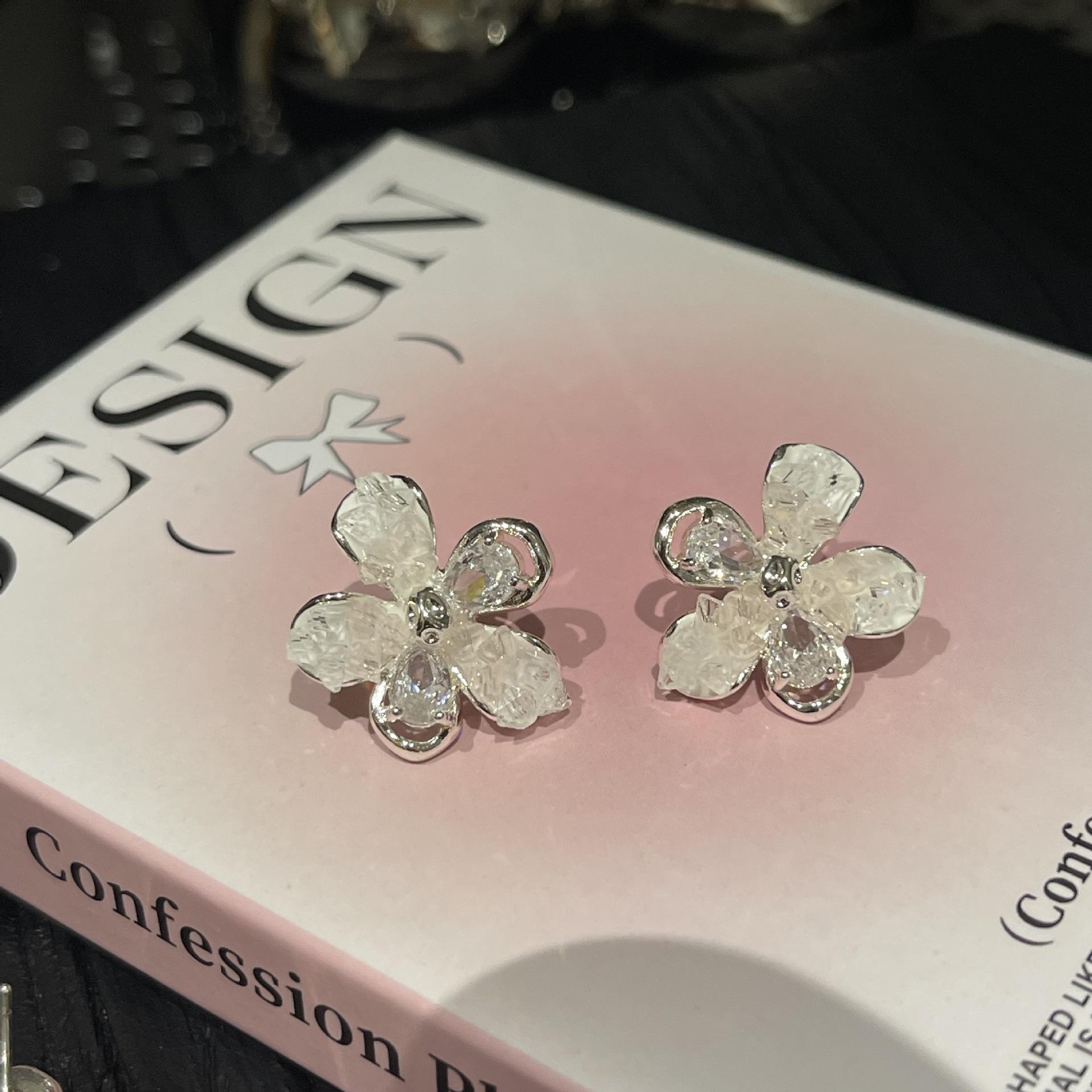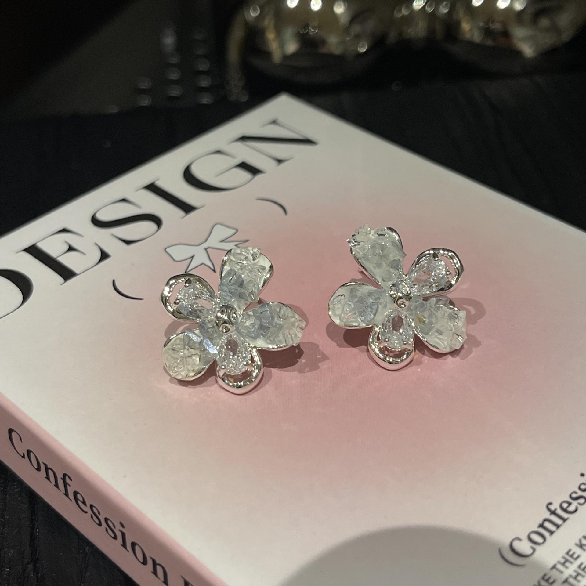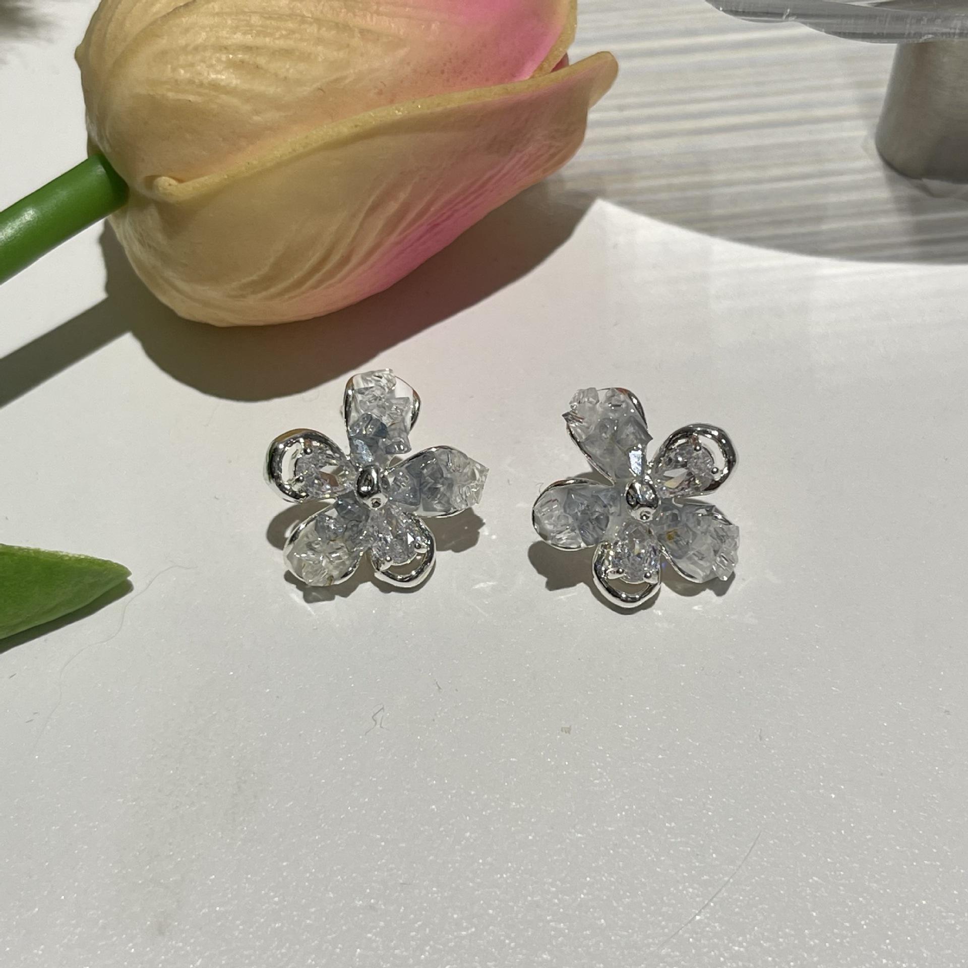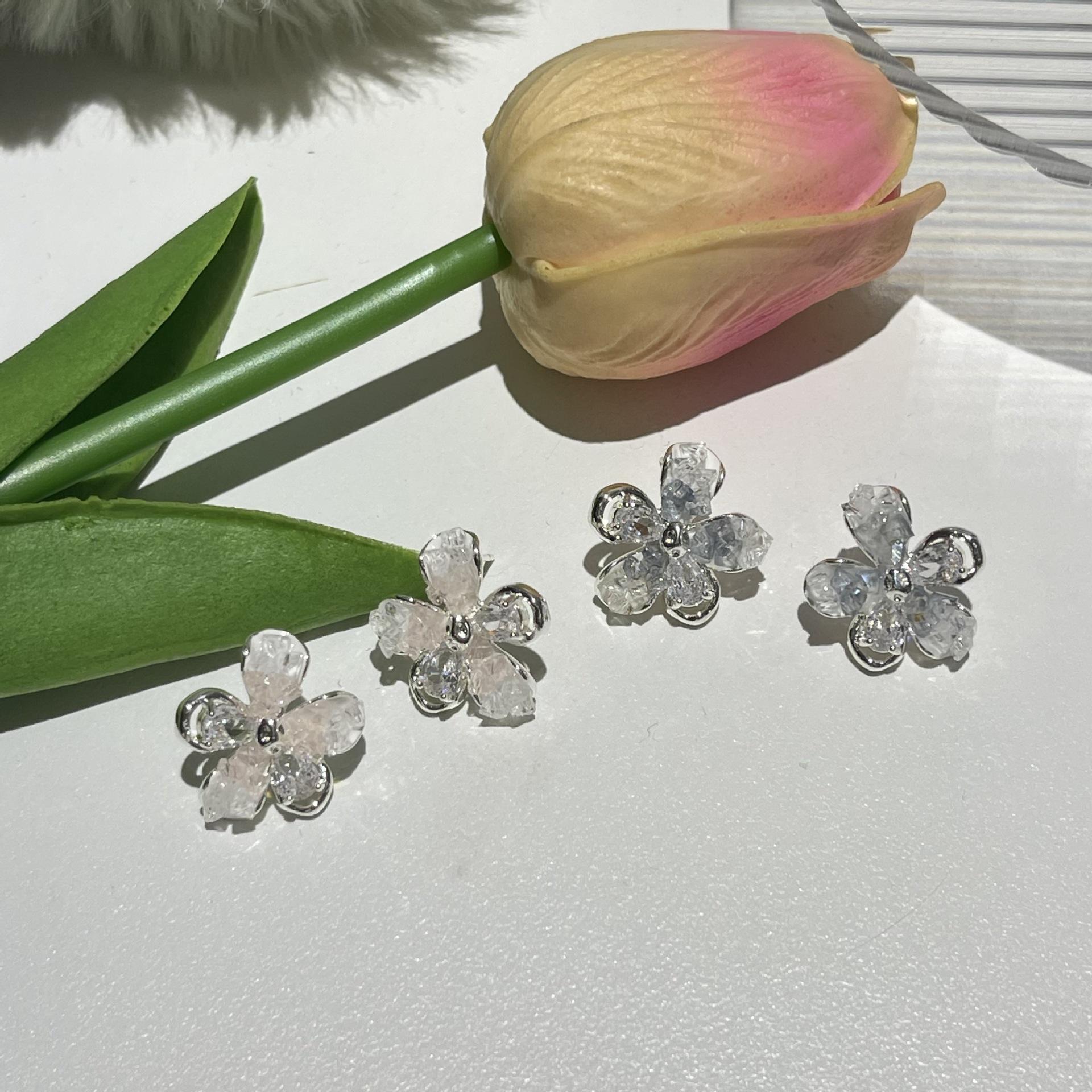 Pendientes de flores de cristal con degradado de sensación fresca, plata S925, con aguja, temperamento femenino, pequeños y frescos, combinables con todo, plata S925