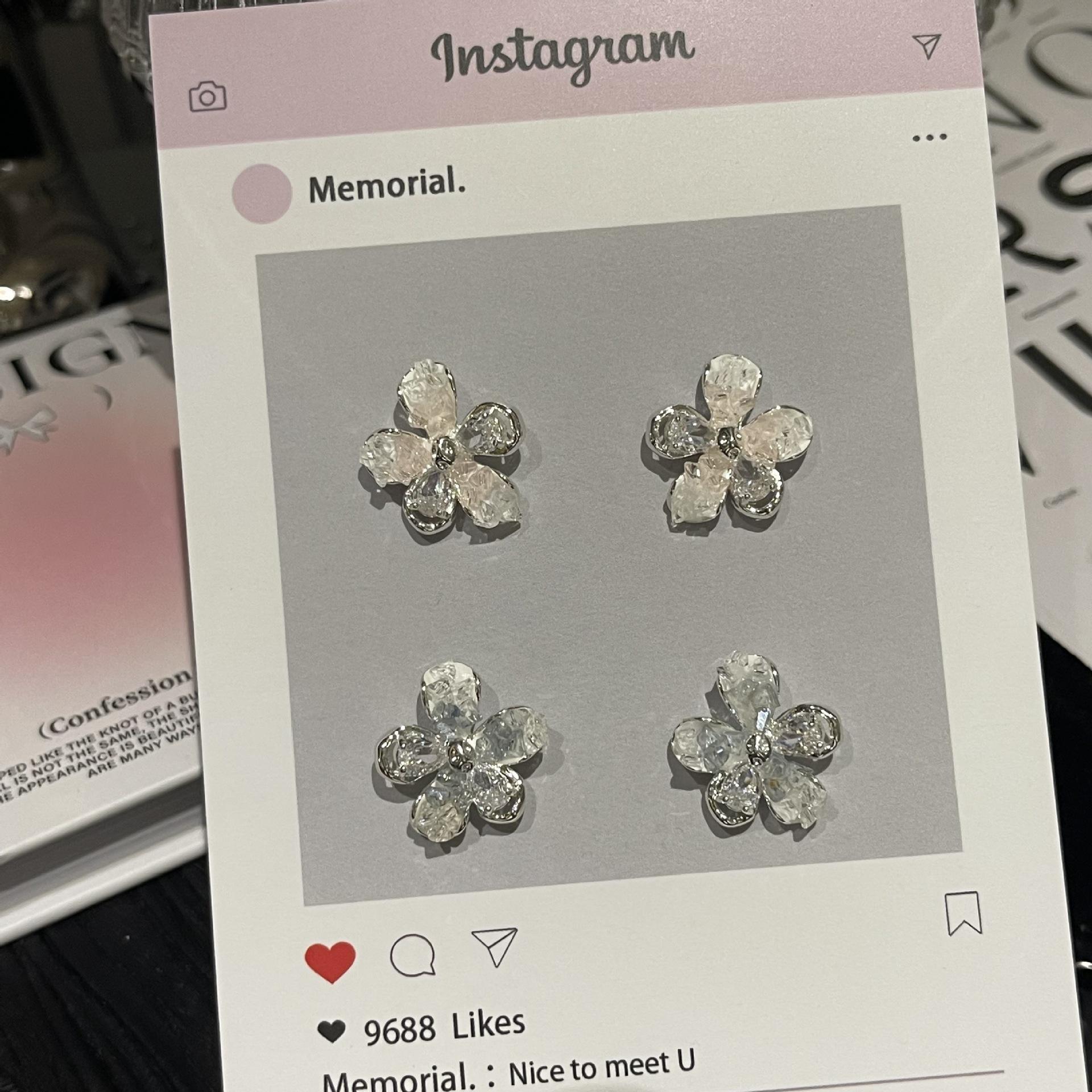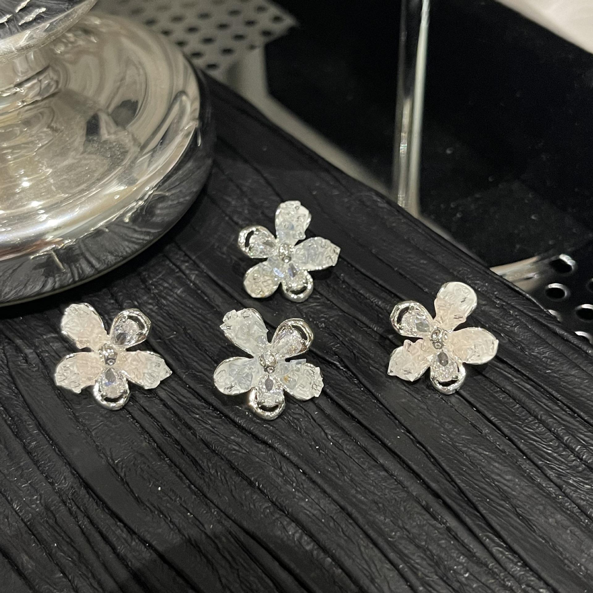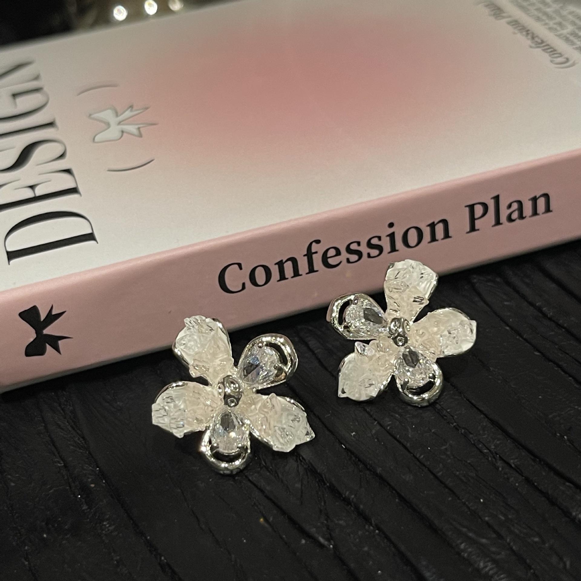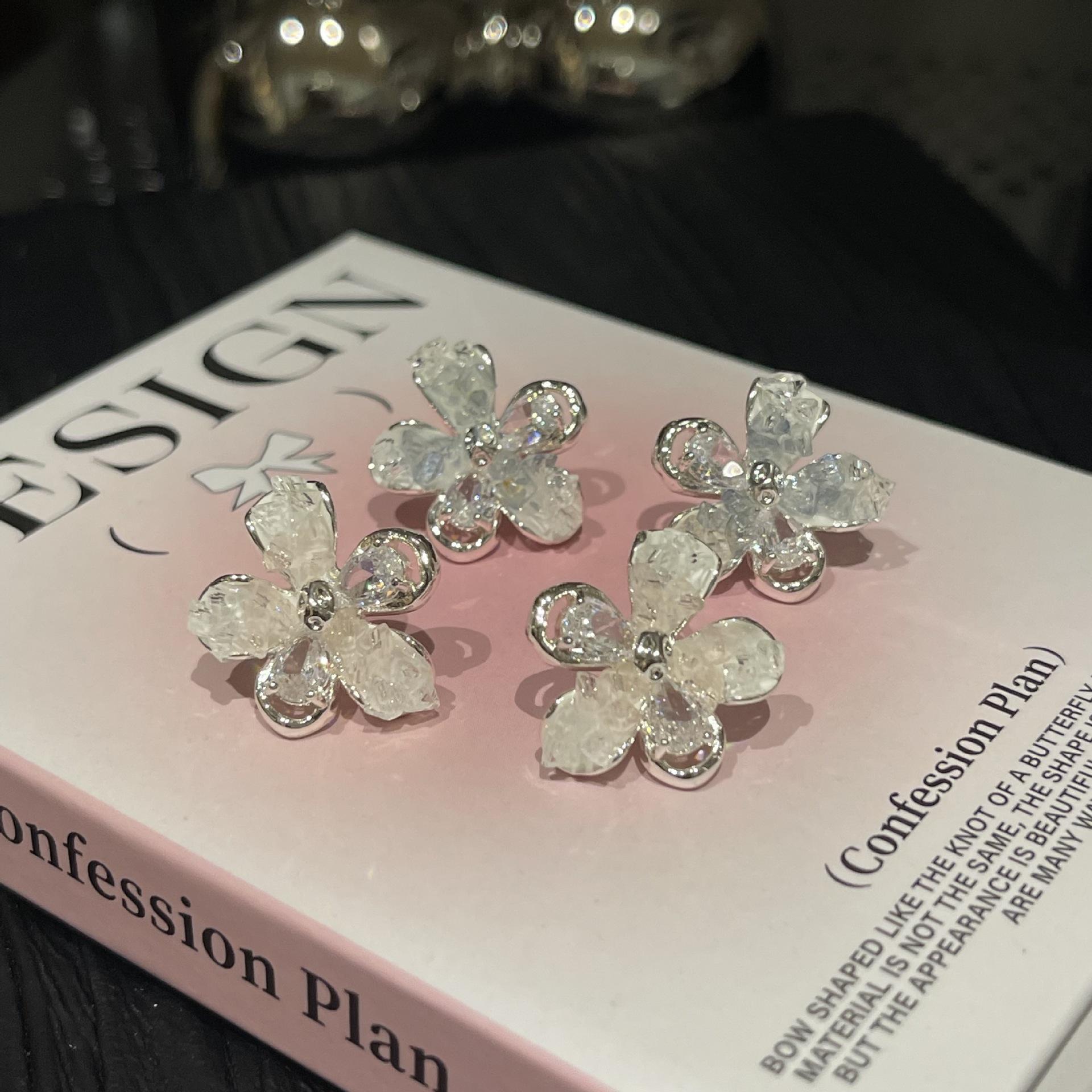 Pendientes de flores de cristal con degradado de sensación fresca, plata S925, con aguja, temperamento femenino, pequeños y frescos, combinables con todo, plata S925