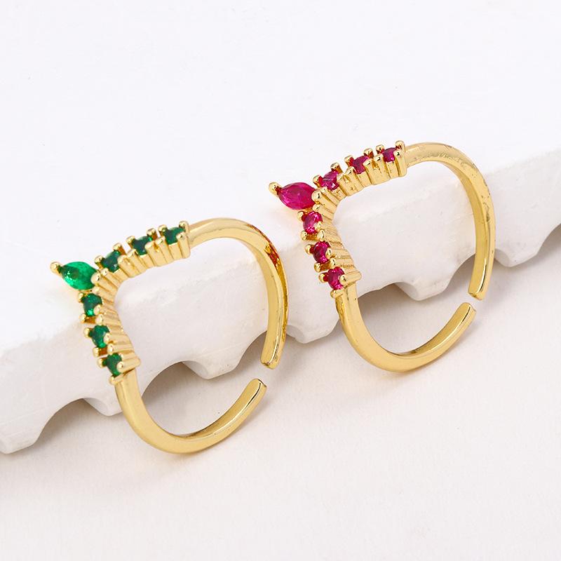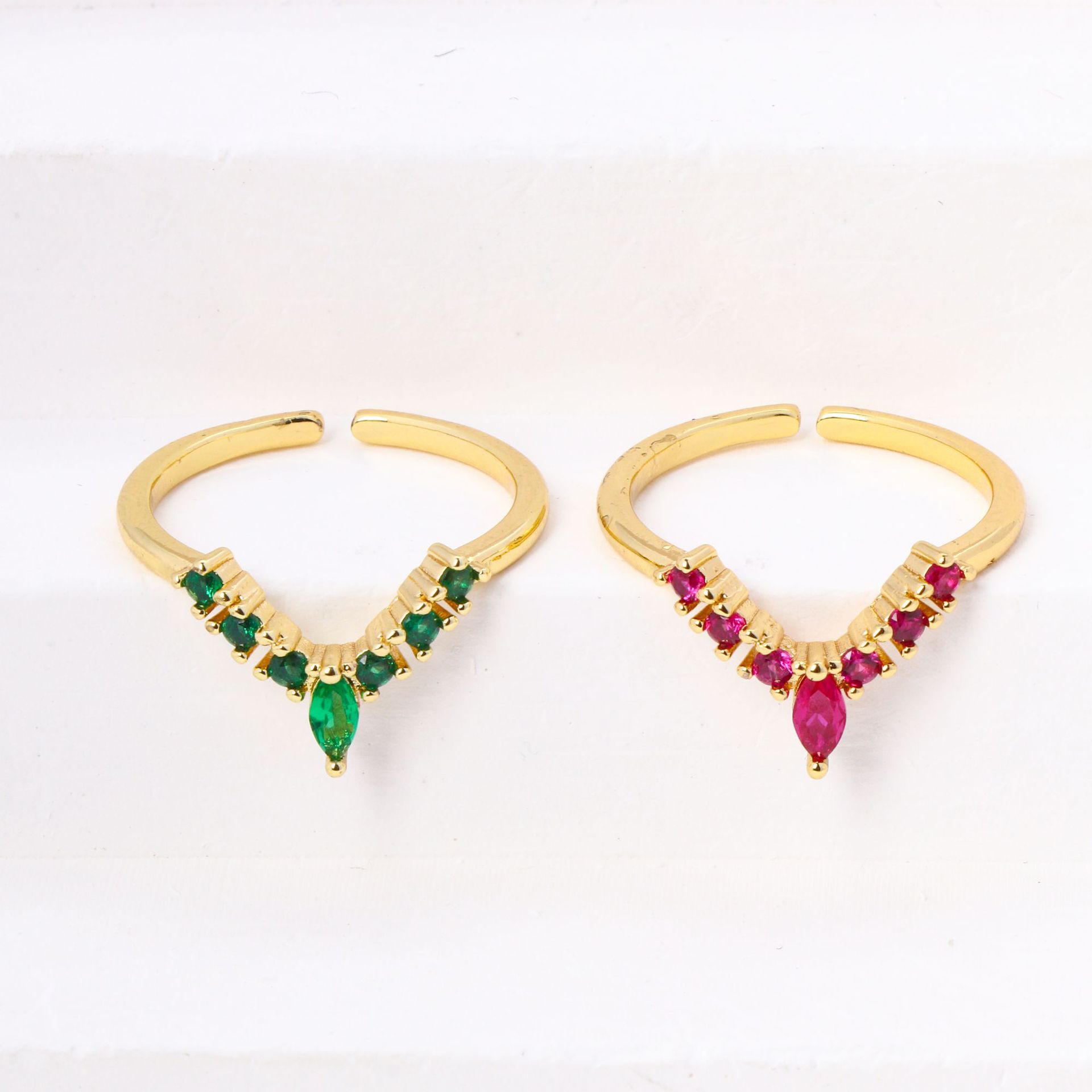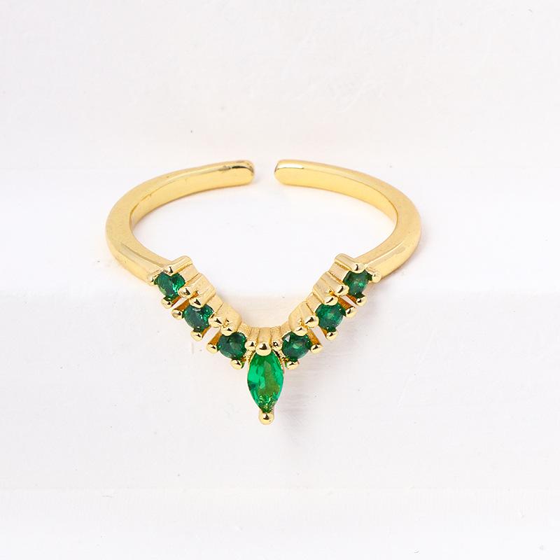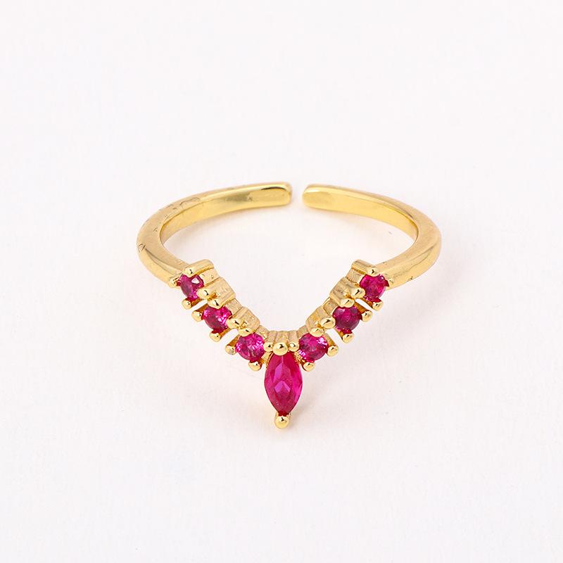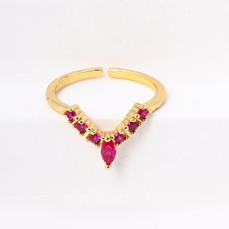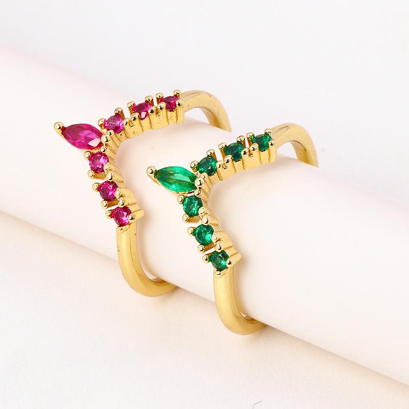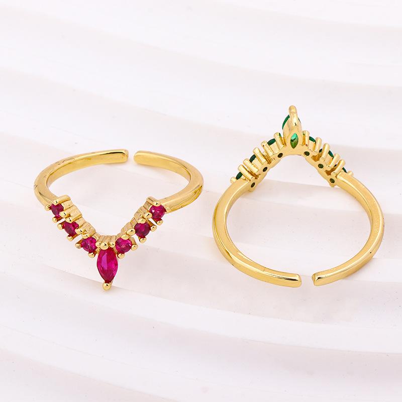 Nuevo anillo sencillo de diseño nicho con circonita de color microincrustada geométrica en forma de V creativa personalizada transfronteriza para mujer