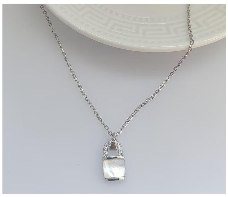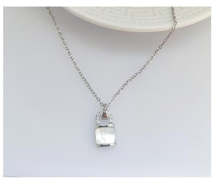 Collar con colgante de cerradura pequeña, elegante y nuevo estilo japonés y coreano, de acero de titanio para mujer, con personalidad de celebridad de Internet y cadena de clavícula de la misma moda.