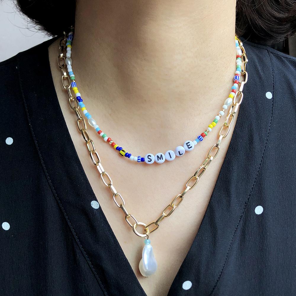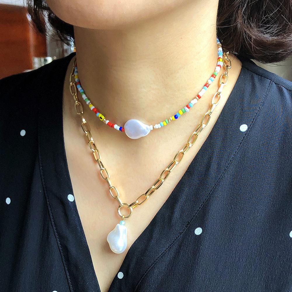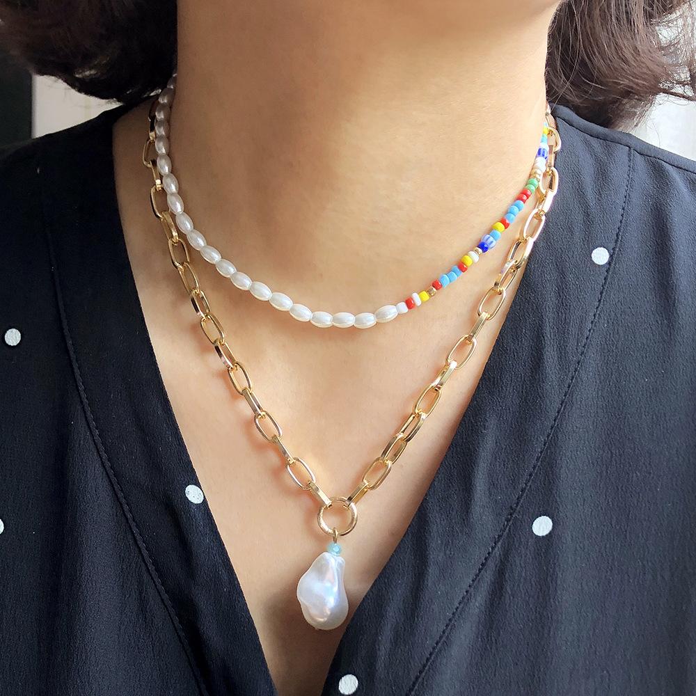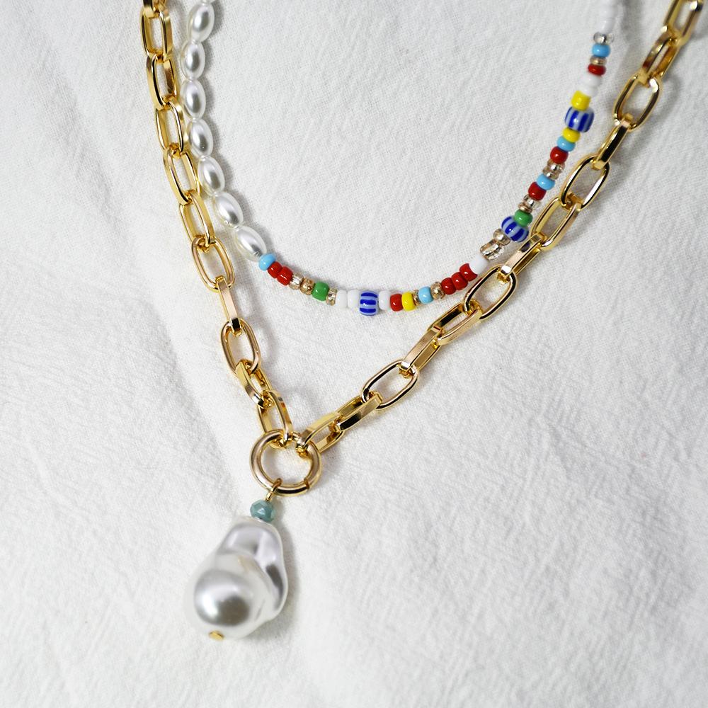 Material del producto: cuentas de arroz de vidrio + perlas + metal