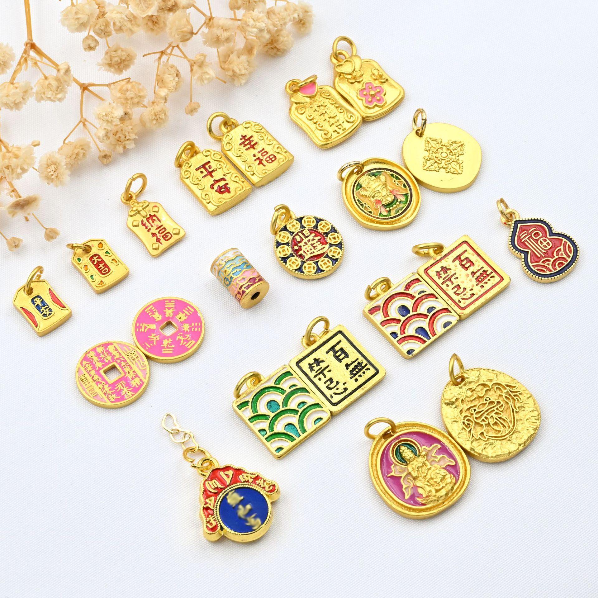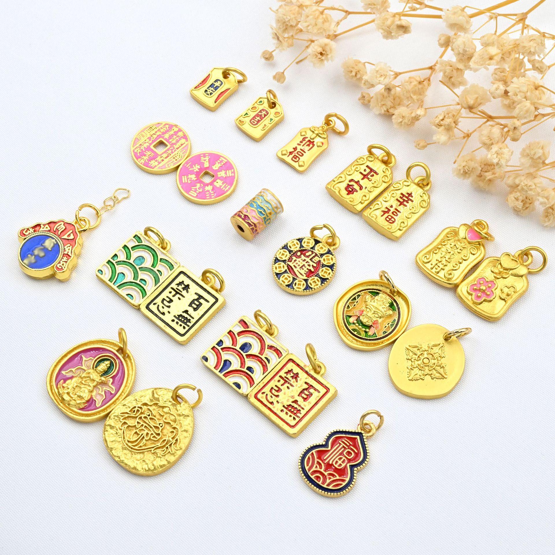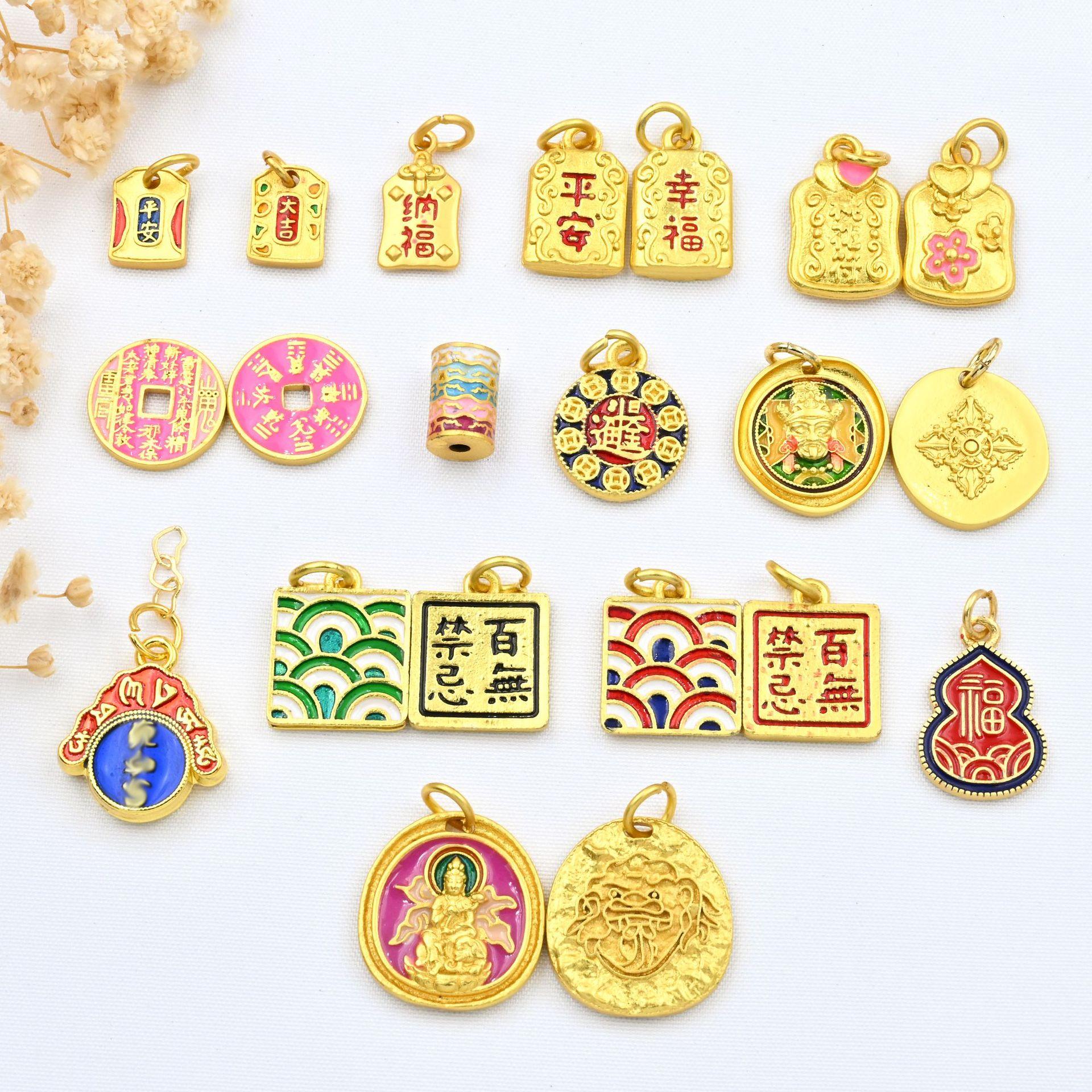 Colgante antiguo de oro arena azul ardiente todo tabú goteando aceite etiqueta Ping An Daji pulsera de cuerda trenzada diy accesorios de joyería