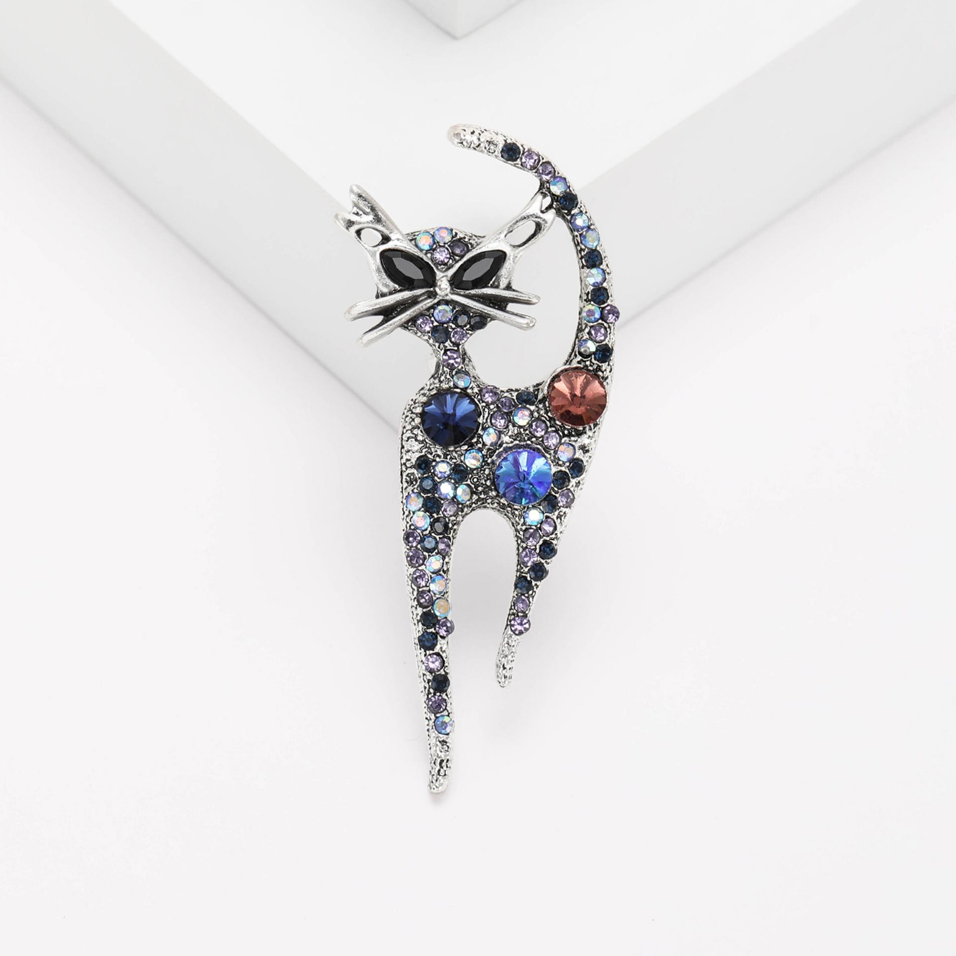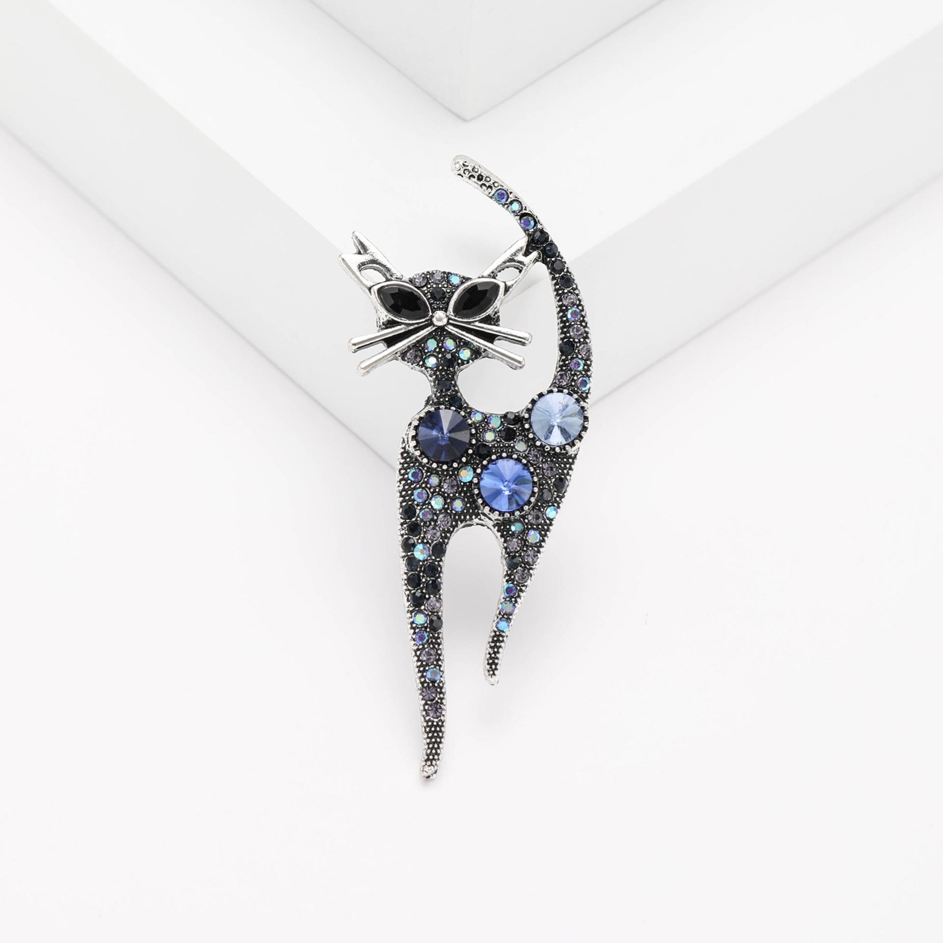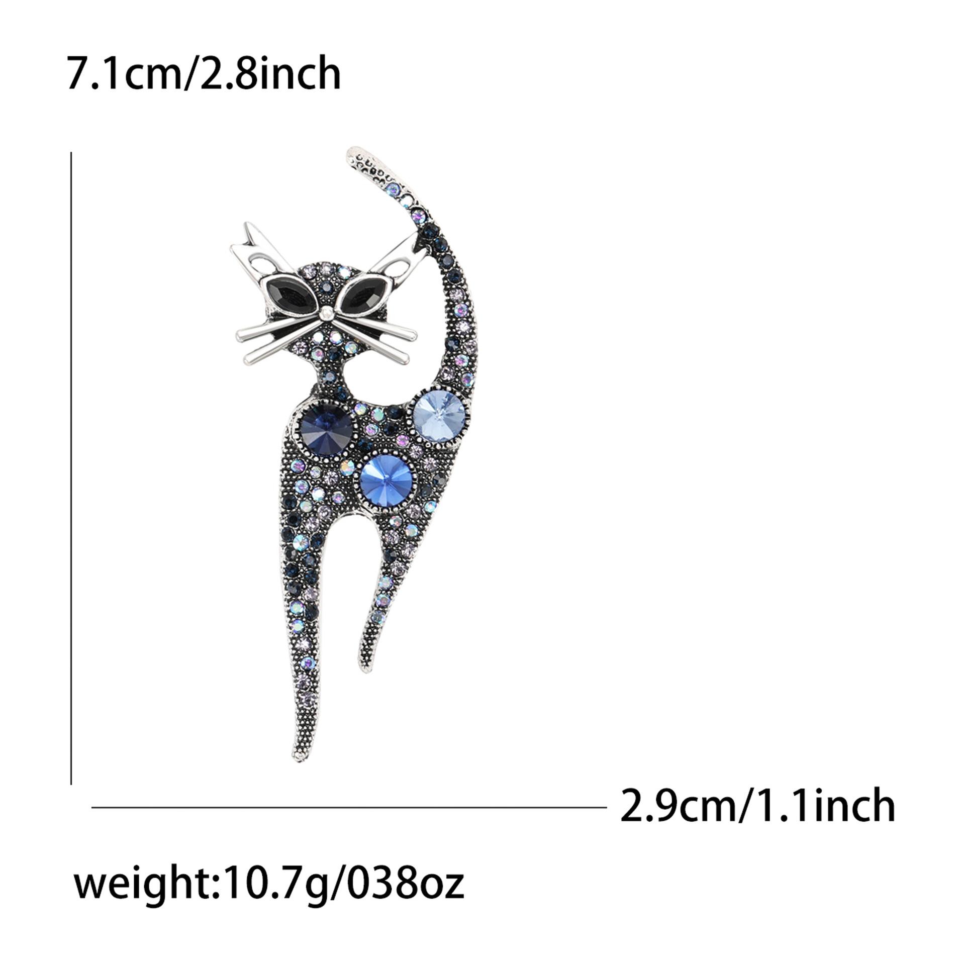 Broche de gato con diamantes de imitación de aleación retro, estilo europeo y americano, estilo vintage, combina con todo, para mujer, para traje, abrigo, ramillete, alfiler de joyería