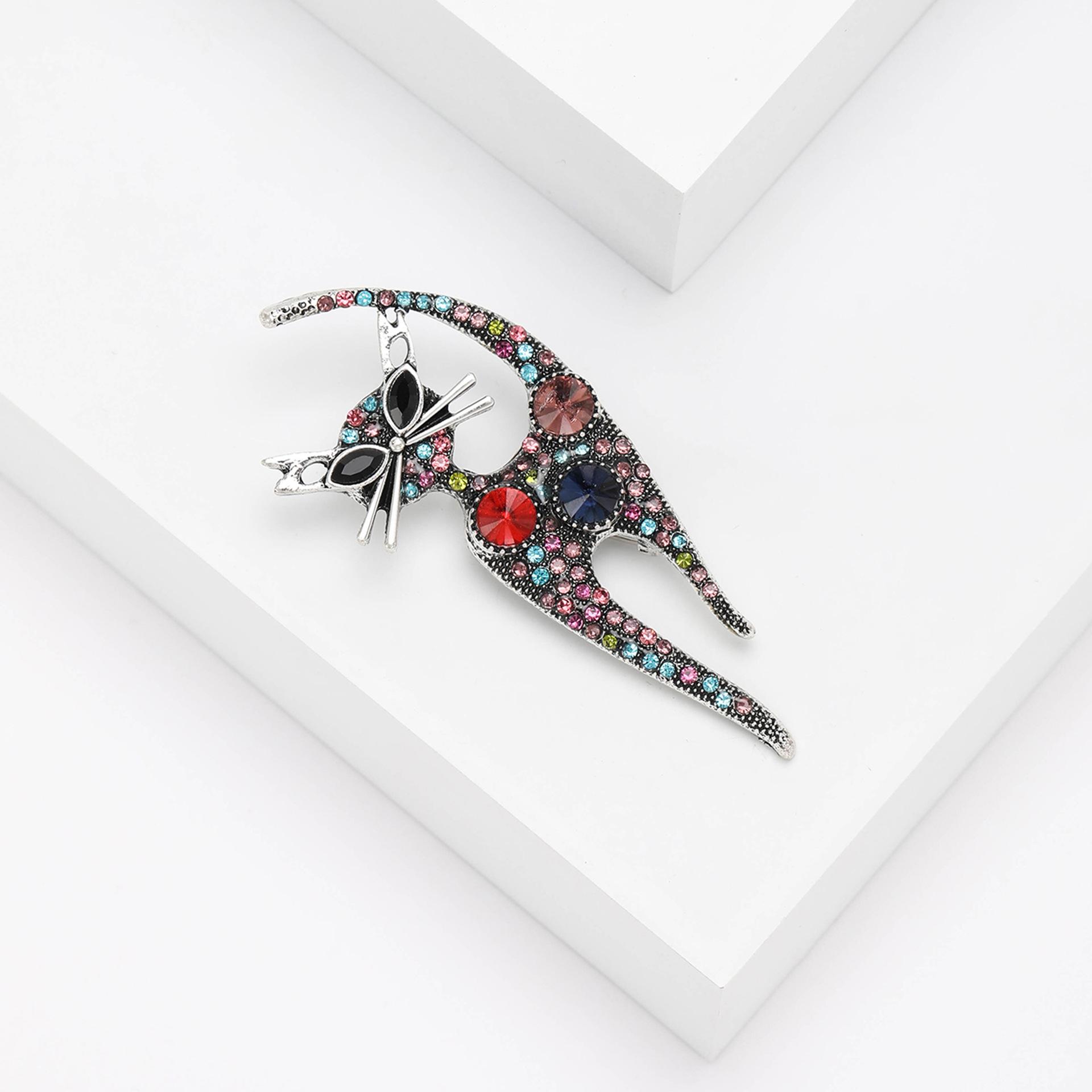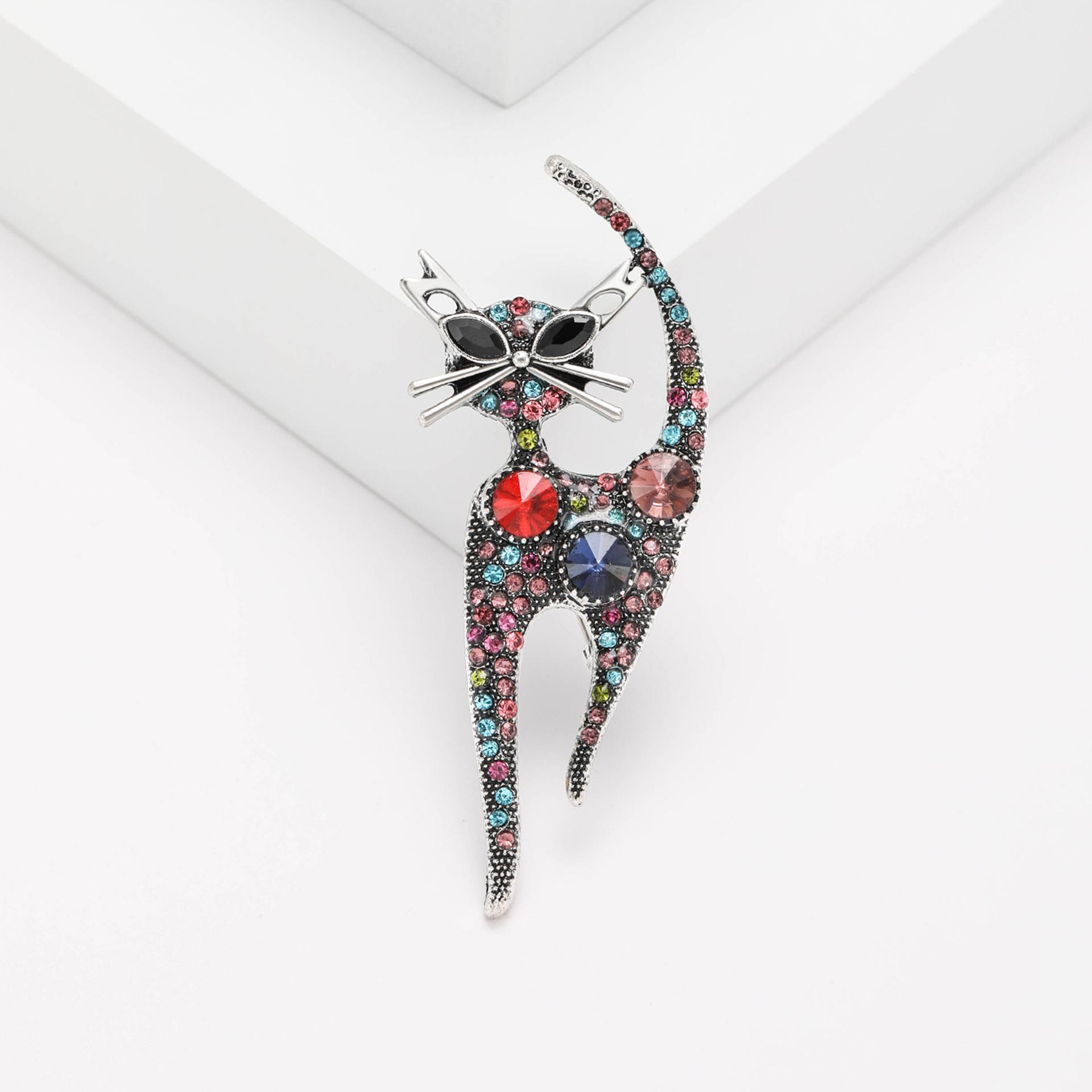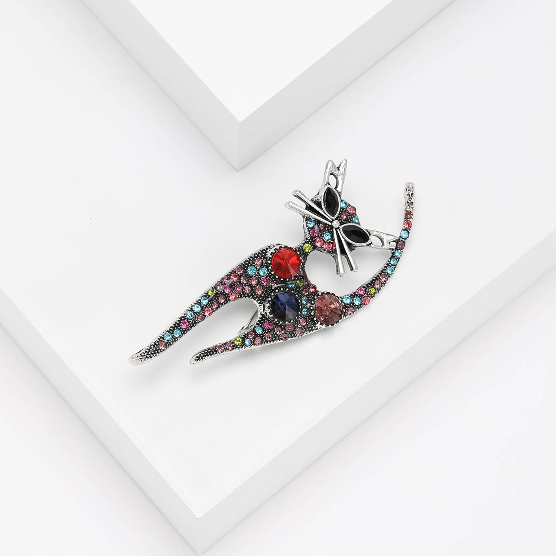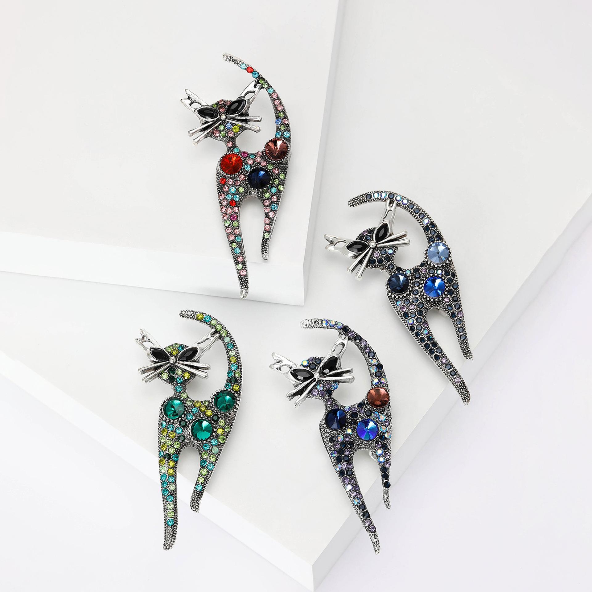 Broche de gato con diamantes de imitación de aleación retro, estilo europeo y americano, estilo vintage, combina con todo, para mujer, para traje, abrigo, ramillete, alfiler de joyería