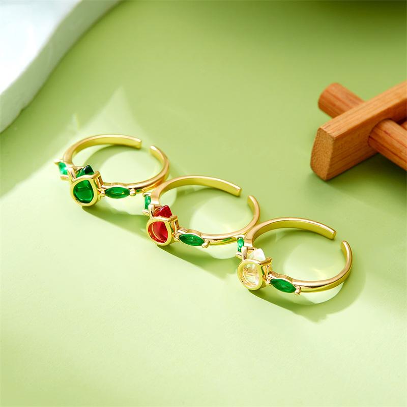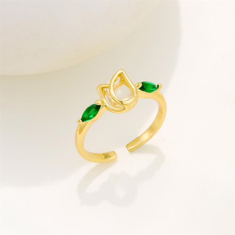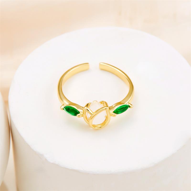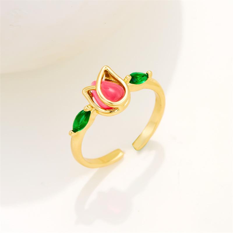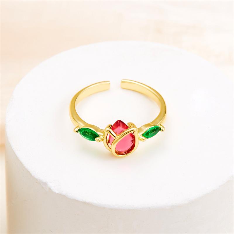 Anillo europeo y americano transfronterizo de tulipán con incrustaciones de circonio Anillo de flor de moda para mujer verano versátil anillo fresco al por mayor