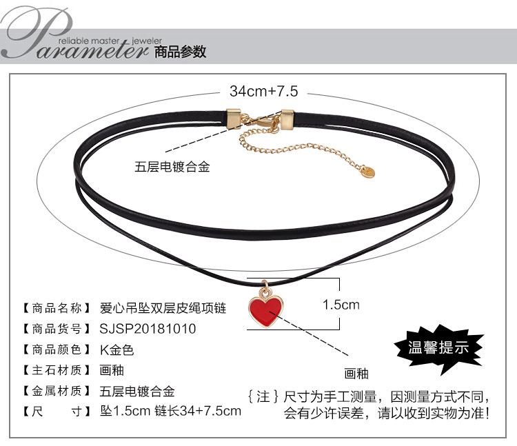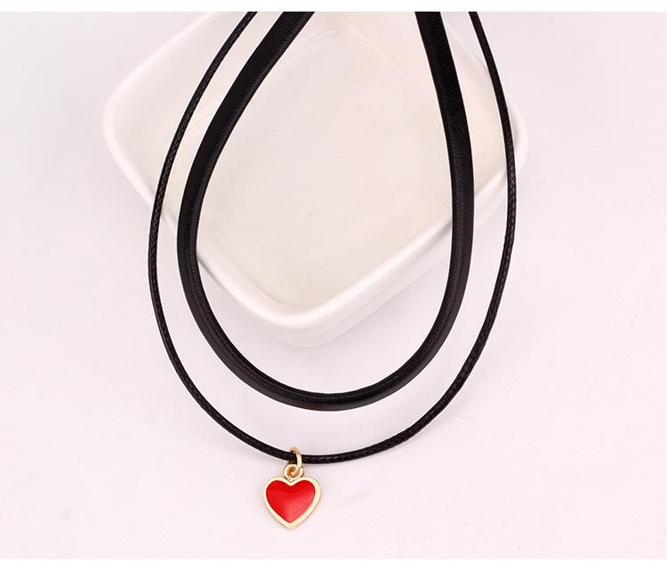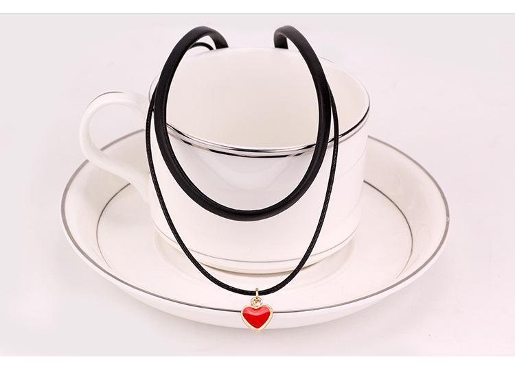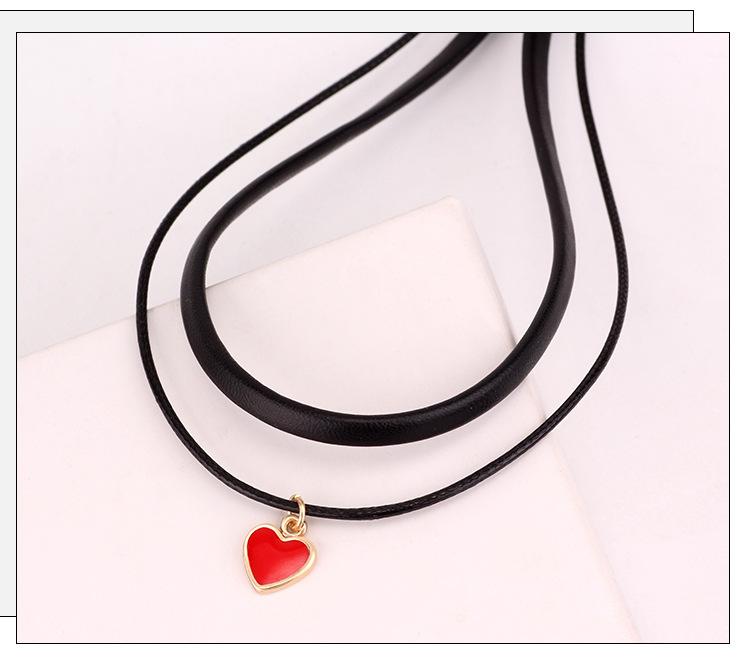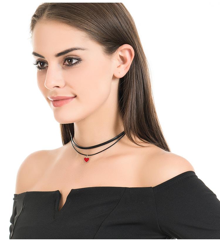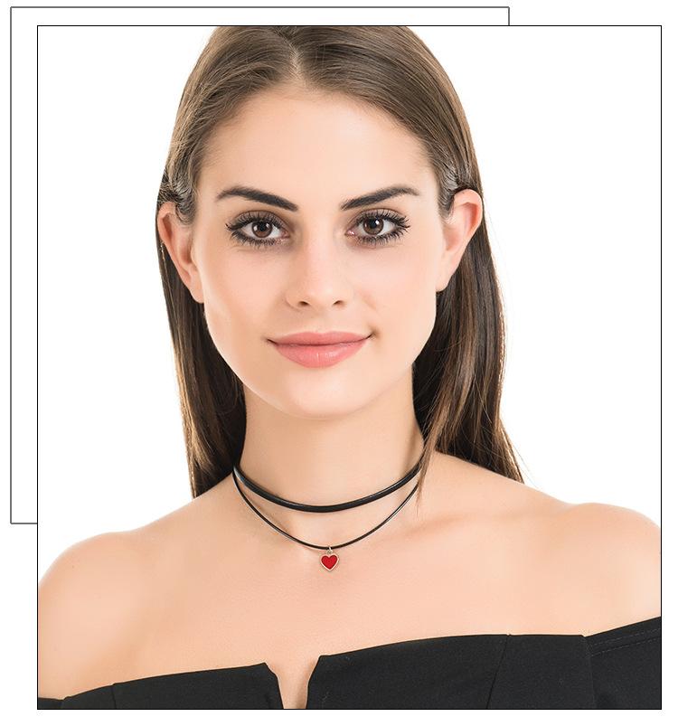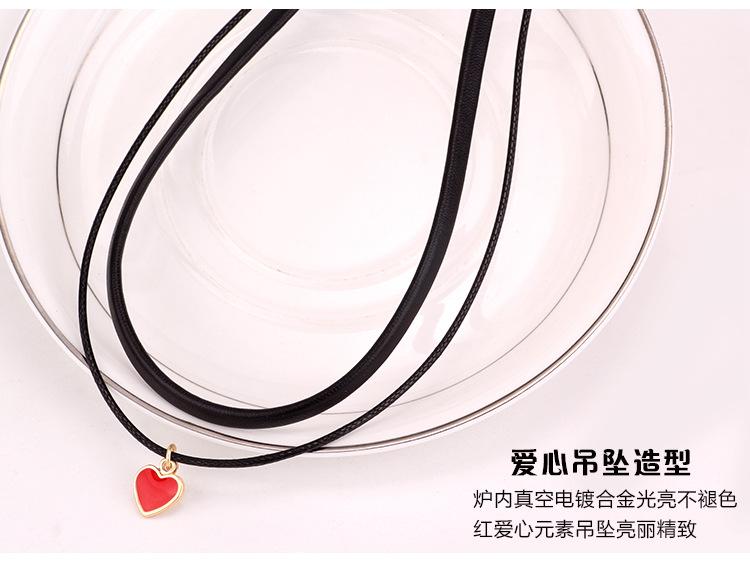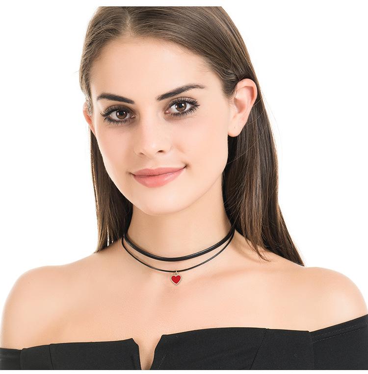 Collar corto de Corea del Sur con cadena para clavícula, collar con correa para el cuello, collar con corazón rojo, collar de celebridad de Internet, gargantilla negra sencilla y sexy.