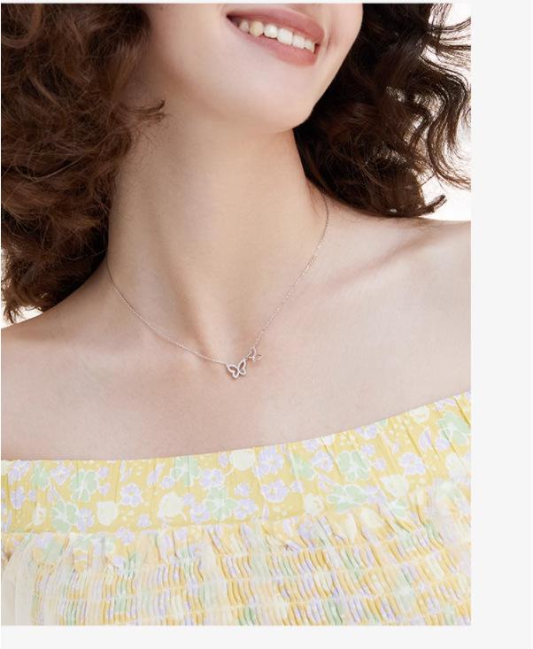 Collar de mariposa de plata S925 para mujer, diseño de alta gama, ligero, de lujo, nicho, nueva cadena de clavícula, venta al por mayor, sin decoloración
