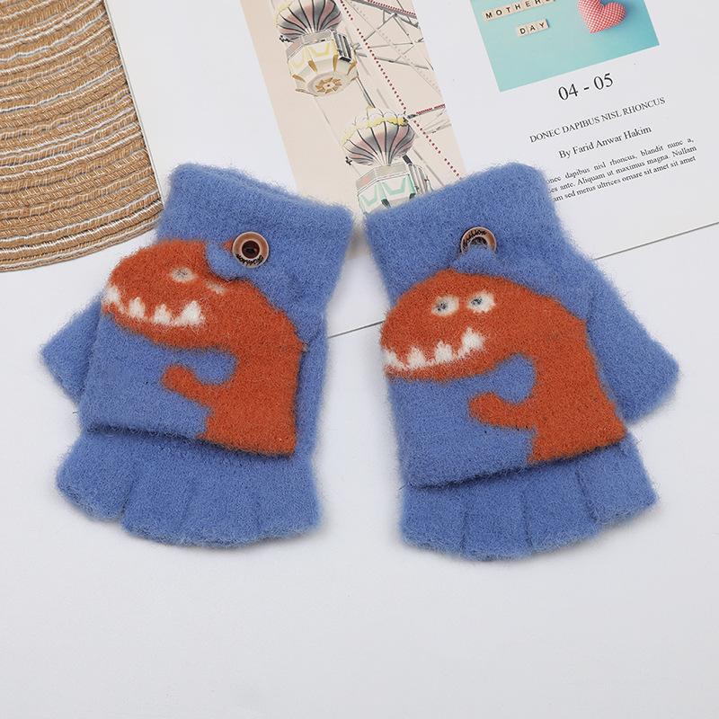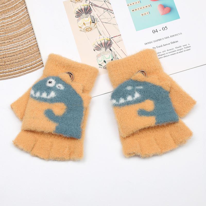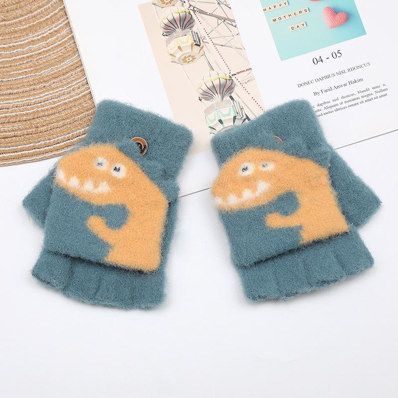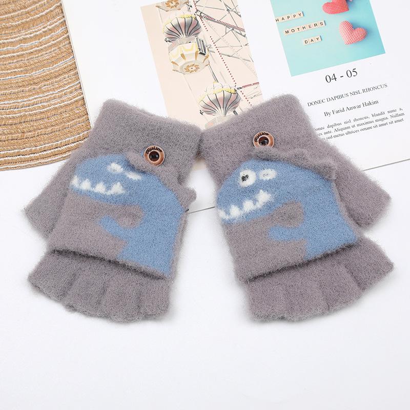 Guantes cálidos de invierno para niños, lindos guantes de dibujos animados con tapa, guantes de escritura para niños a prueba de frío, guantes de medio dedo