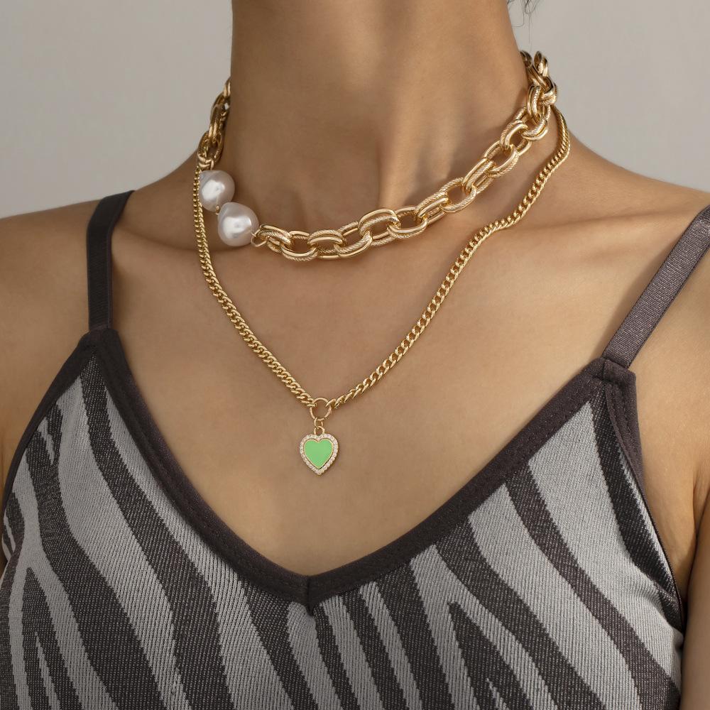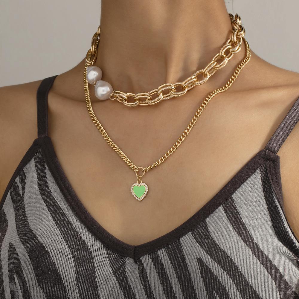 Collar de corazón creativo de nueva moda transfronteriza europea y americana, collar multicapa con costura de perlas estilo ins personalizado para mujer