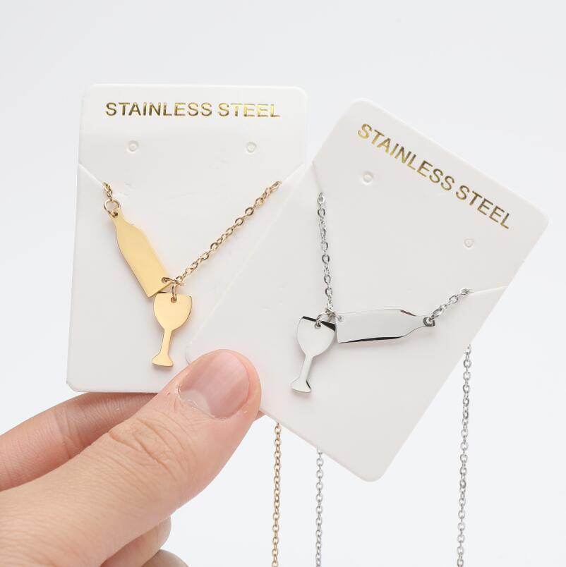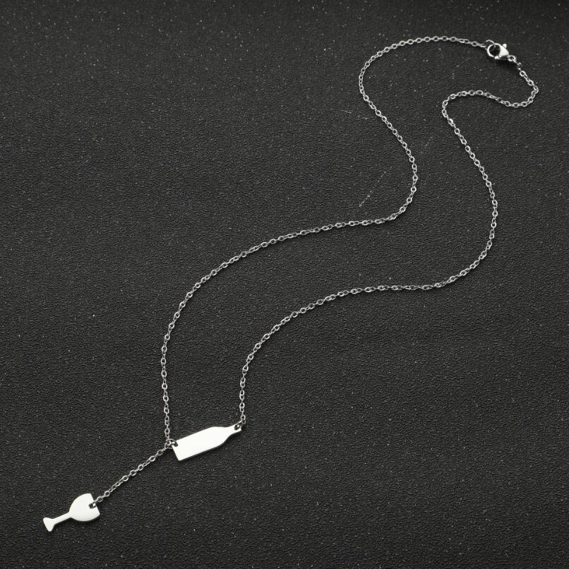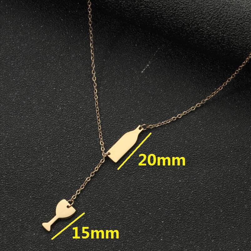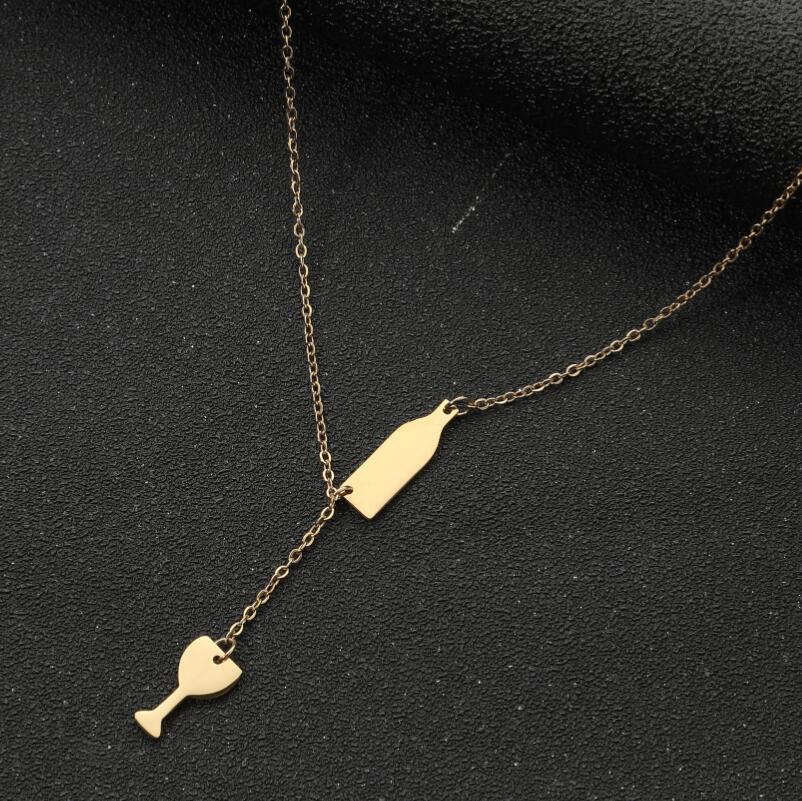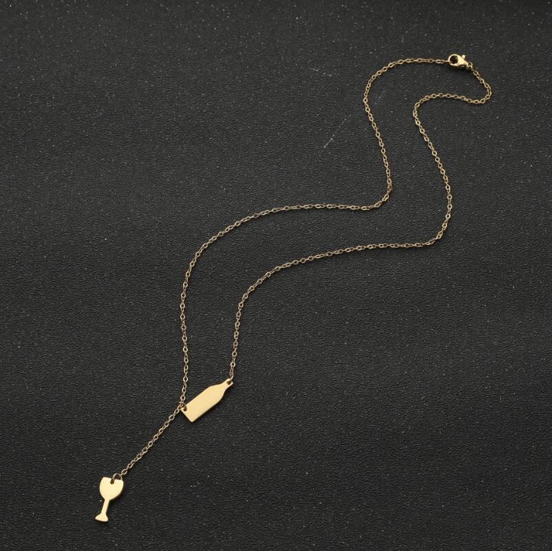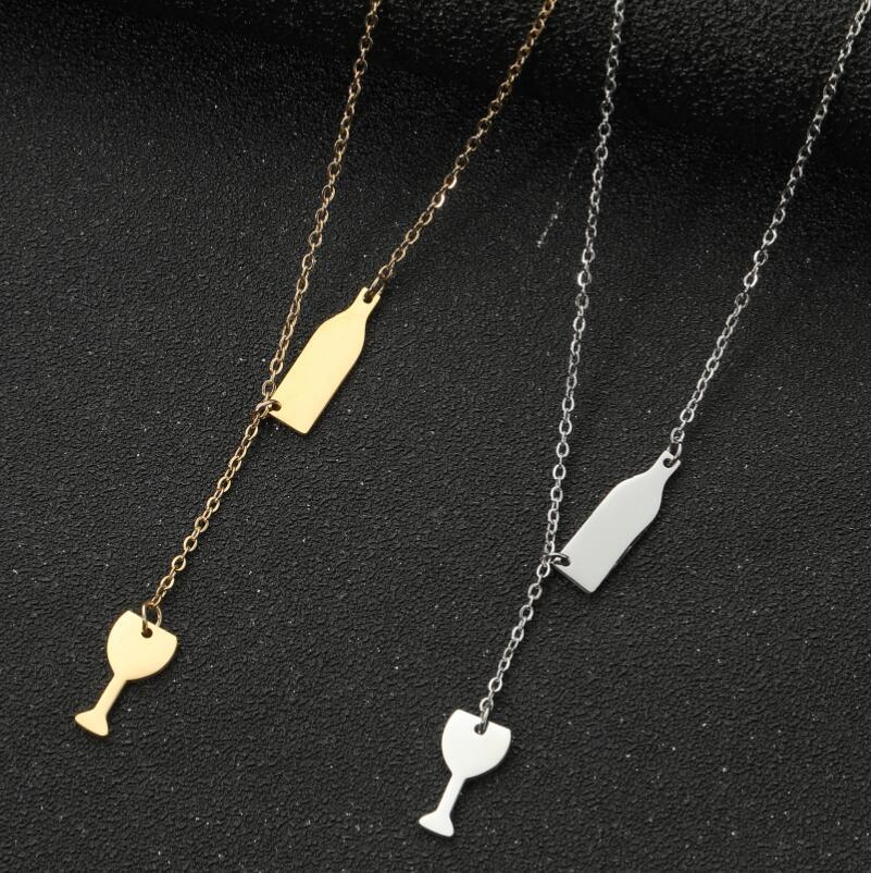 Dulce moda nuevo collar con colgante de acero inoxidable ins para mujer copa de vino botella de vino doble colgante cadena clavícula al por mayor