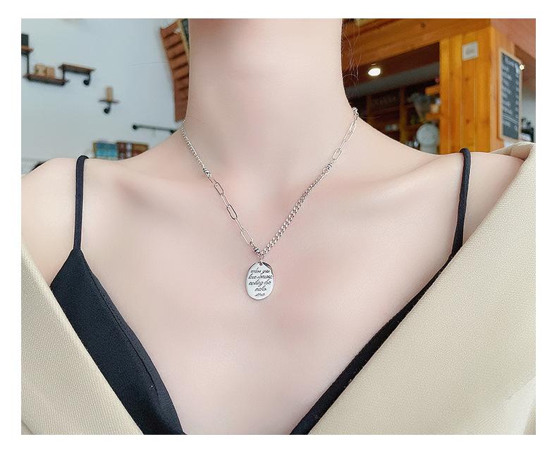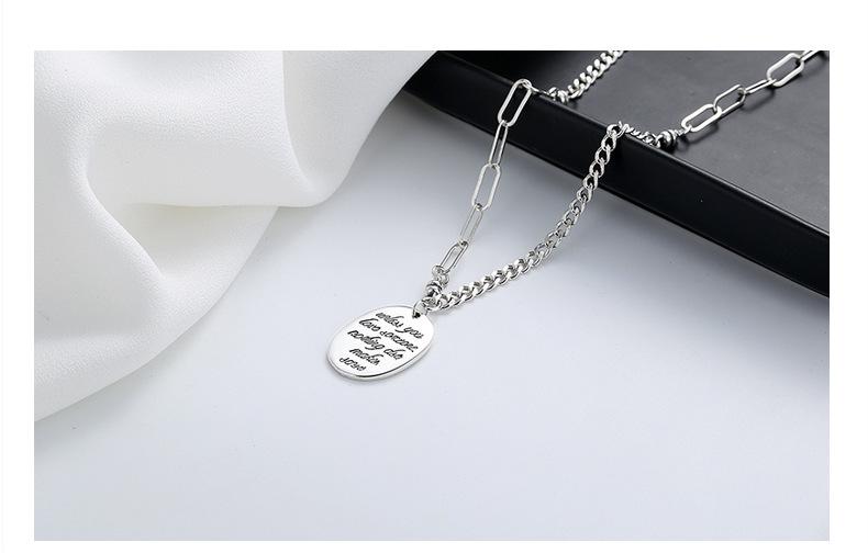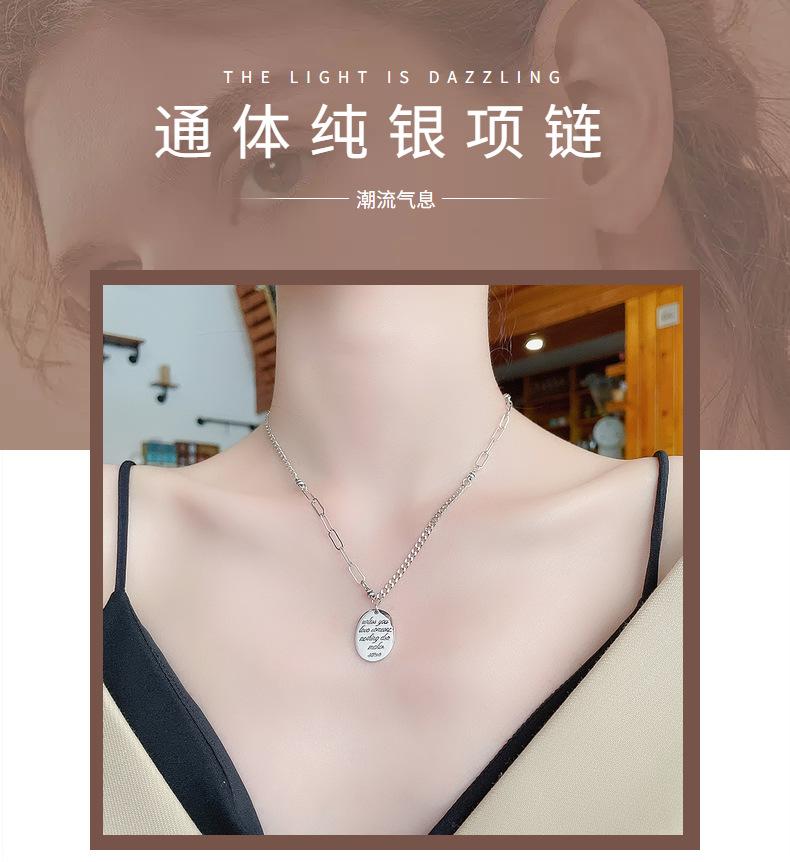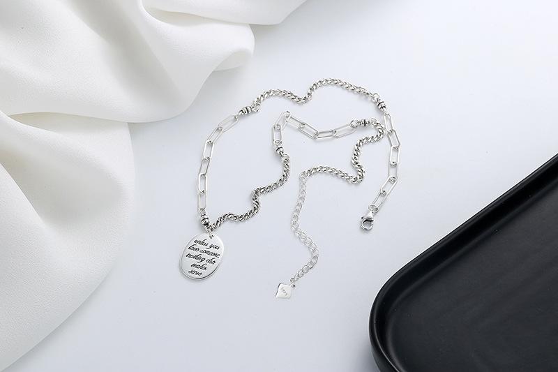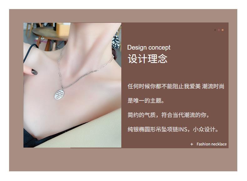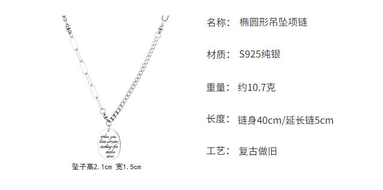Collar Chao Sheng con colgante ovalado empalmado de plata esterlina s925, sencillo e informal, con diseño de nicho que combina con todo, cadena para clavícula.