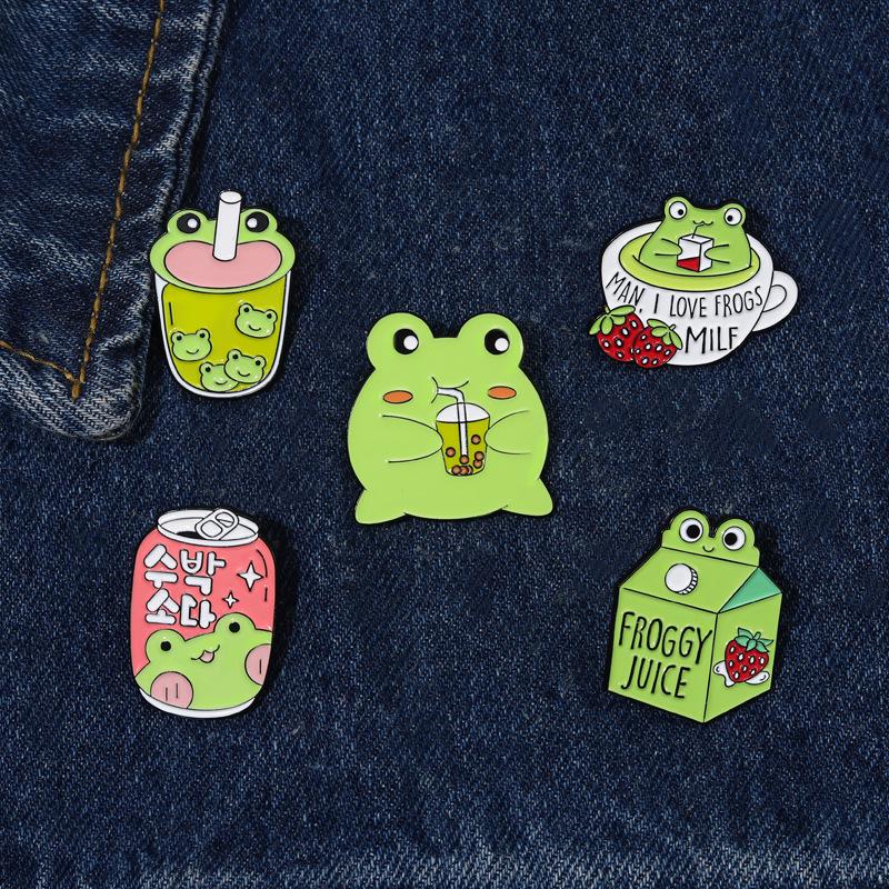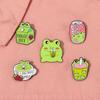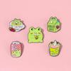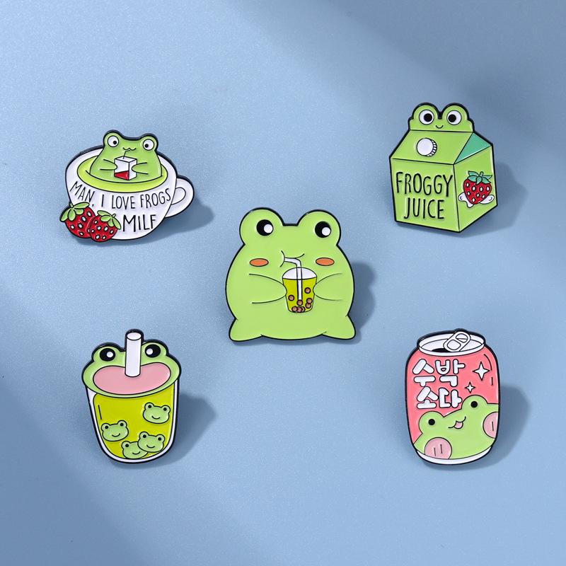 Lindo broche de metal combinable con forma de rana, animal pequeño de dibujos animados, té con leche y leche