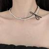 Silver Bow Necklace, Black Bow Necklace