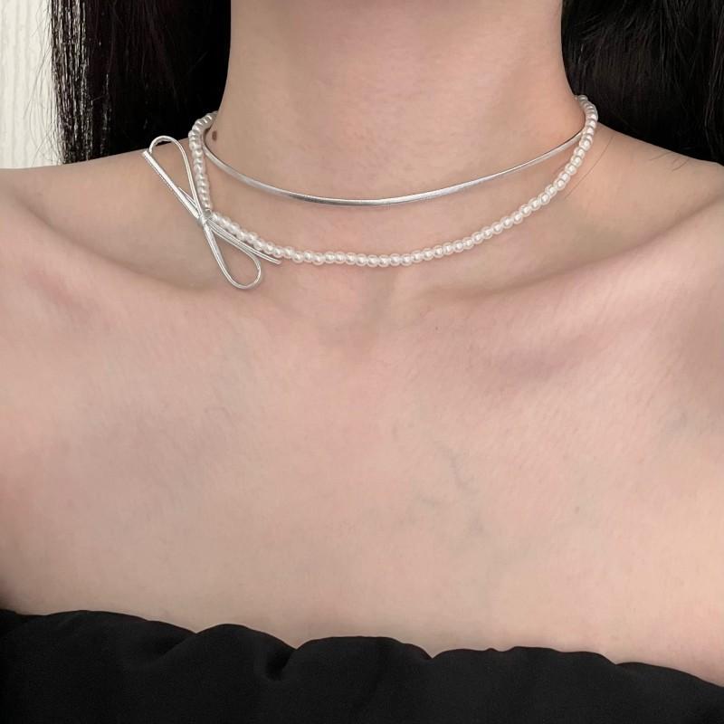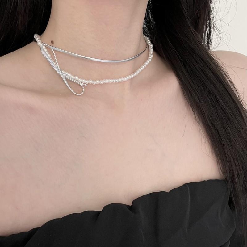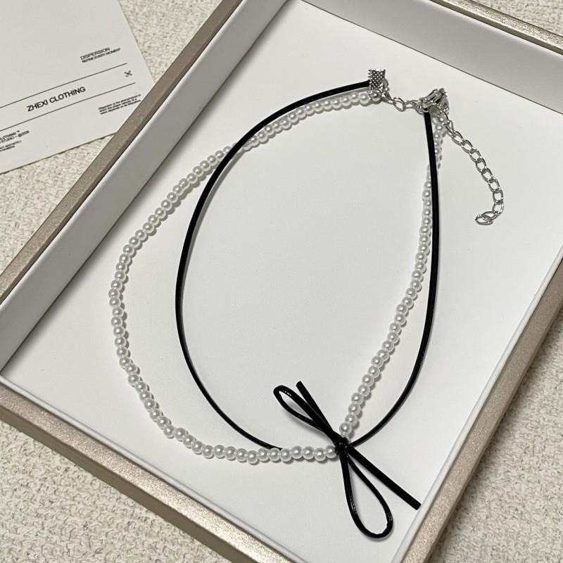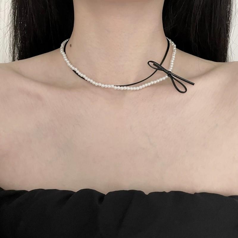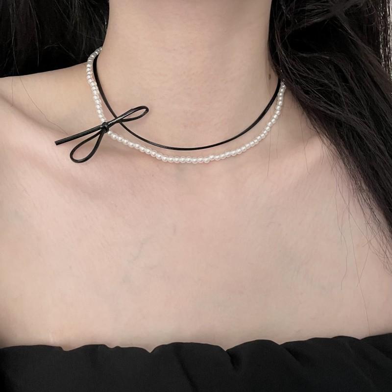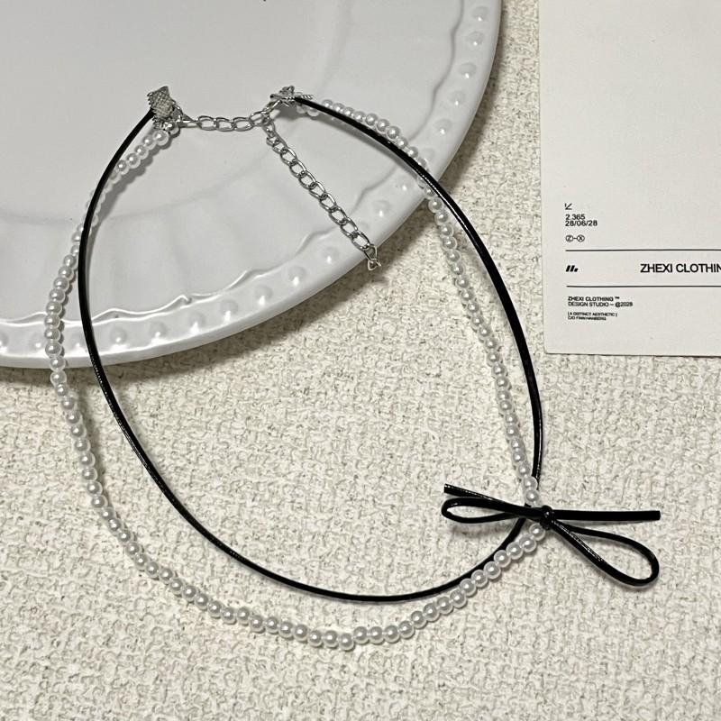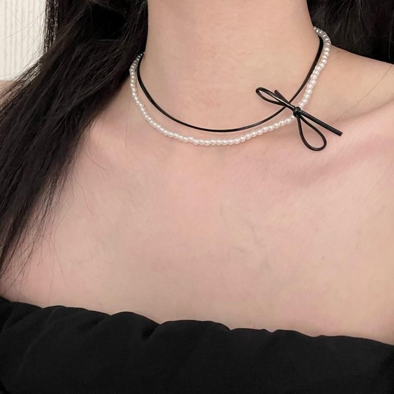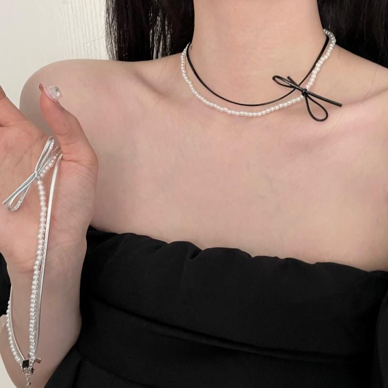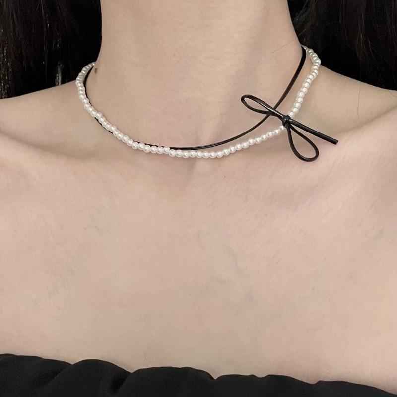 Collar de perlas de doble capa, ligero y lujoso, con diseño de nicho dulce y elegante, cadena de clavícula de cuero con estilo nuevo.