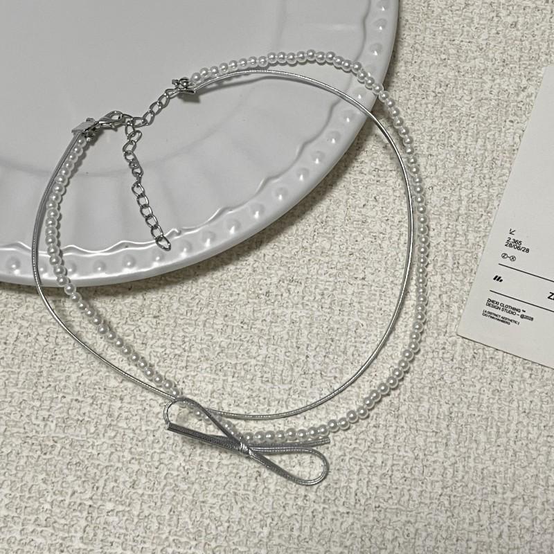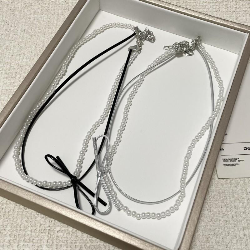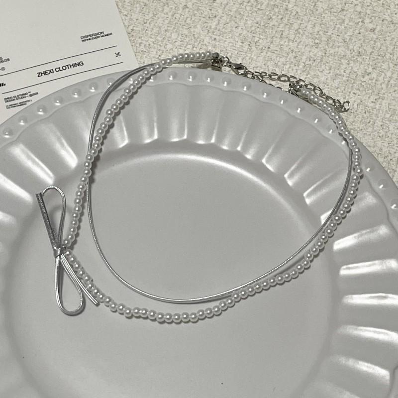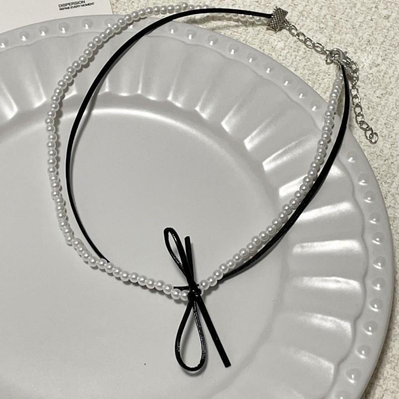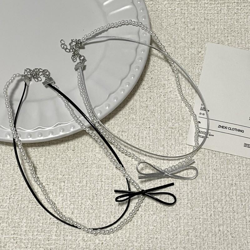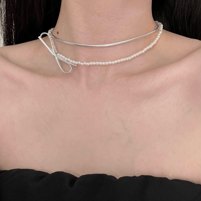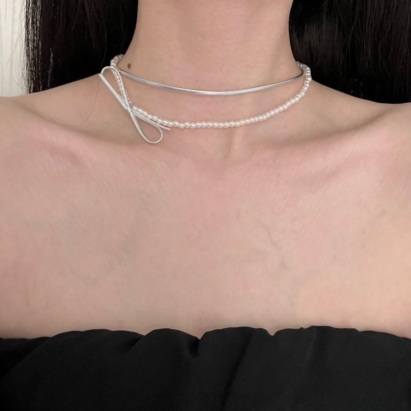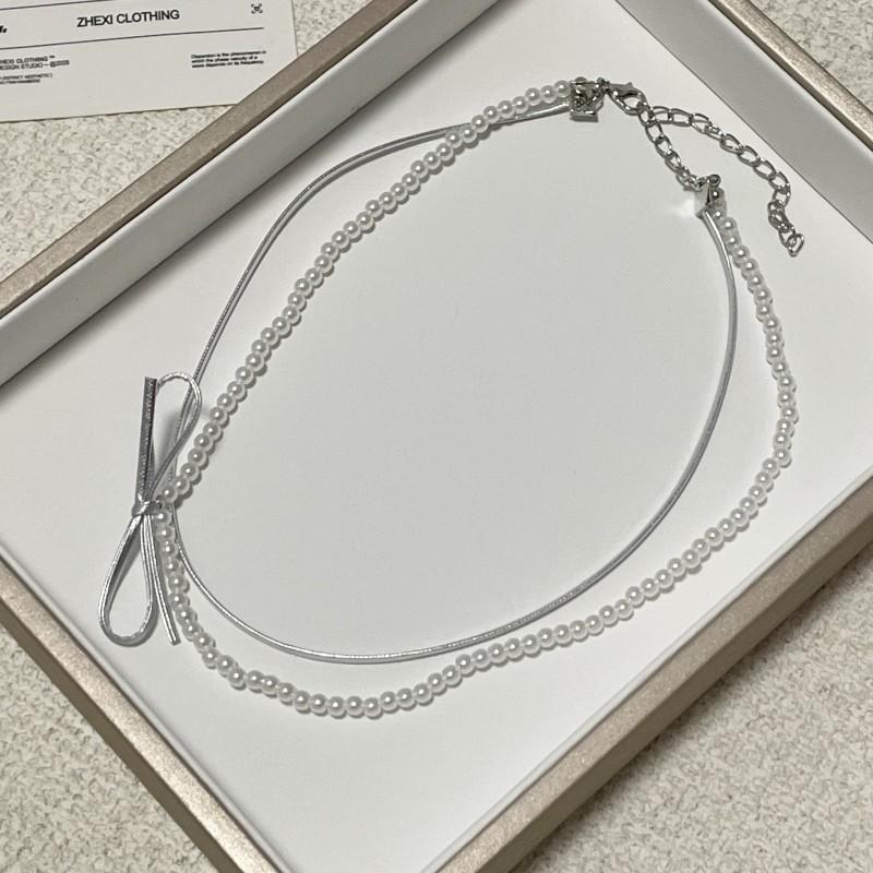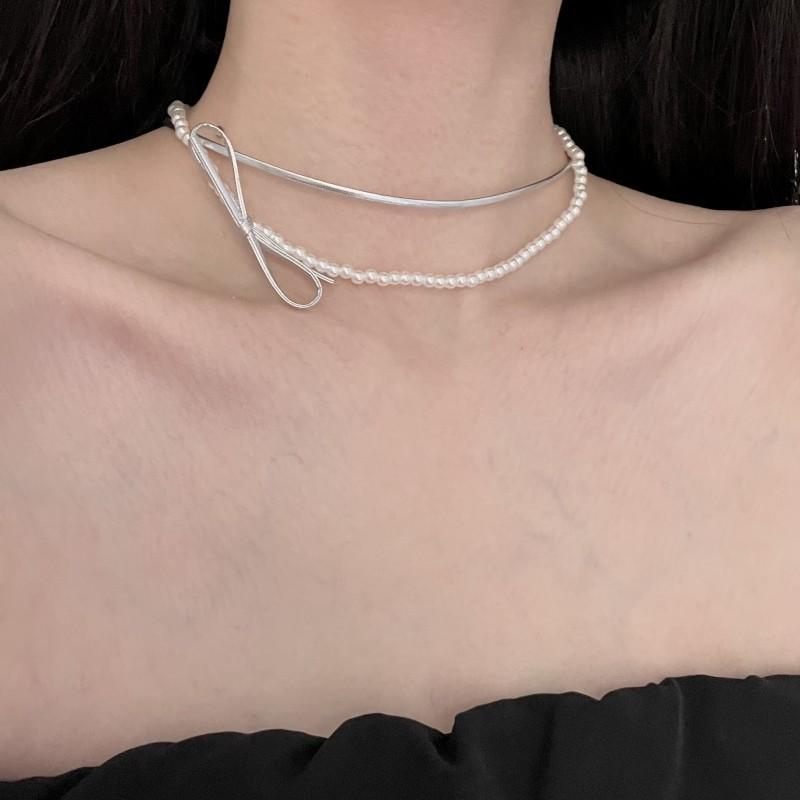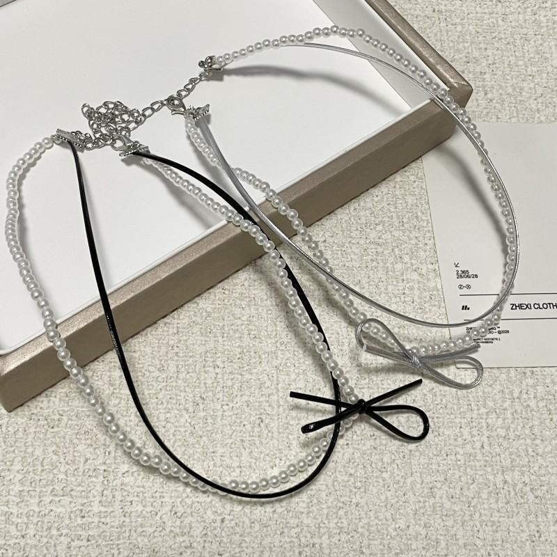 Collar de perlas de doble capa, ligero y lujoso, con diseño de nicho dulce y elegante, cadena de clavícula de cuero con estilo nuevo.