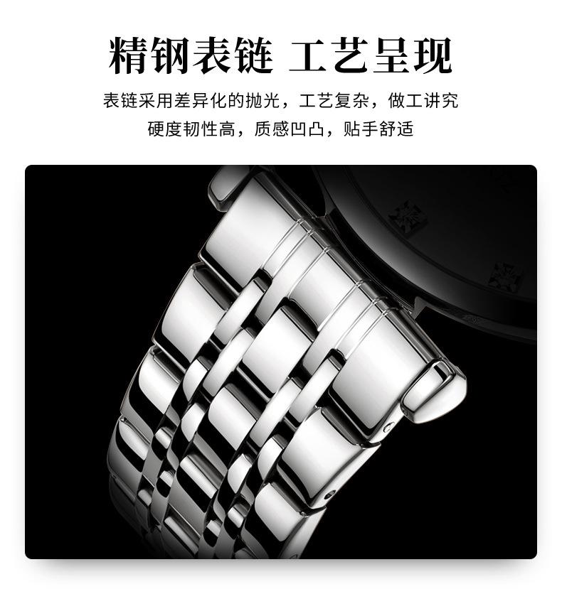 El reloj está exquisitamente elaborado, incomparable con productos de 10 o 20 yuanes. Prestamos atención a la calidad de los detalles, utilizamos exclusivamente movimientos de alta calidad y empleamos artesanía de alta calidad para el pulido y la galvanoplastia de la caja. Nuestra reputación en ventas internacionales y nacionales es muy buena. ¡La calidad no teme a las comparaciones! Nuestra filosofía es que, en lugar de fabricar productos de baja calidad para ahorrar unos pocos yuanes y causar muchos problemas de posventa, es mejor invertir en calidad y ahorrarse el trabajo de posventa. En comparación, esto permitirá a los distribuidores obtener mayores márgenes de beneficio y a los consumidores obtener mejores productos.